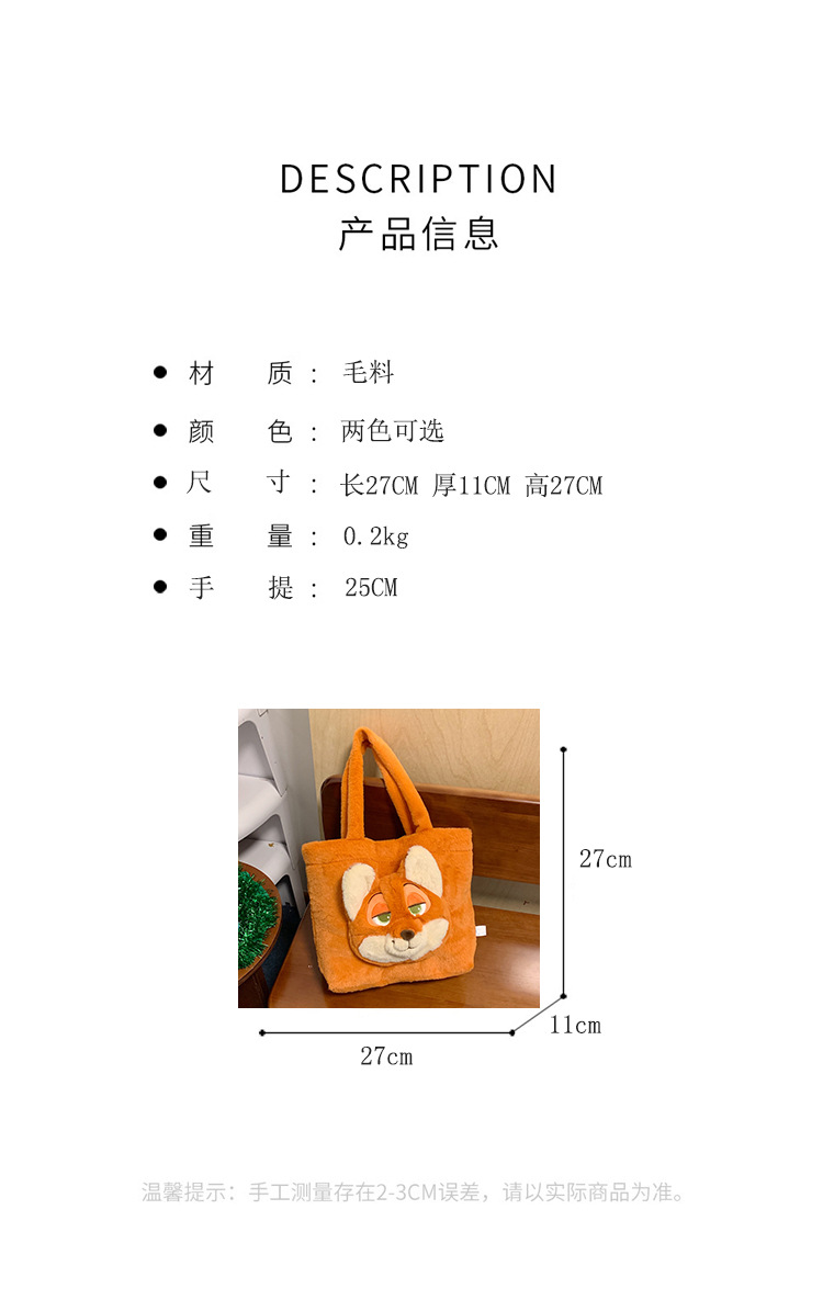 疯狂动物城朱迪兔子警官狐尼克联名款毛绒公仔玩偶包包单肩补习袋