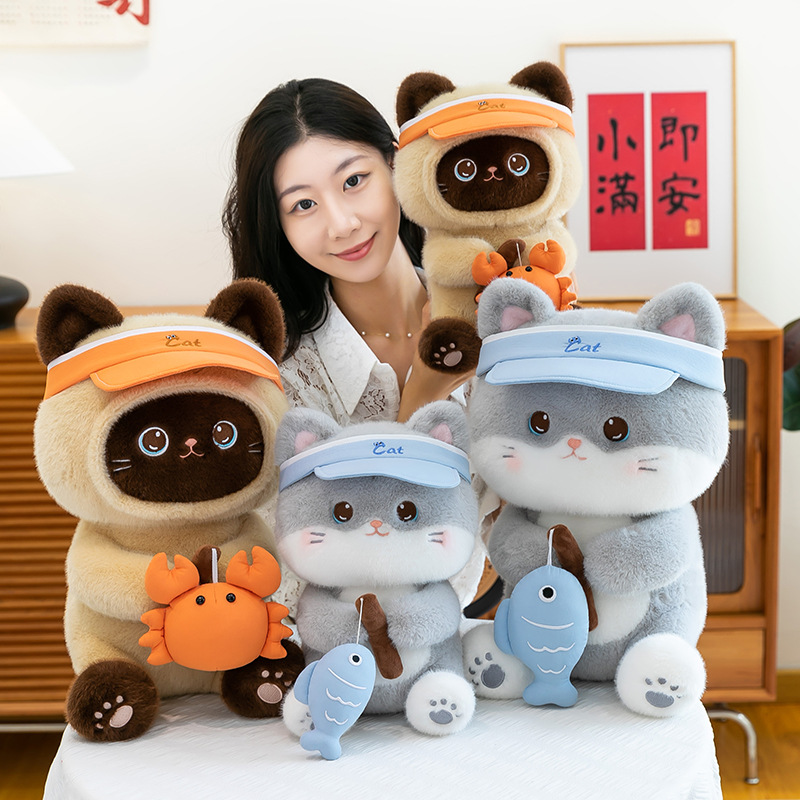 正版可爱钓鱼贪吃猫咪毛绒玩具搞怪暹罗猫陪伴玩偶送儿童女生礼物