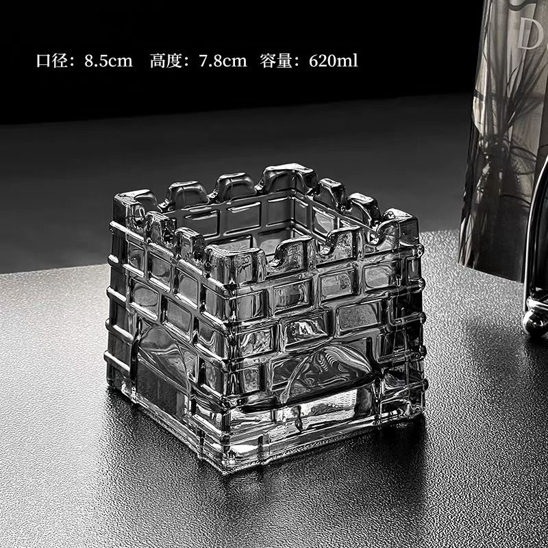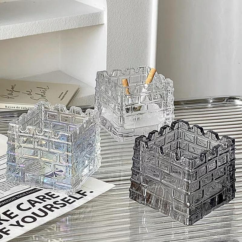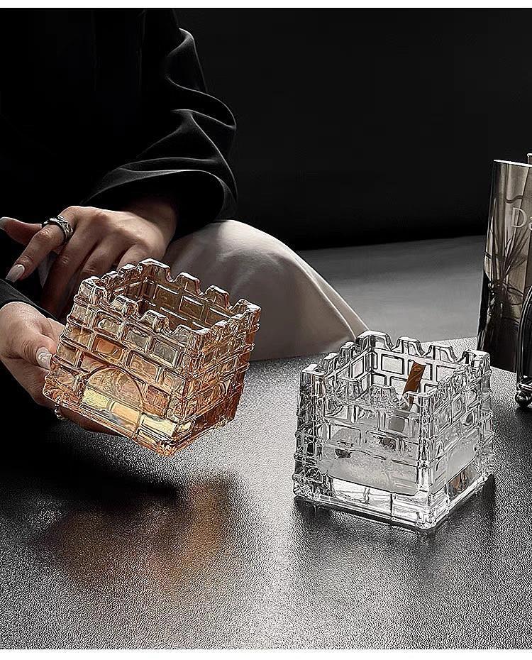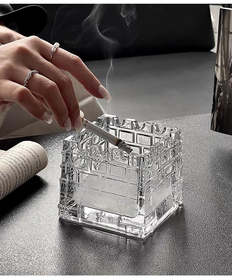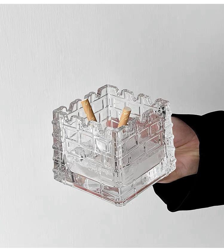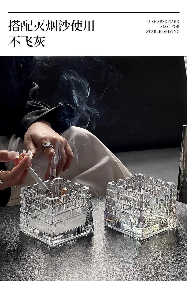 玻璃城堡烟灰缸家用客厅办公室烟缸创意个性潮流轻奢摆件时尚家居