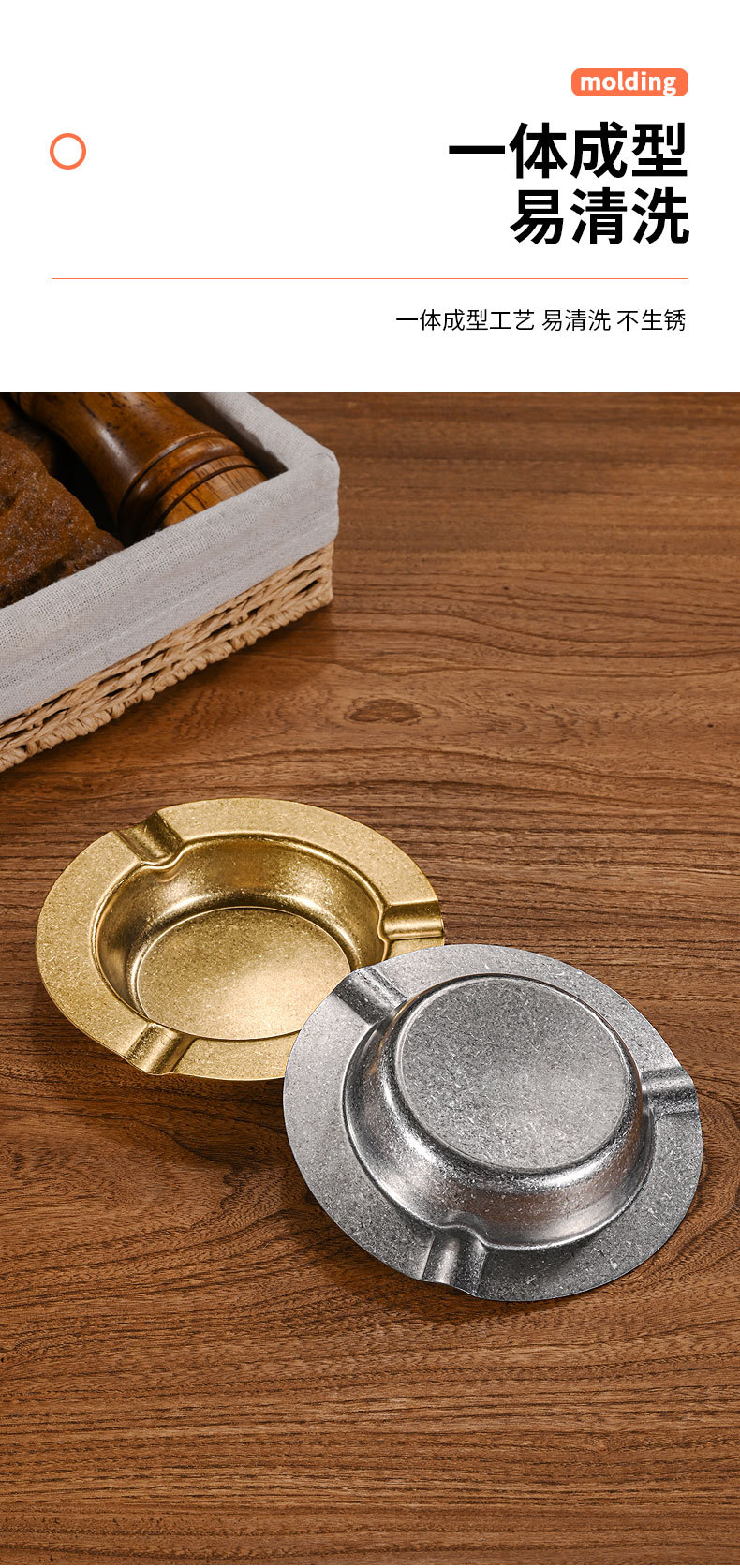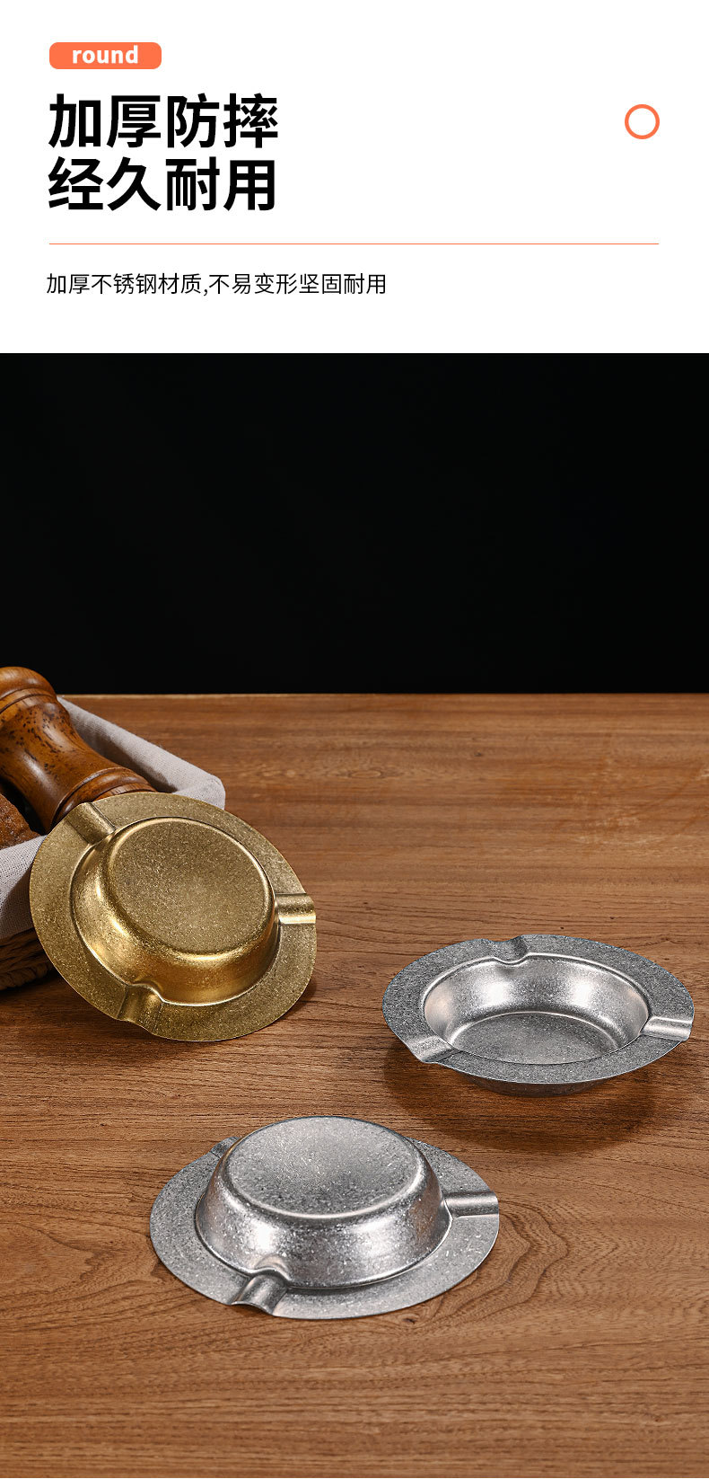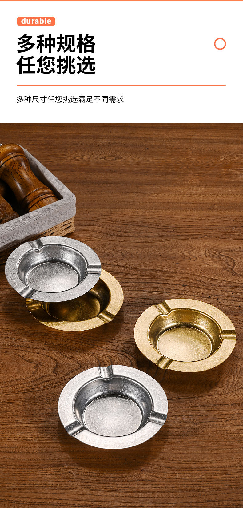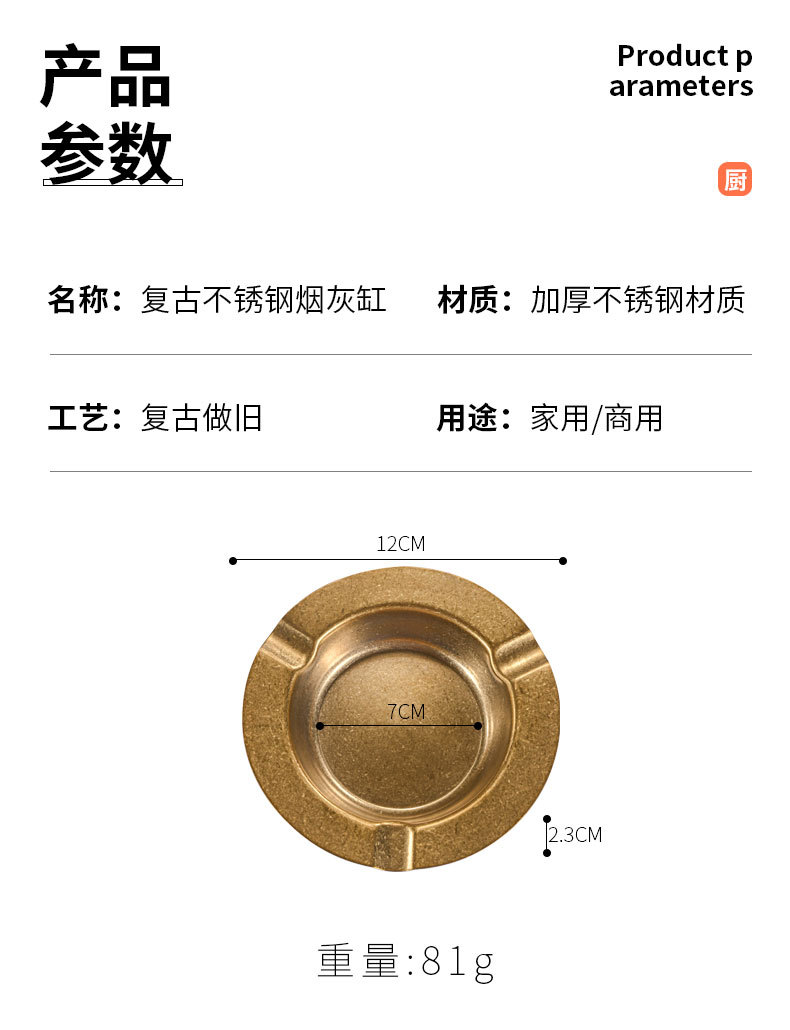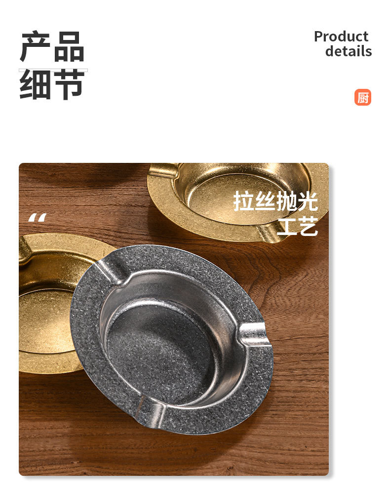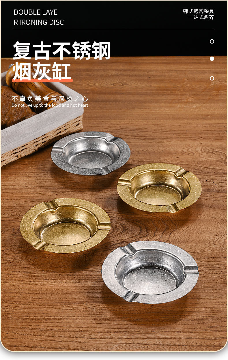 复古不锈钢烟灰缸 家用客厅创意烟缸酒店ktv餐厅加厚雪茄烟灰缸