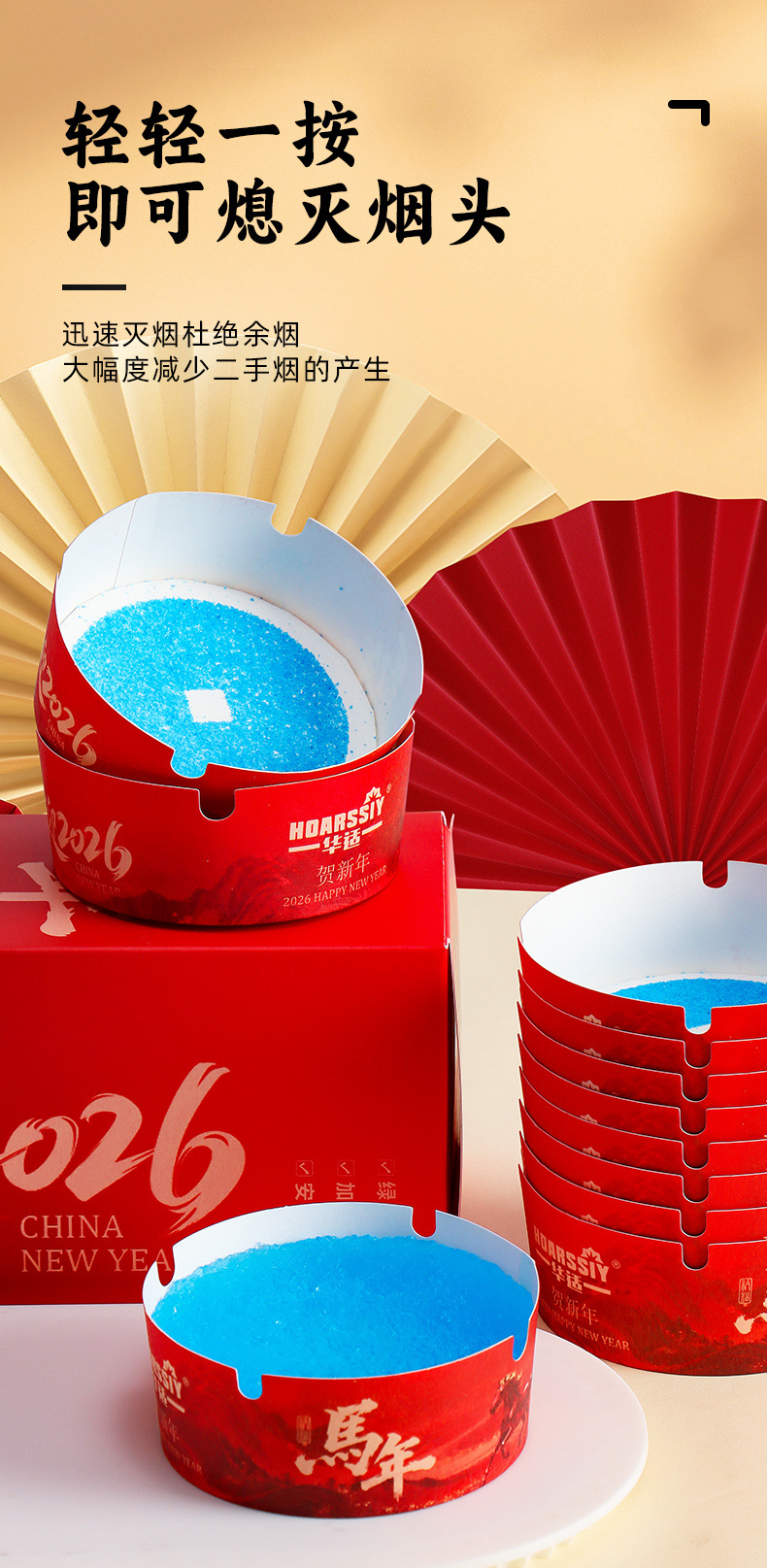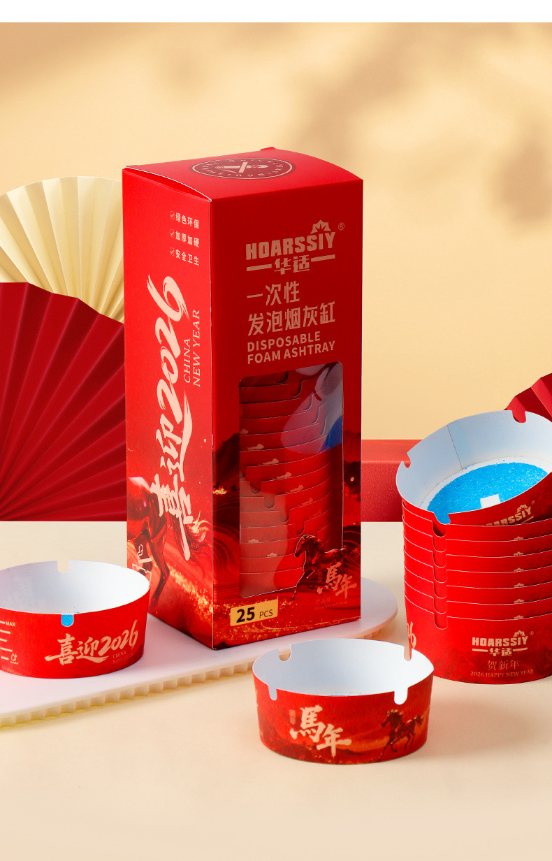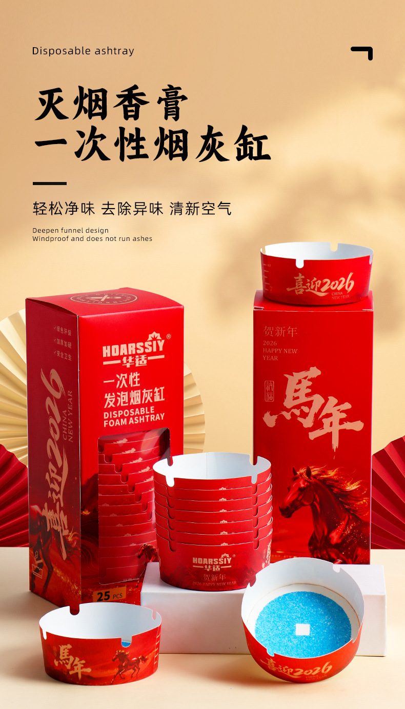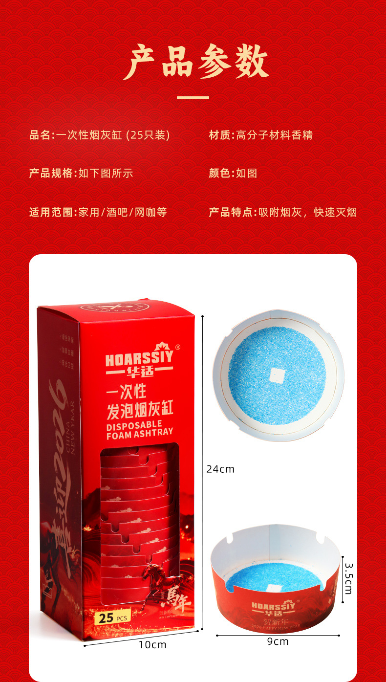 华适2026限定款一次性发泡烟灰缸办公室快速灭烟吸附烟灰健康黑马