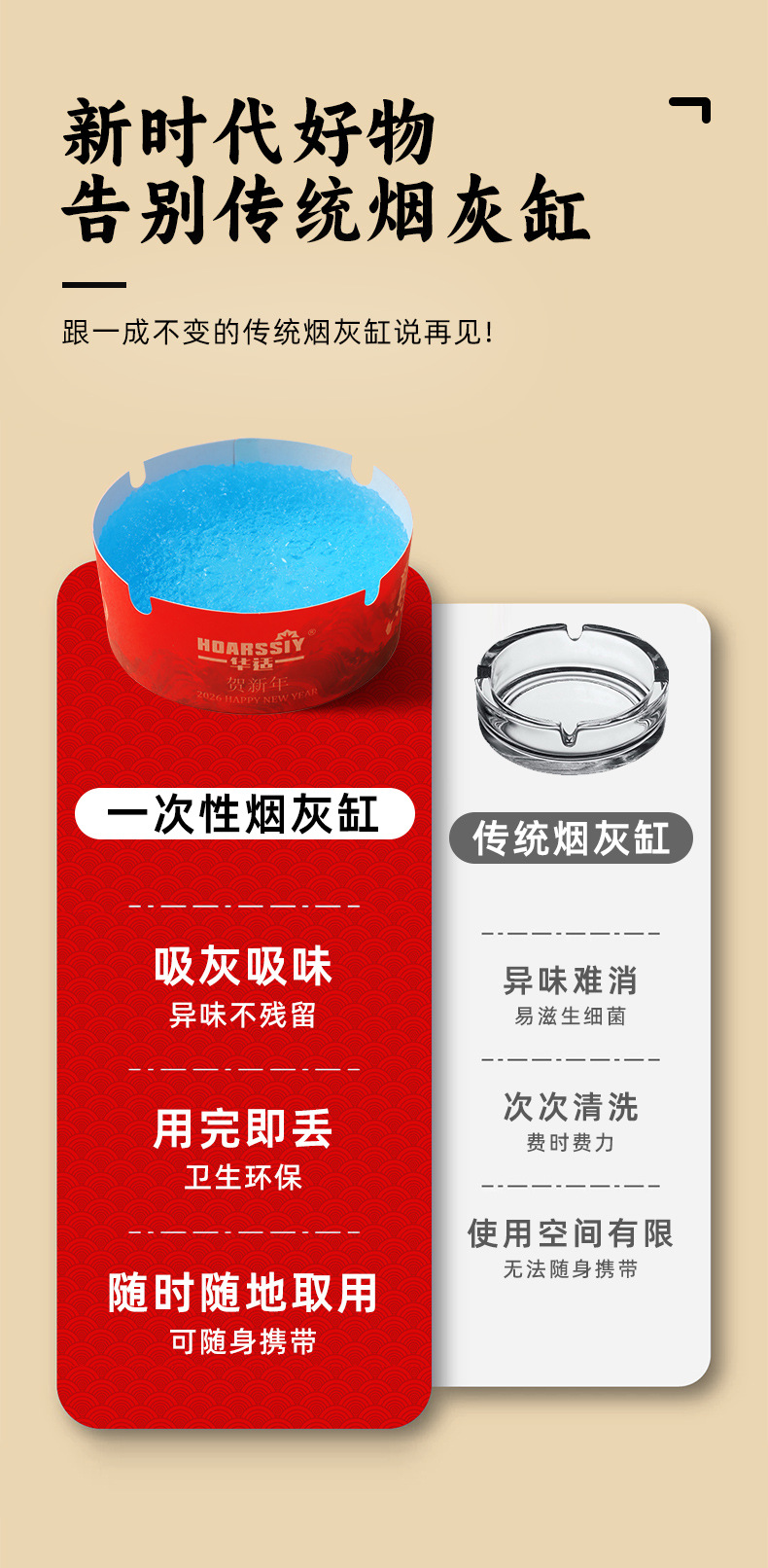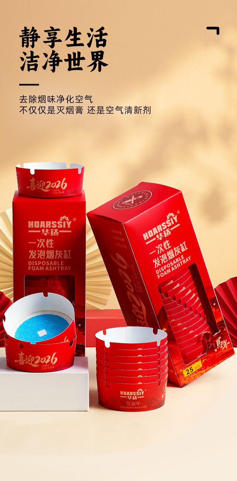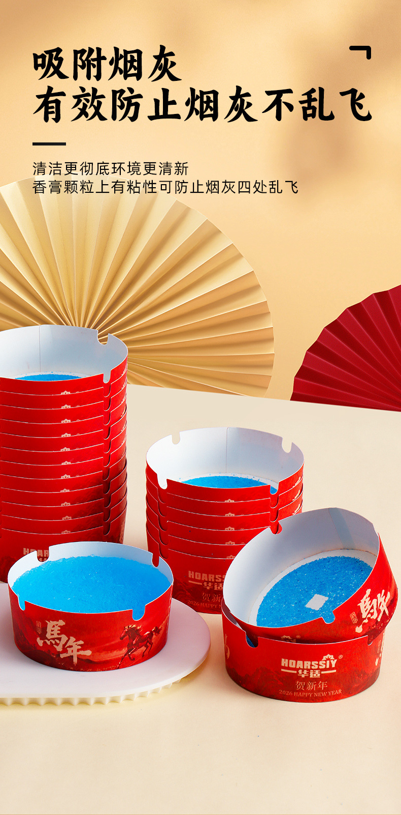 华适2026限定款一次性发泡烟灰缸办公室快速灭烟吸附烟灰健康黑马