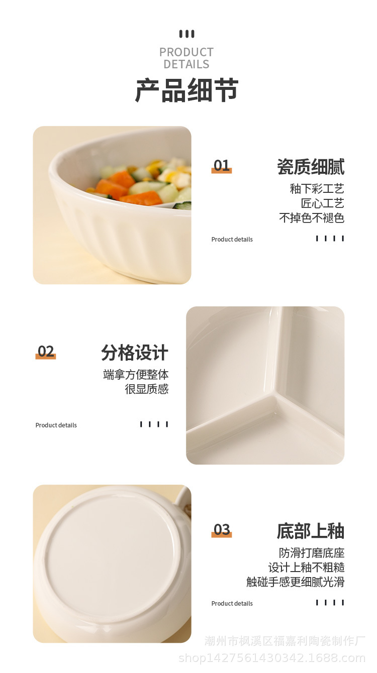 陶瓷三格餐盘家用火锅葱姜蒜分格盘备菜盘水果盘配菜盘子