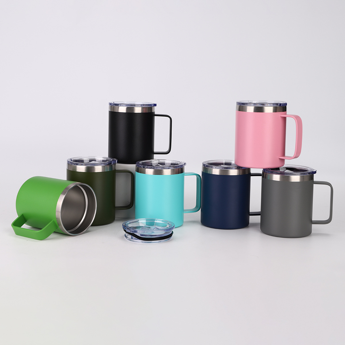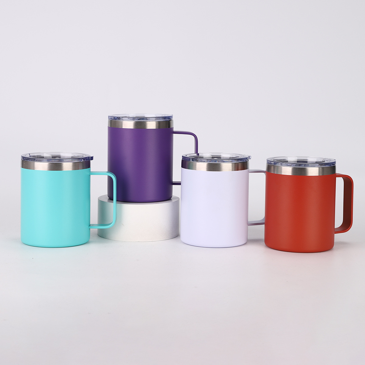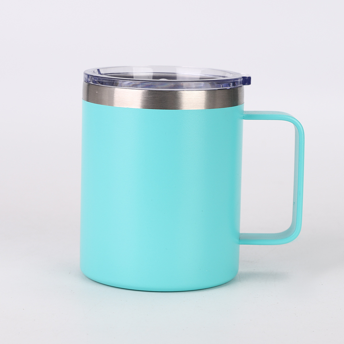 12oz14oz带手柄马克杯304不锈钢保温杯创意便携带盖办公啤酒杯