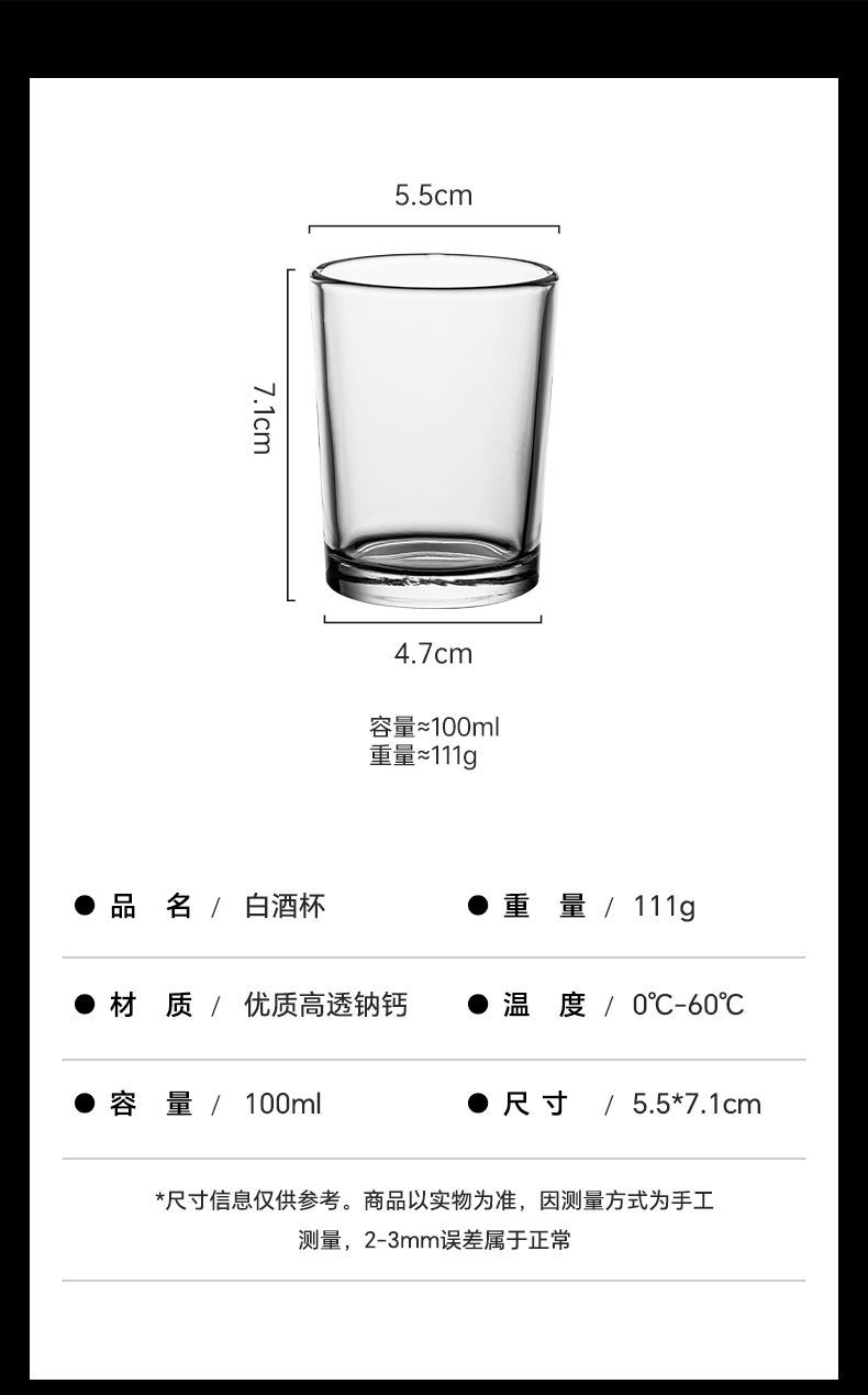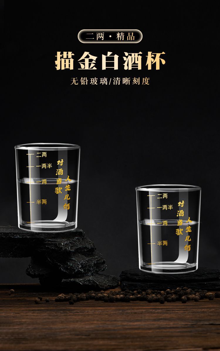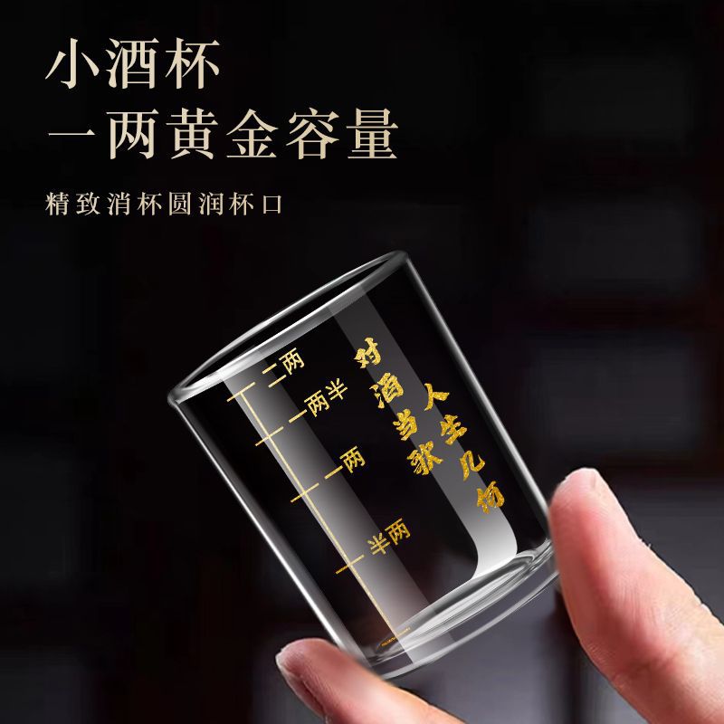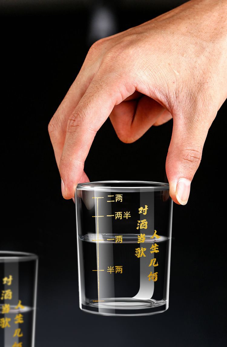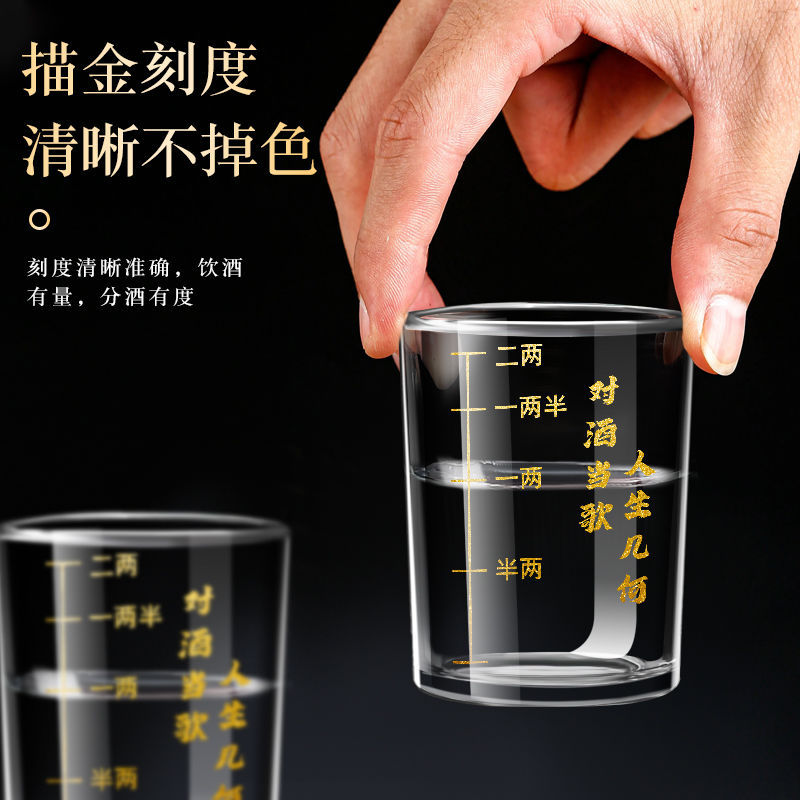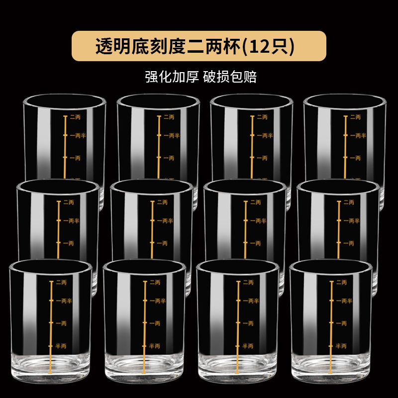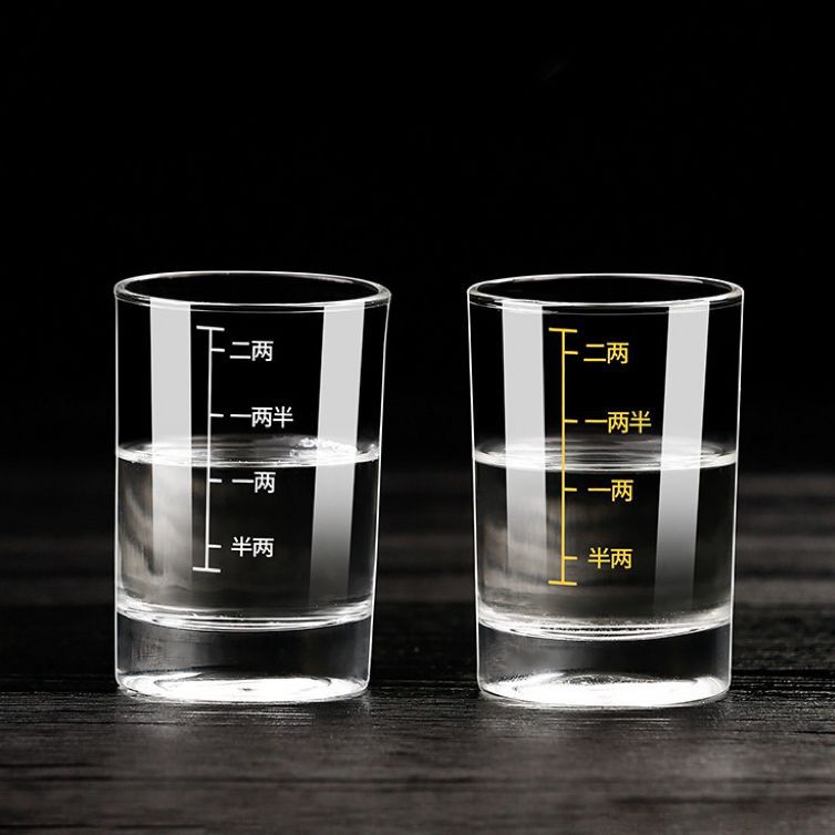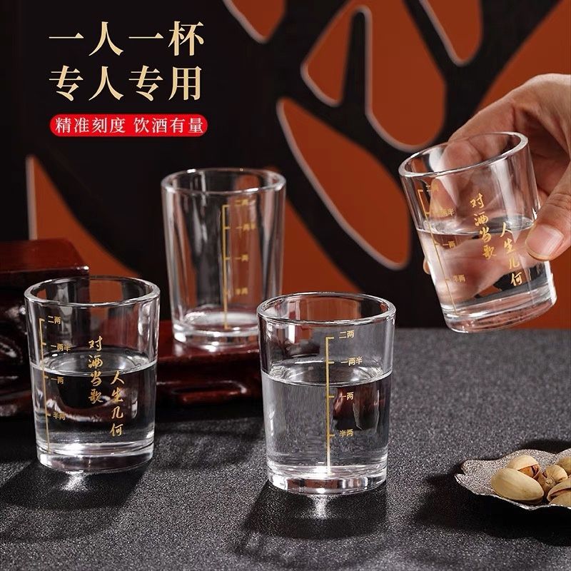 刻度一两二两白酒杯家用小号1两2两杯烈酒杯啤酒玻璃杯酒具100ml