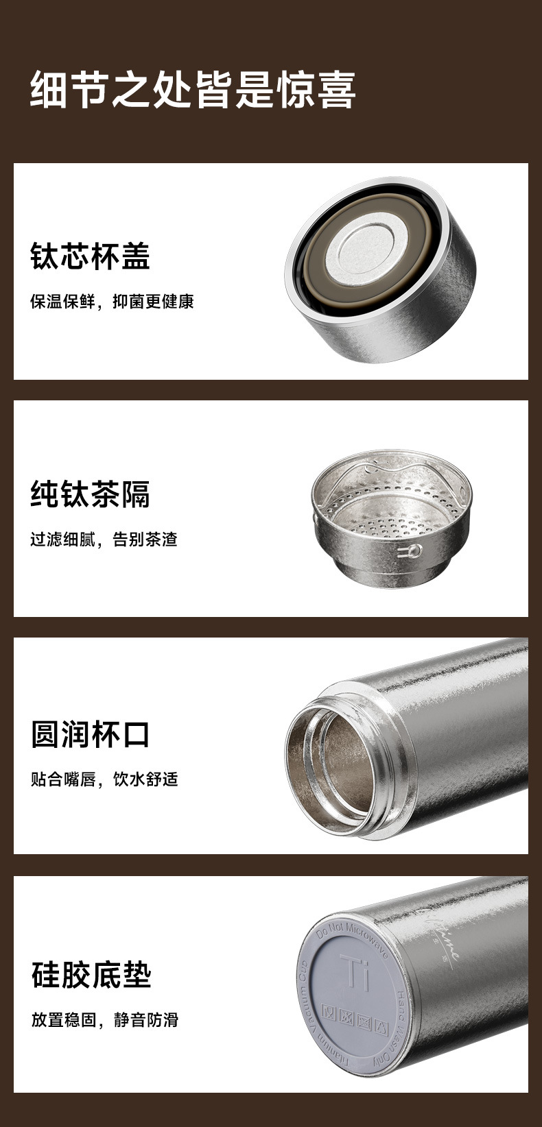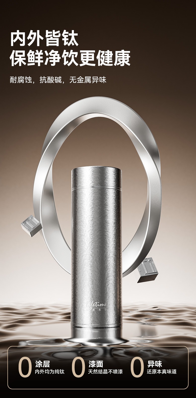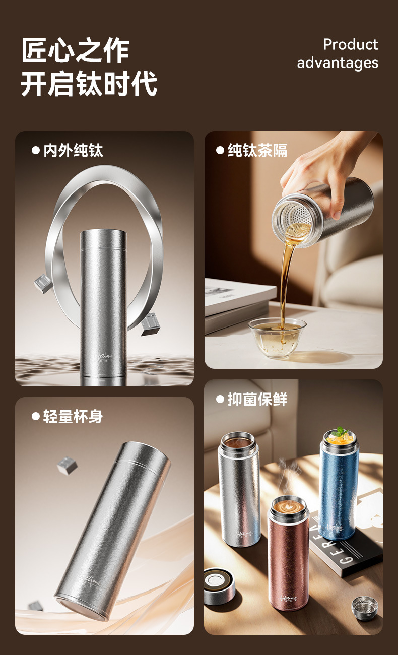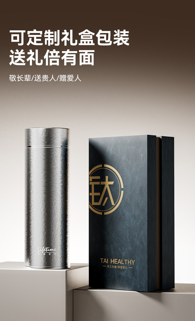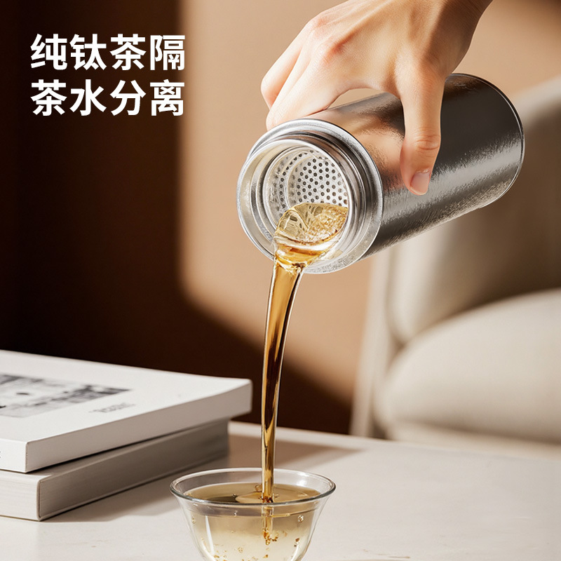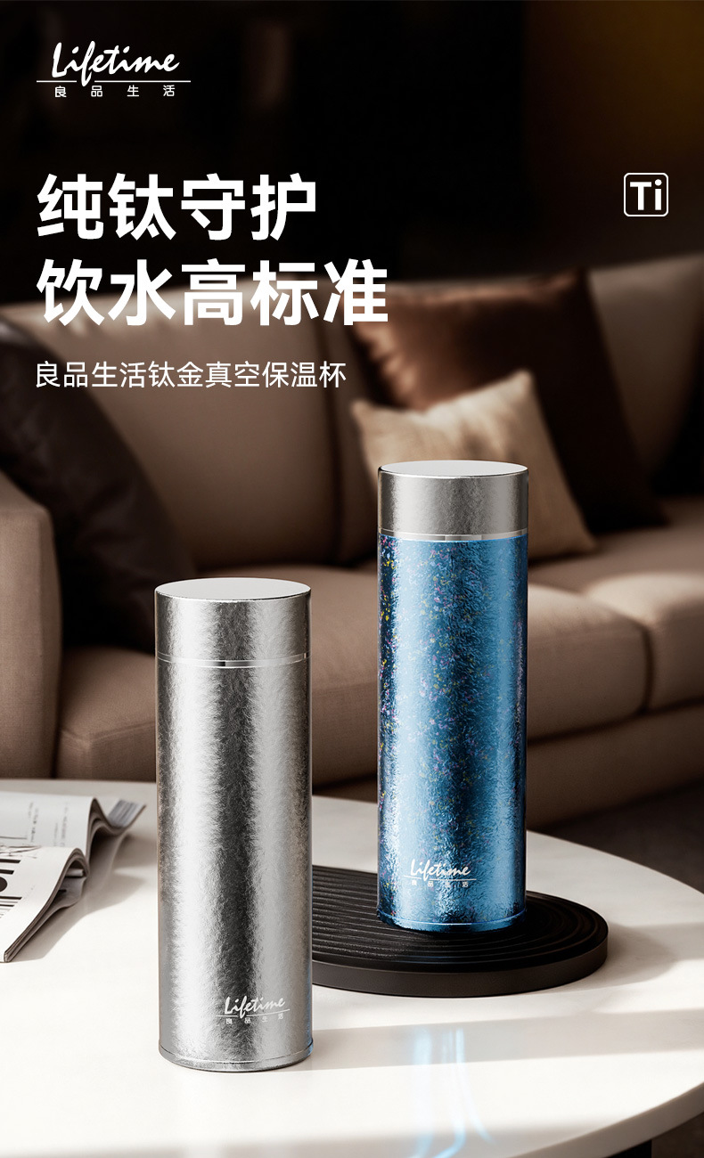 良品生活钛金真空保温杯纯钛双层全钛直杯便携泡茶杯男女士养生钛