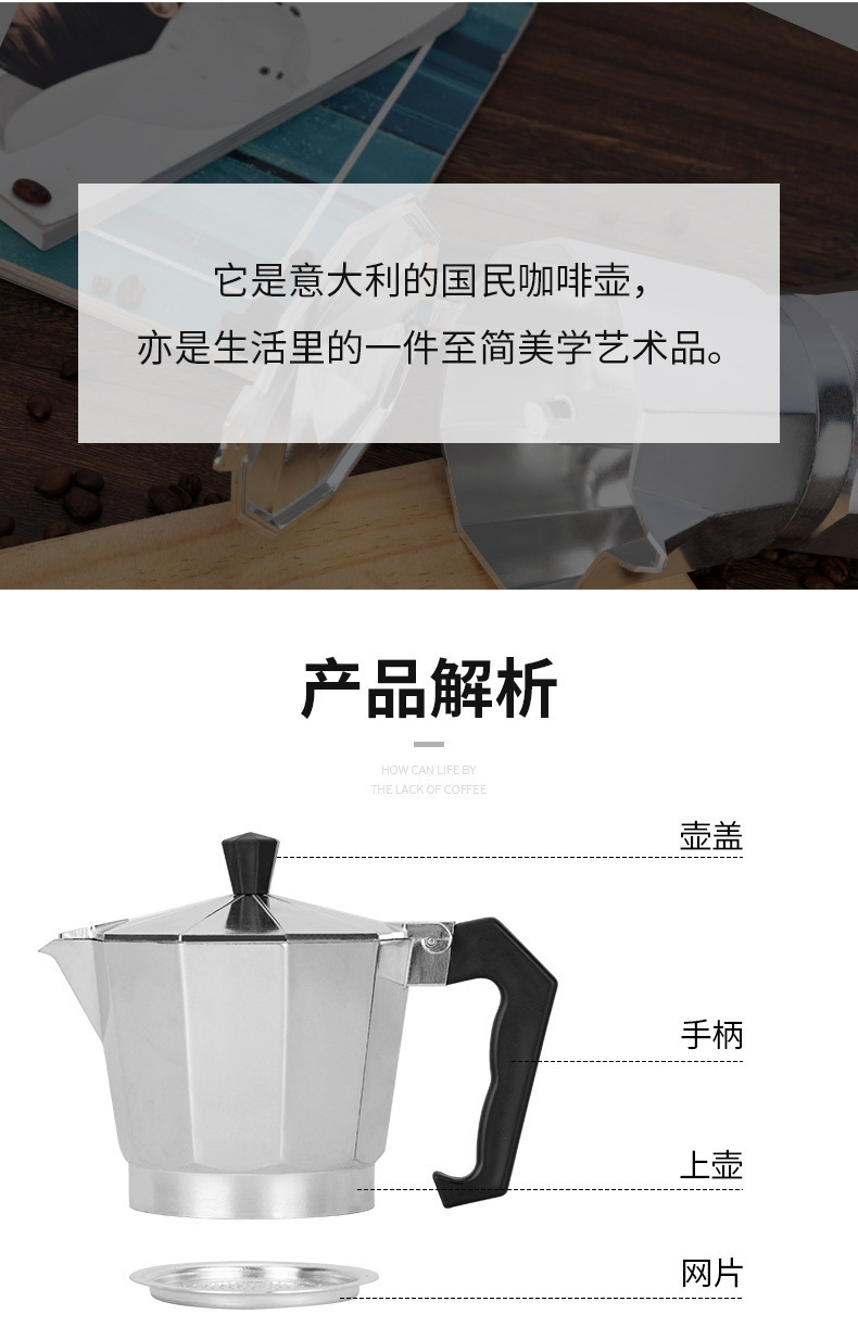 家用摩卡咖啡壶意式铝制八角壶办公室咖啡杯电池炉加热煮咖啡套装