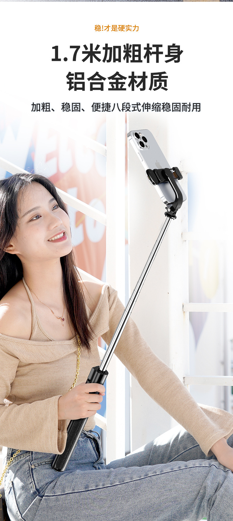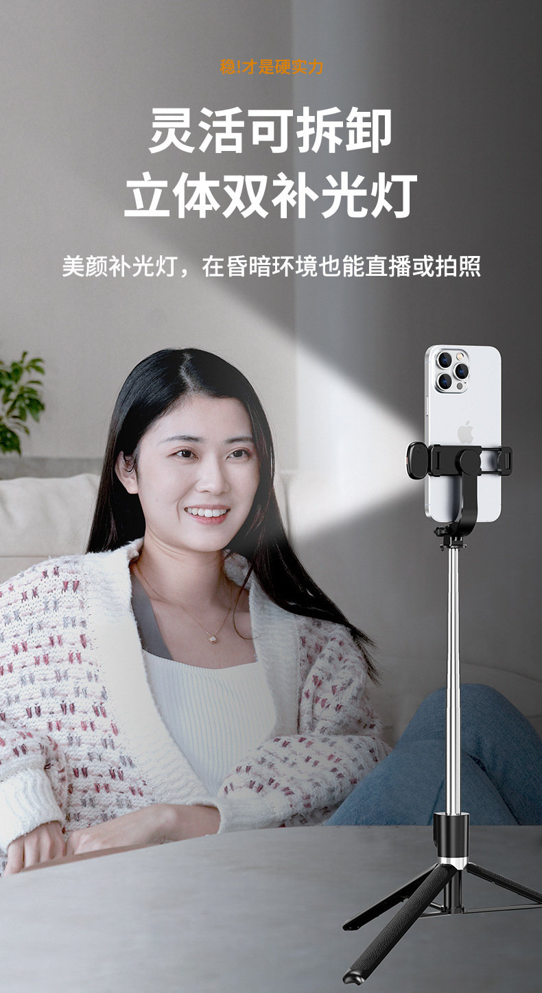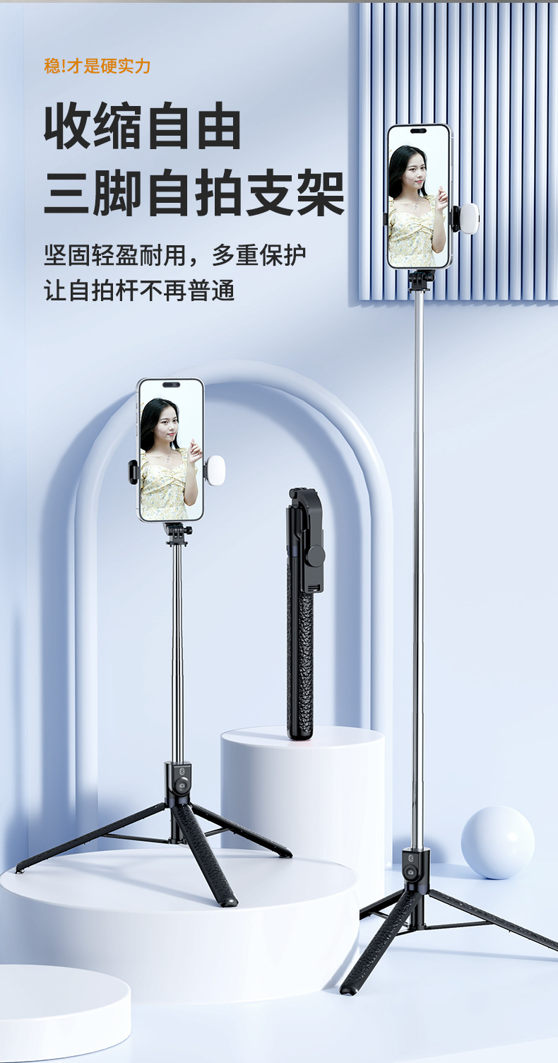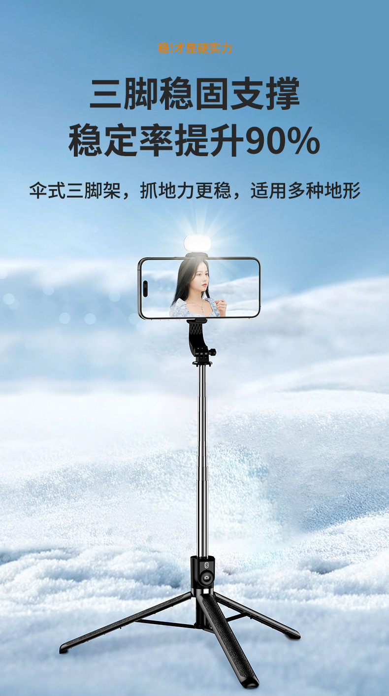 一体式蓝牙手机自拍杆伞式三脚架旅游便携稳固支架【含工厂信息】