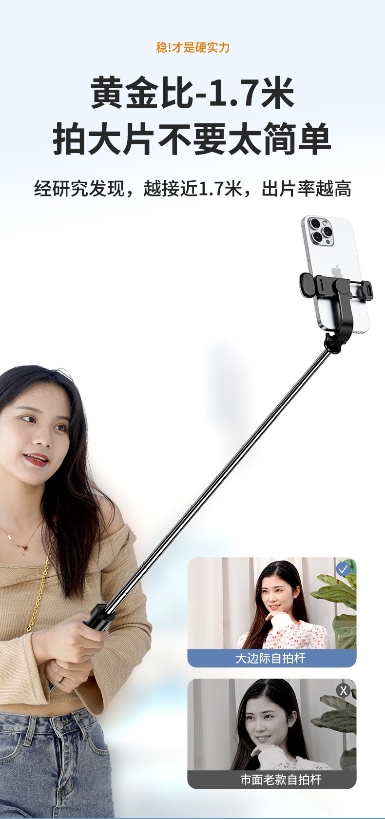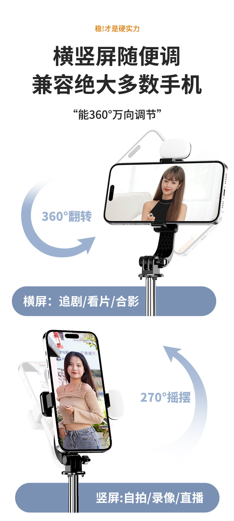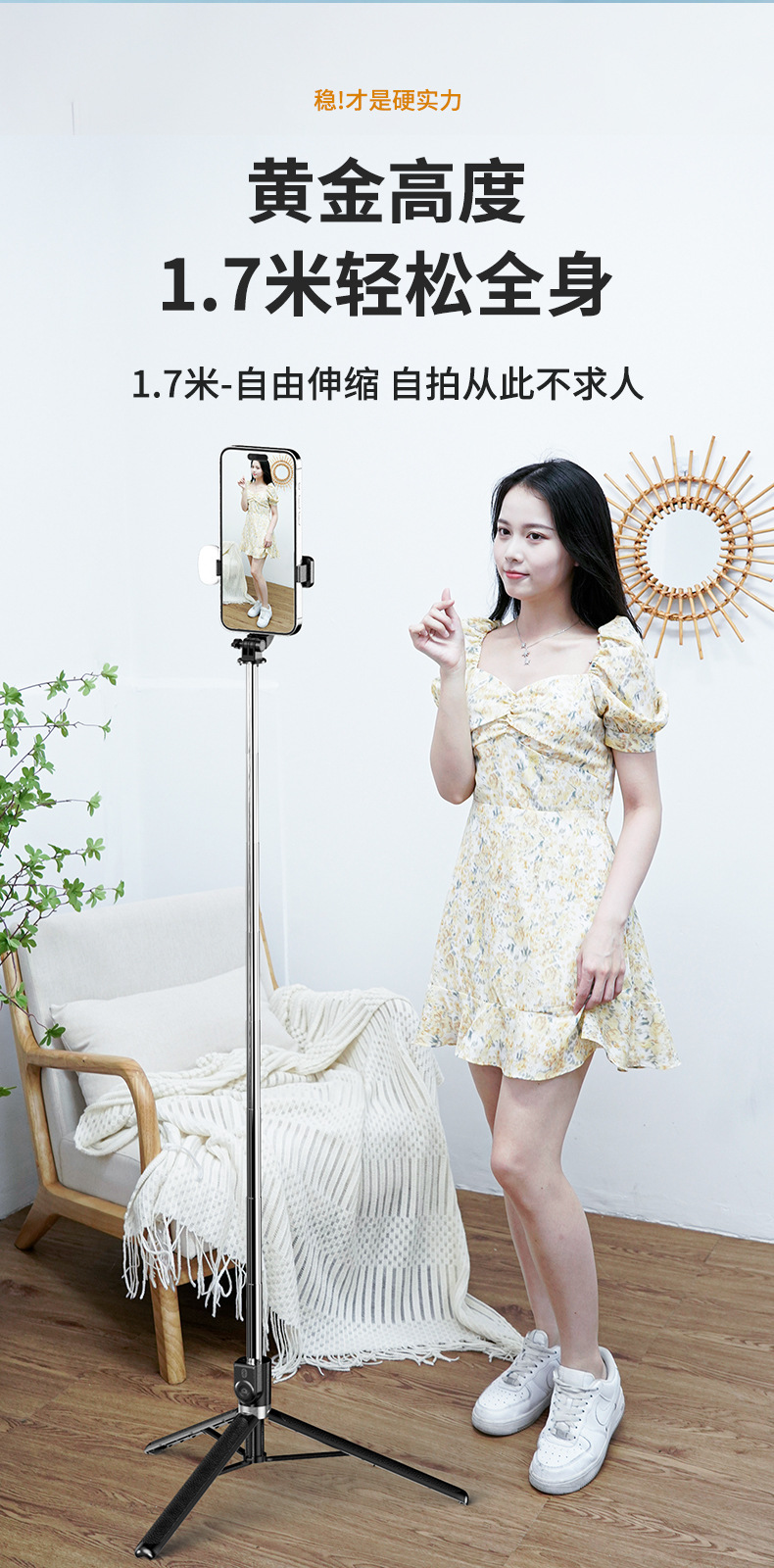 一体式蓝牙手机自拍杆伞式三脚架旅游便携稳固支架【含工厂信息】