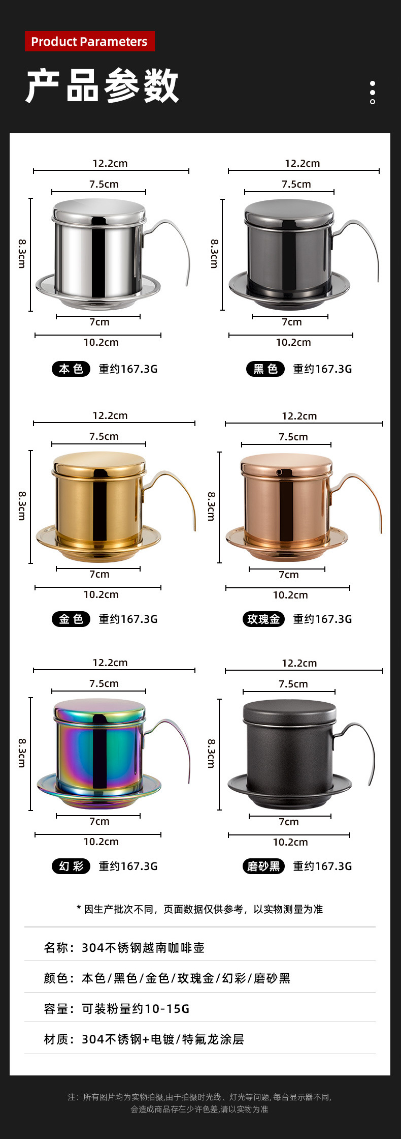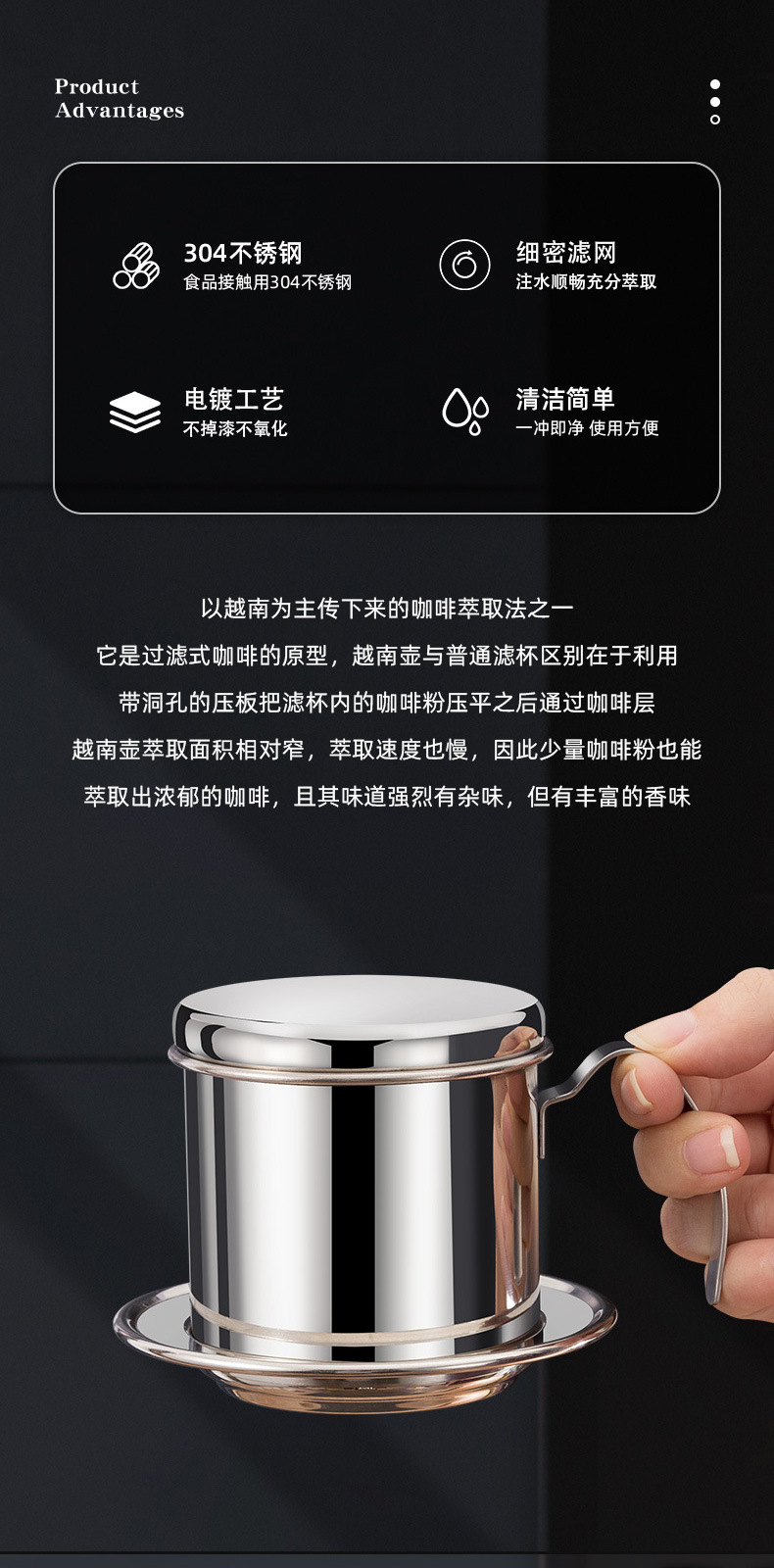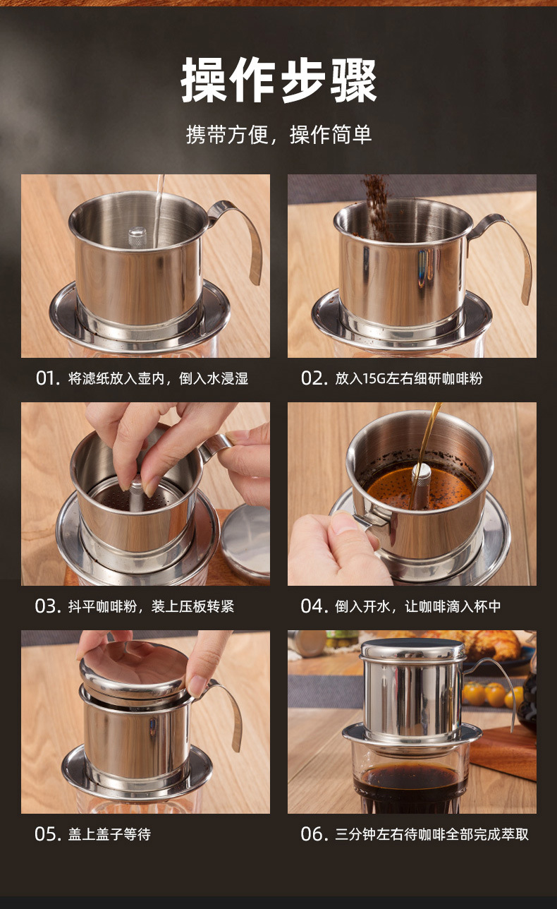 越南咖啡滴滴壶家用咖啡过滤器不锈钢手冲咖啡过滤杯