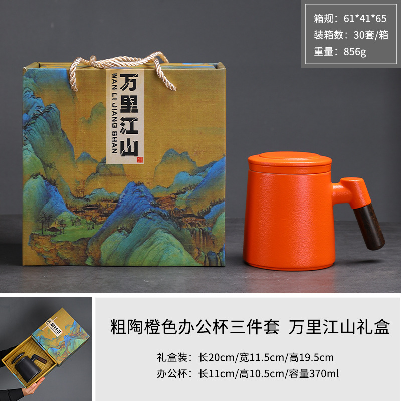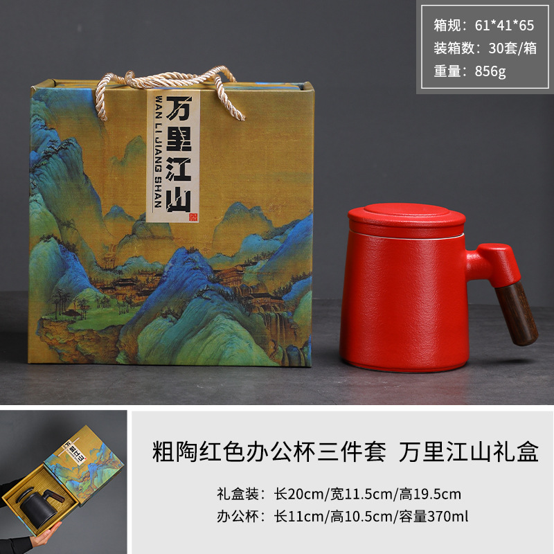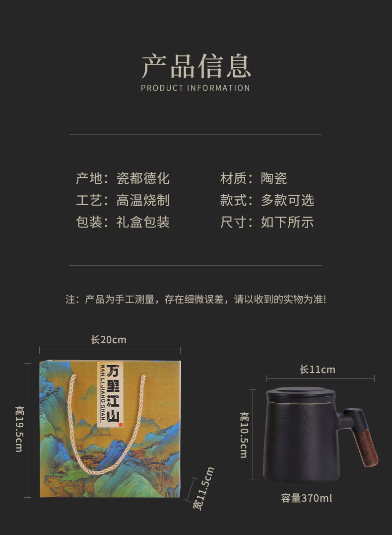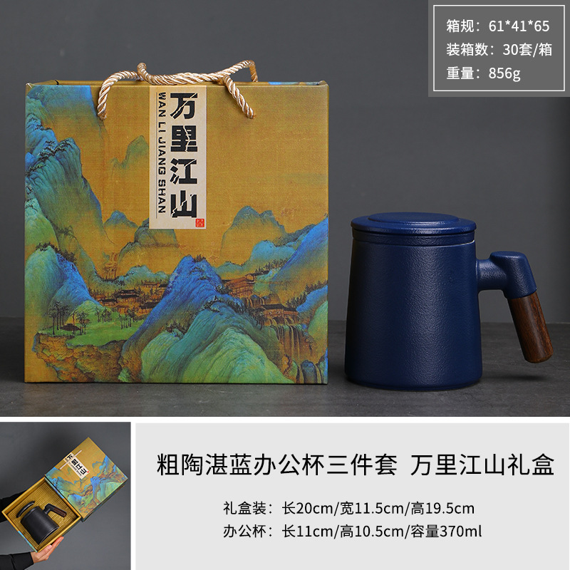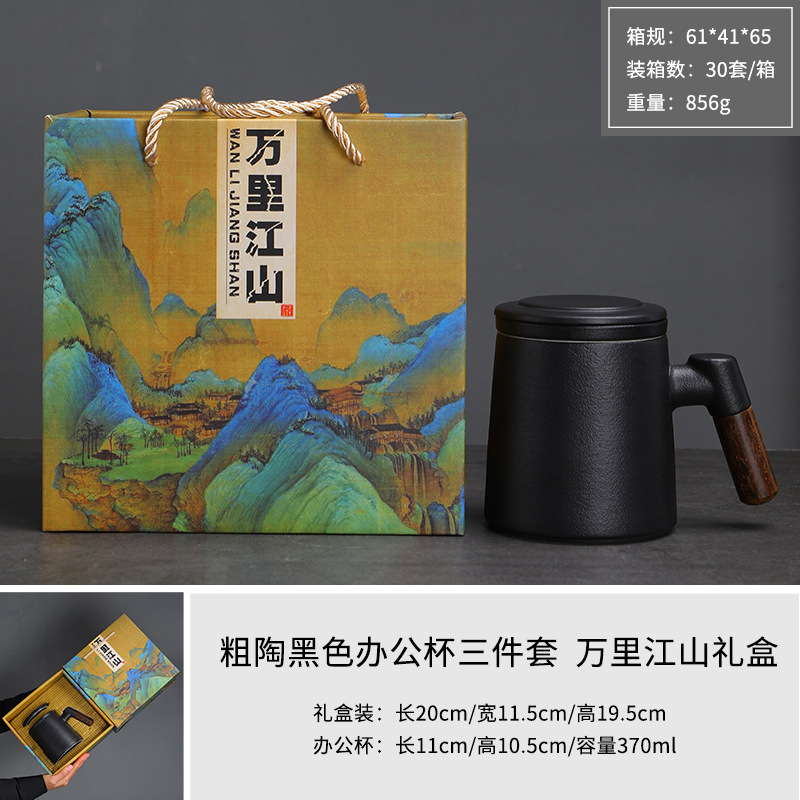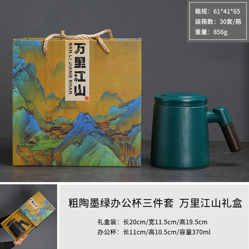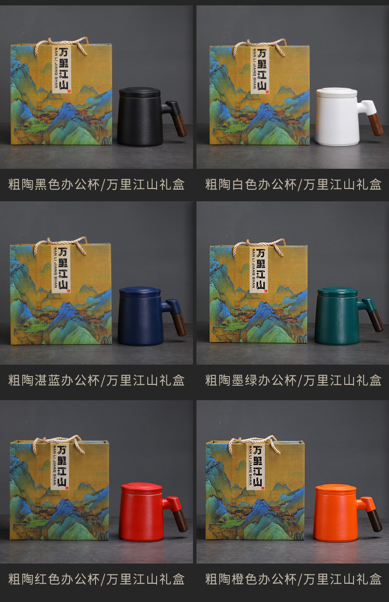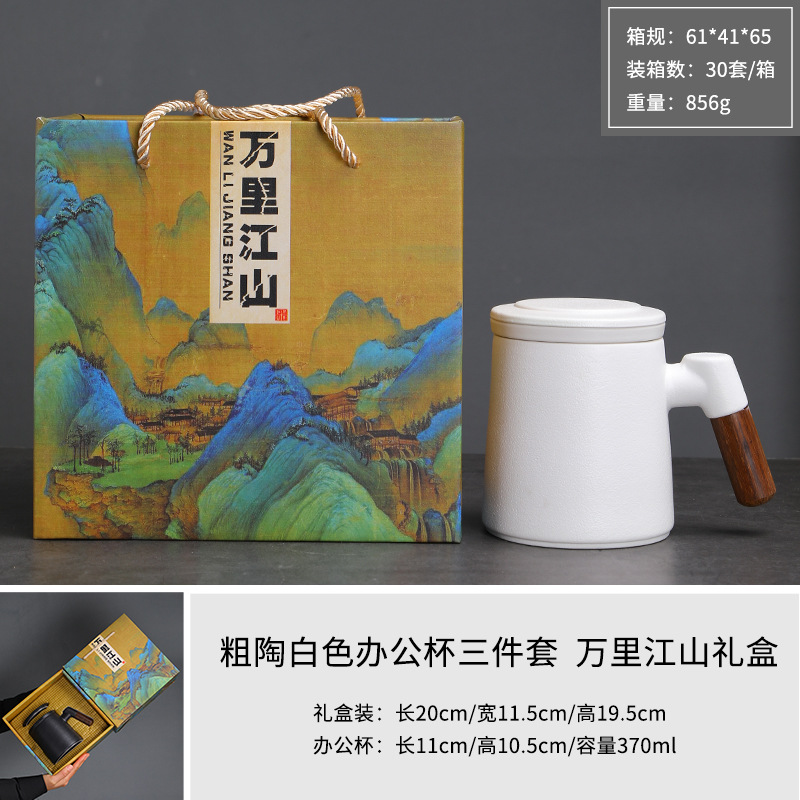 陶瓷茶水分离茶杯马克杯带盖过滤木柄水杯办公杯商务伴手礼印logo
