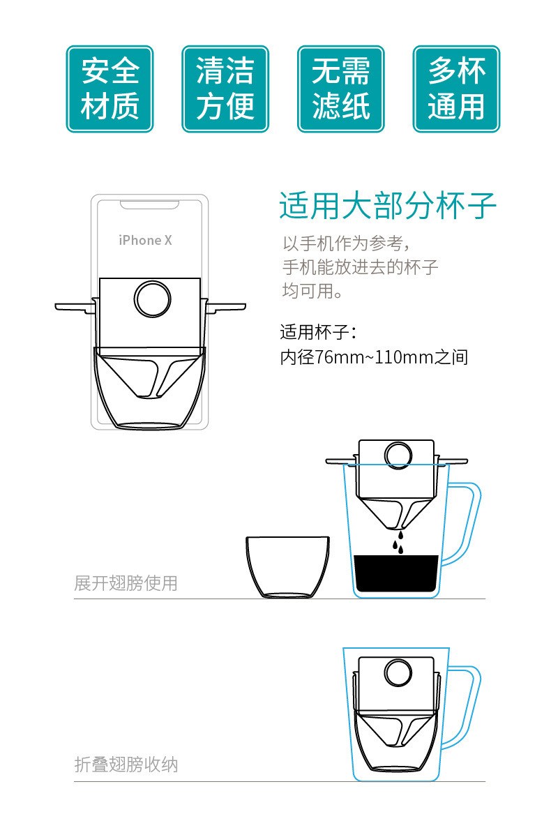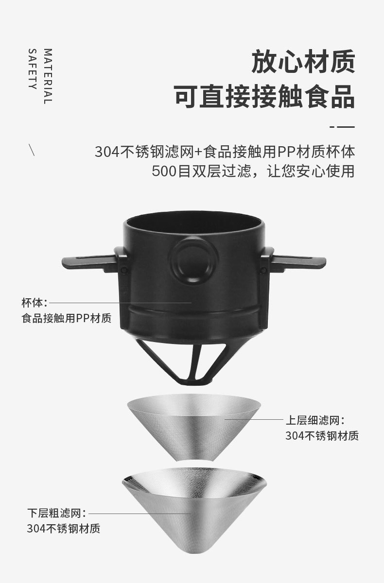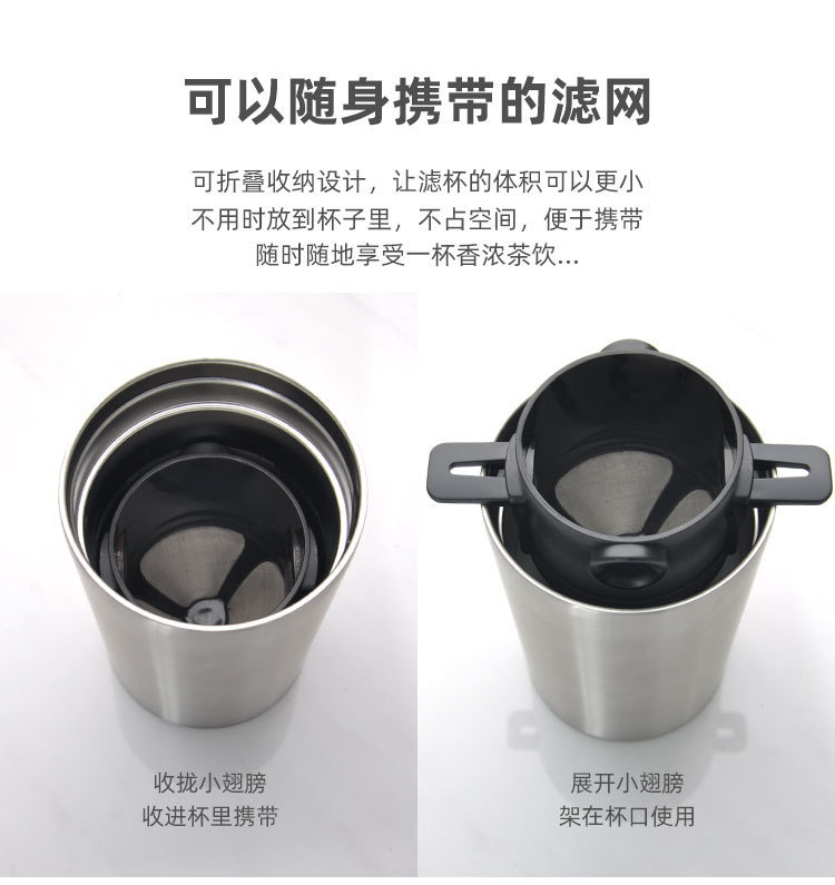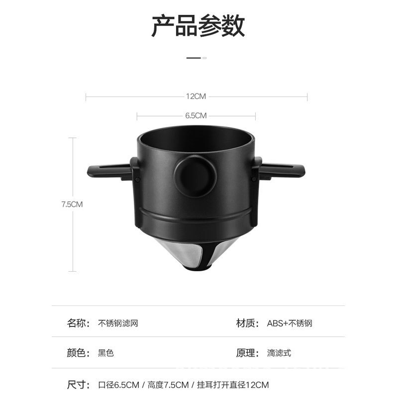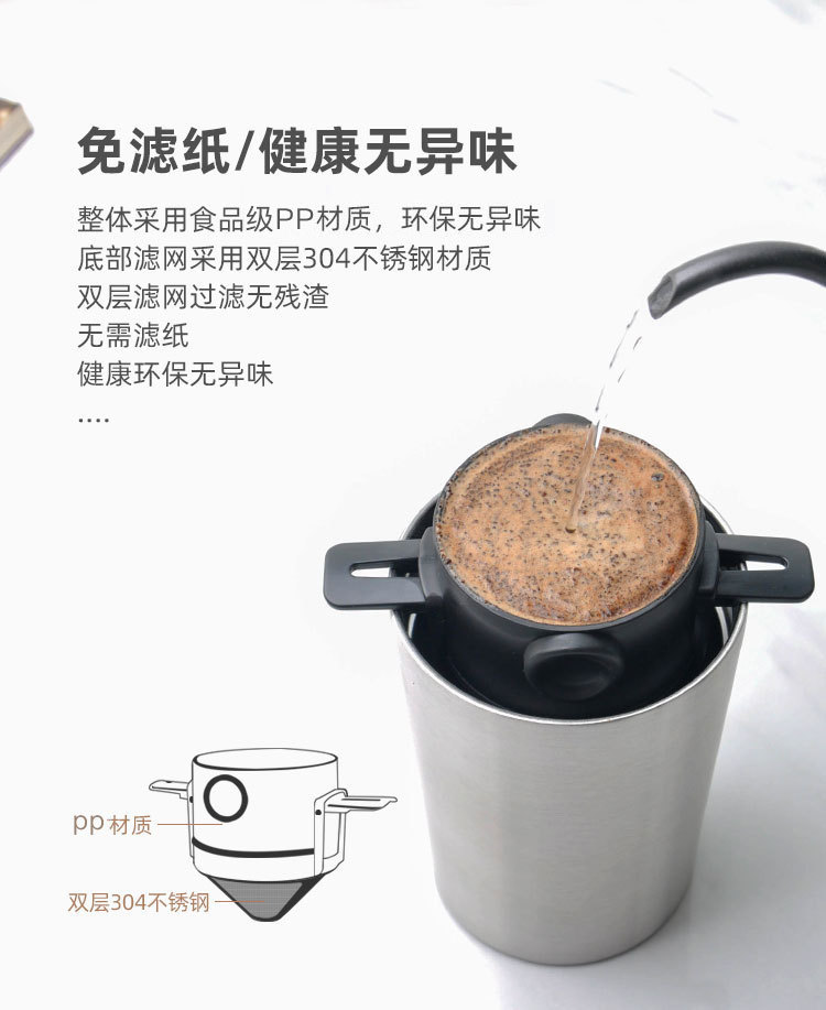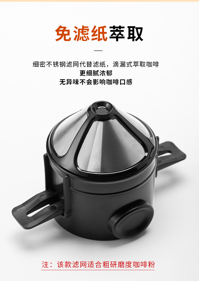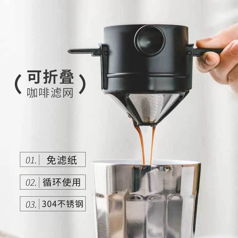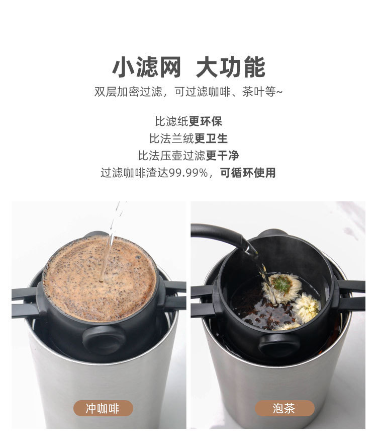 手冲咖啡滤杯过滤器滴滤式不锈钢滤网代替滤纸滤袋双层耐用材质