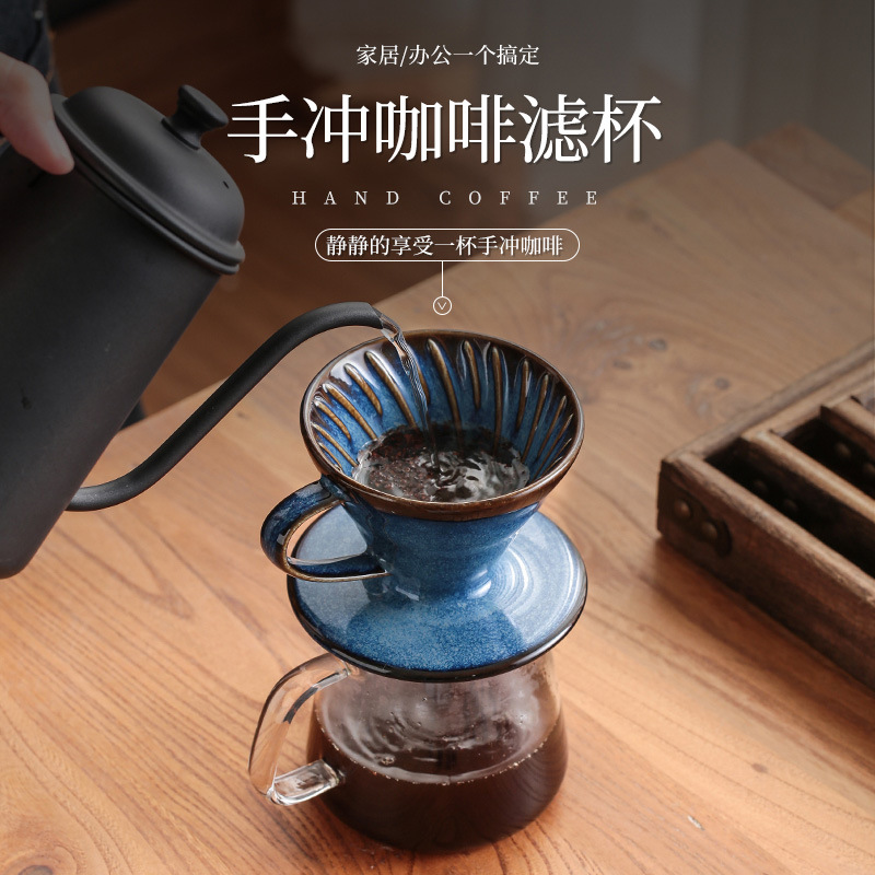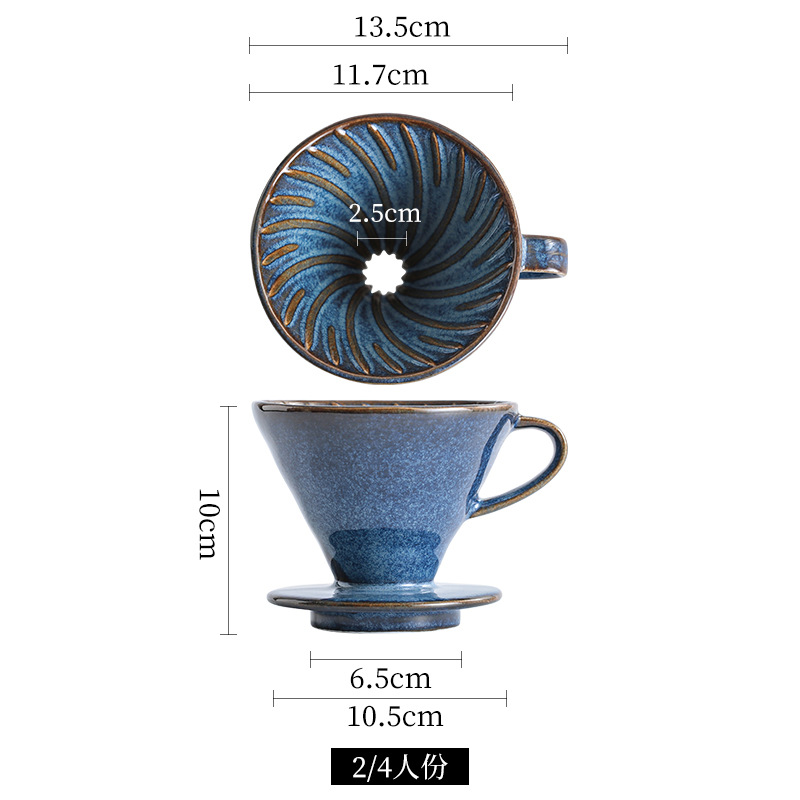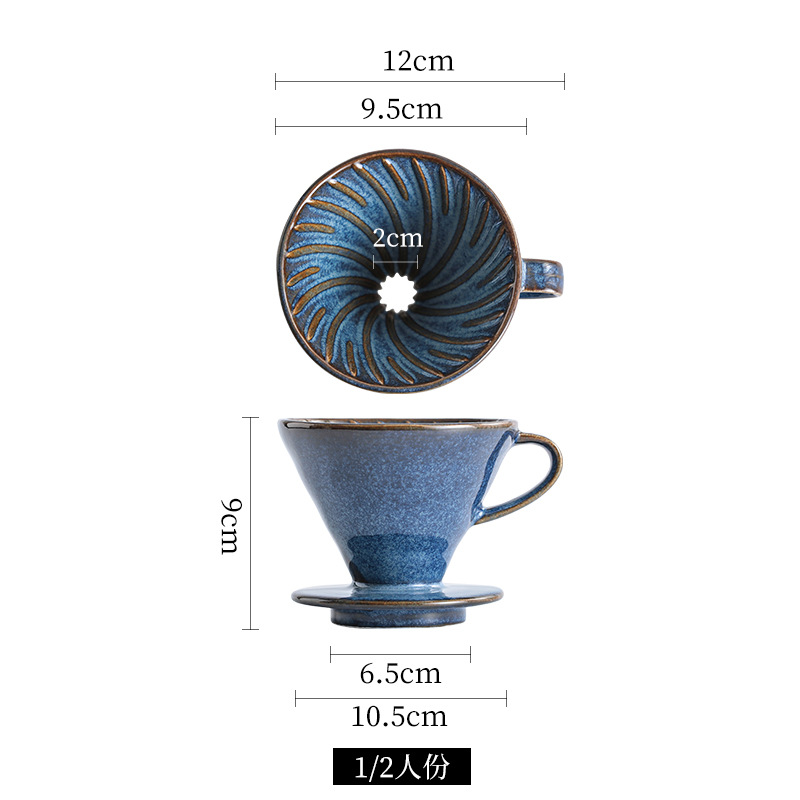 陶瓷V60锥形手冲咖啡过滤杯螺旋纹滴漏式窑变复古过滤器咖啡器具