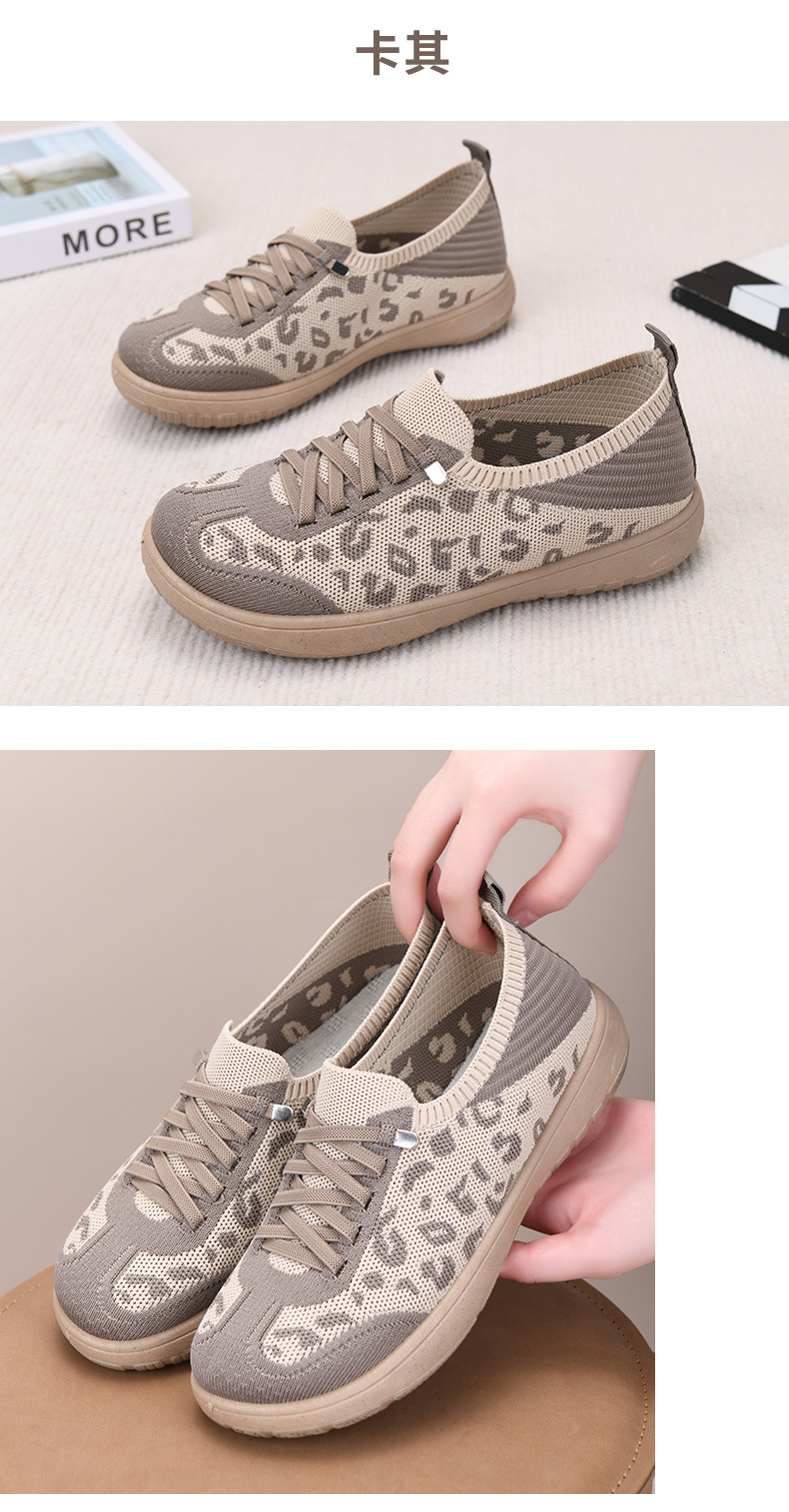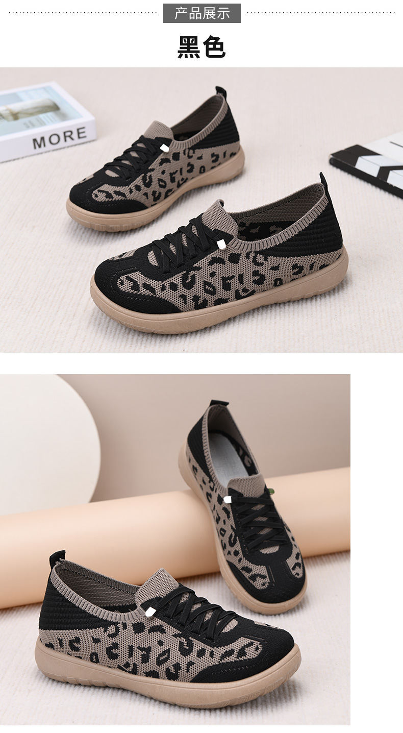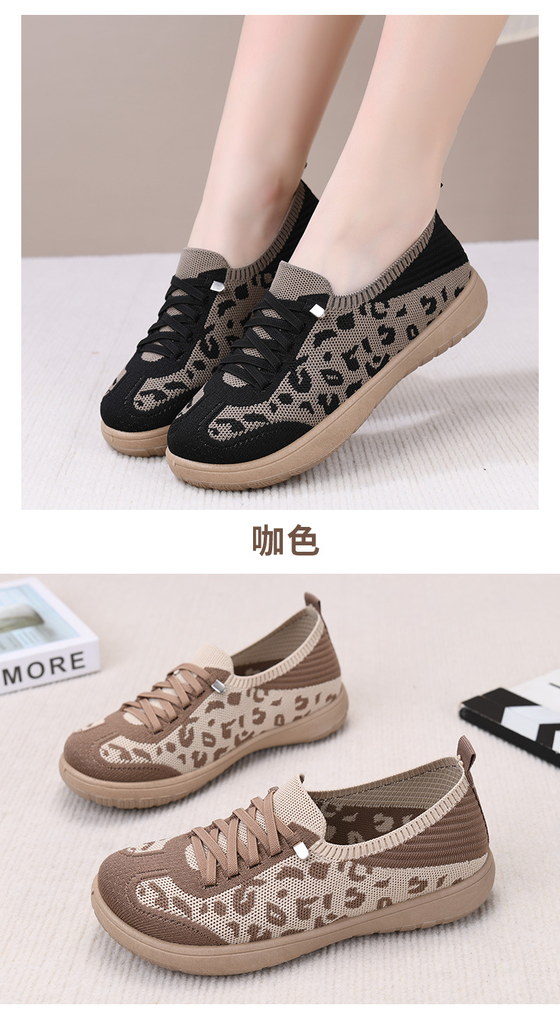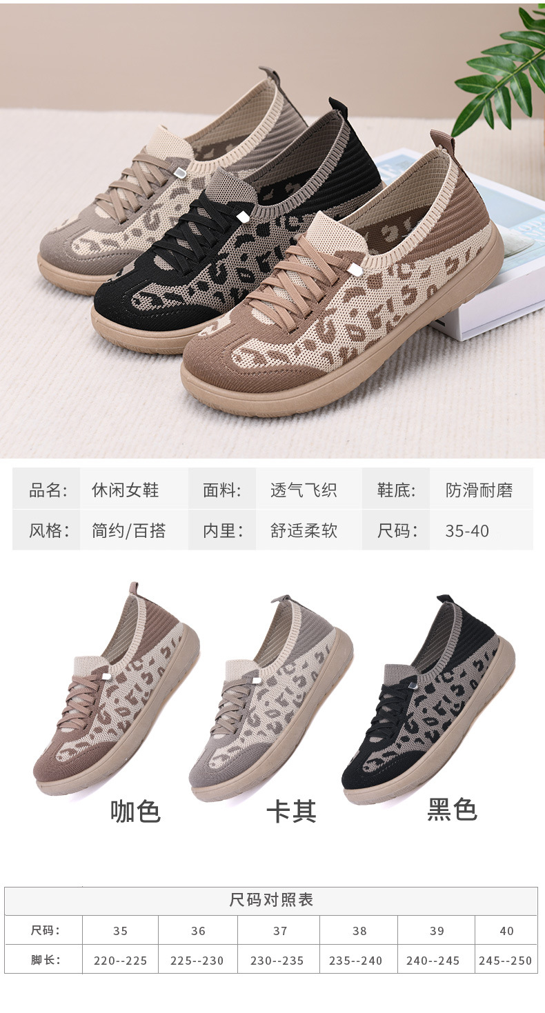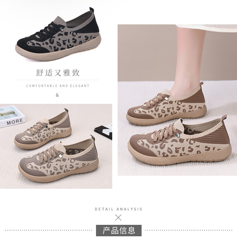 豹纹德训鞋春夏季新款飞织网面单鞋软底透气休闲女鞋一脚蹬妈妈鞋