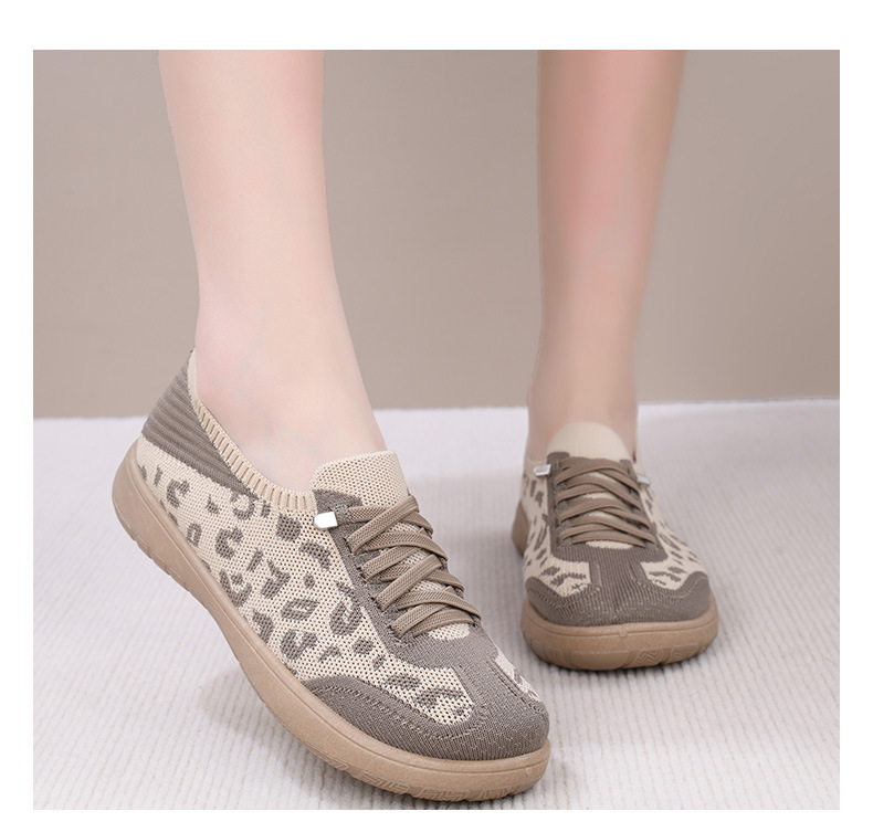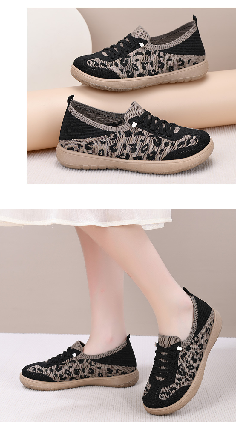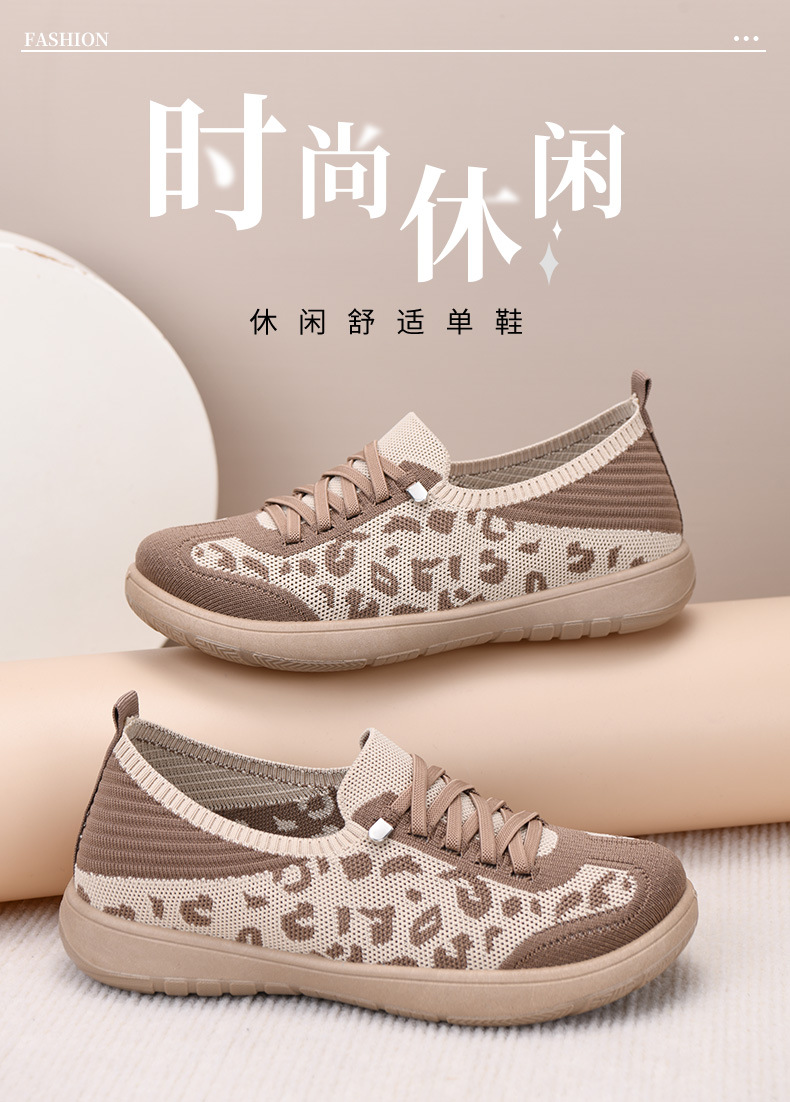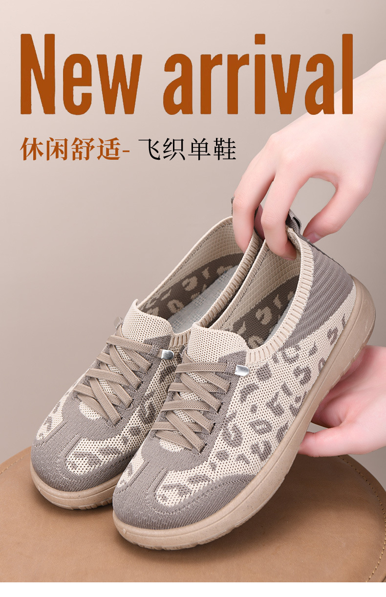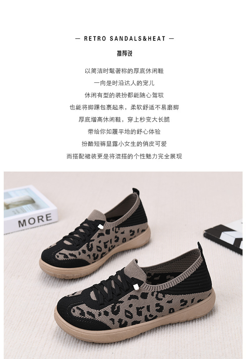 豹纹德训鞋春夏季新款飞织网面单鞋软底透气休闲女鞋一脚蹬妈妈鞋