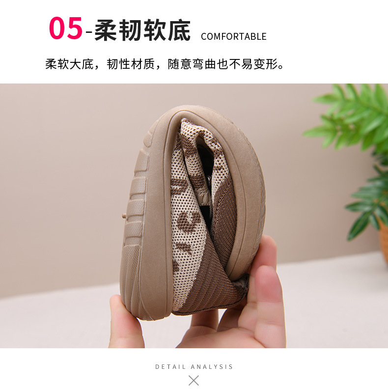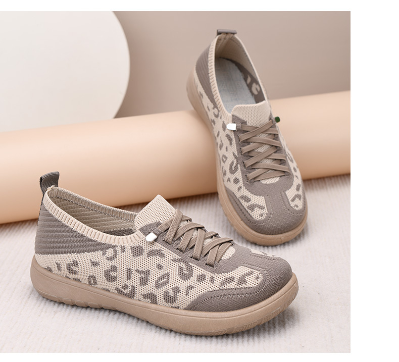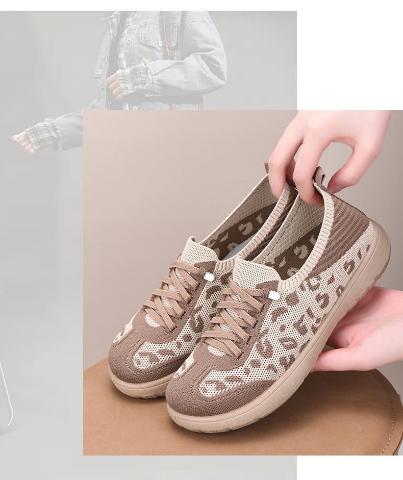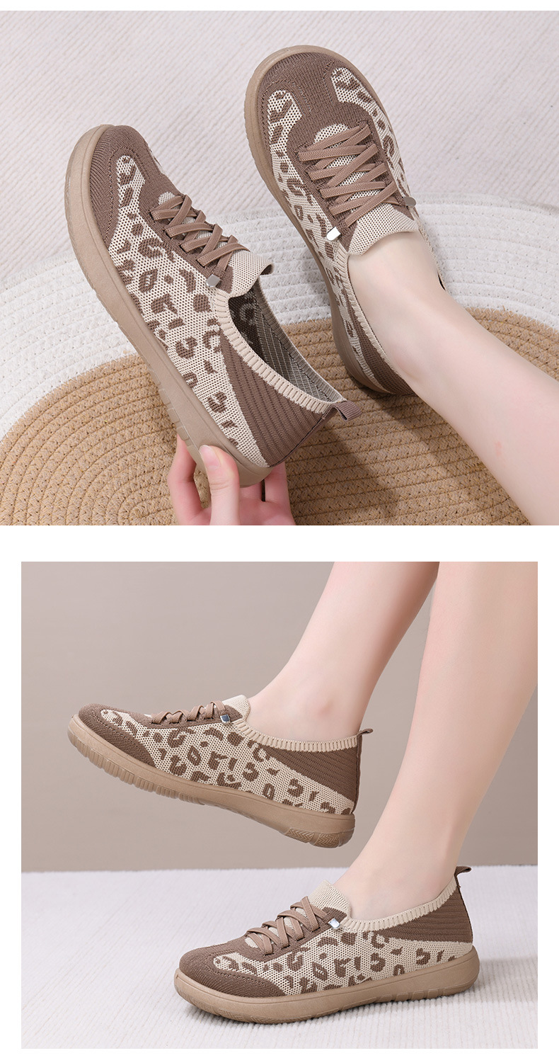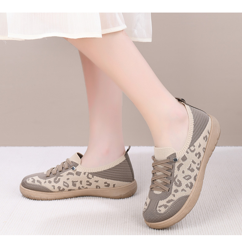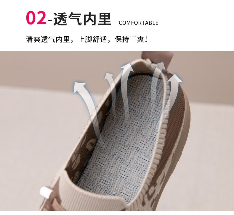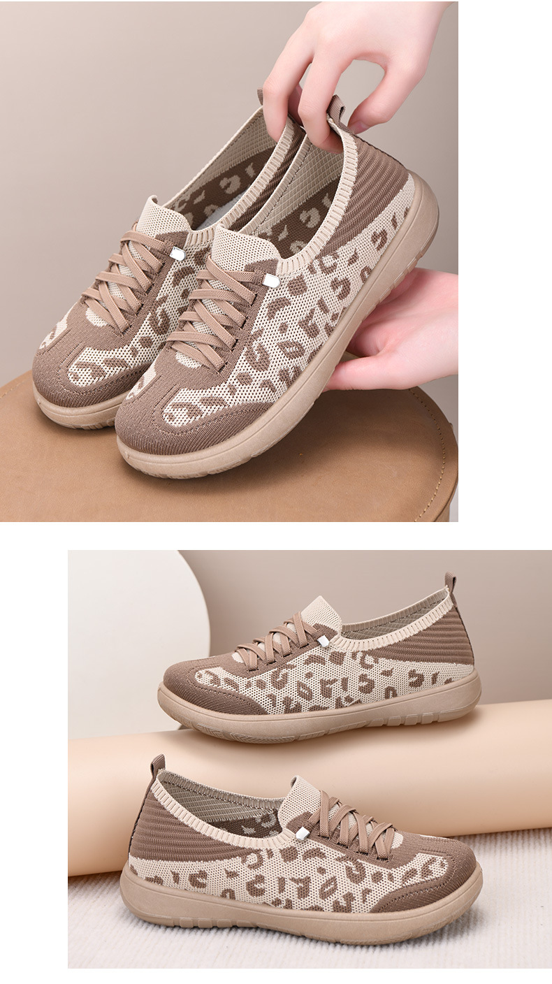 豹纹德训鞋春夏季新款飞织网面单鞋软底透气休闲女鞋一脚蹬妈妈鞋