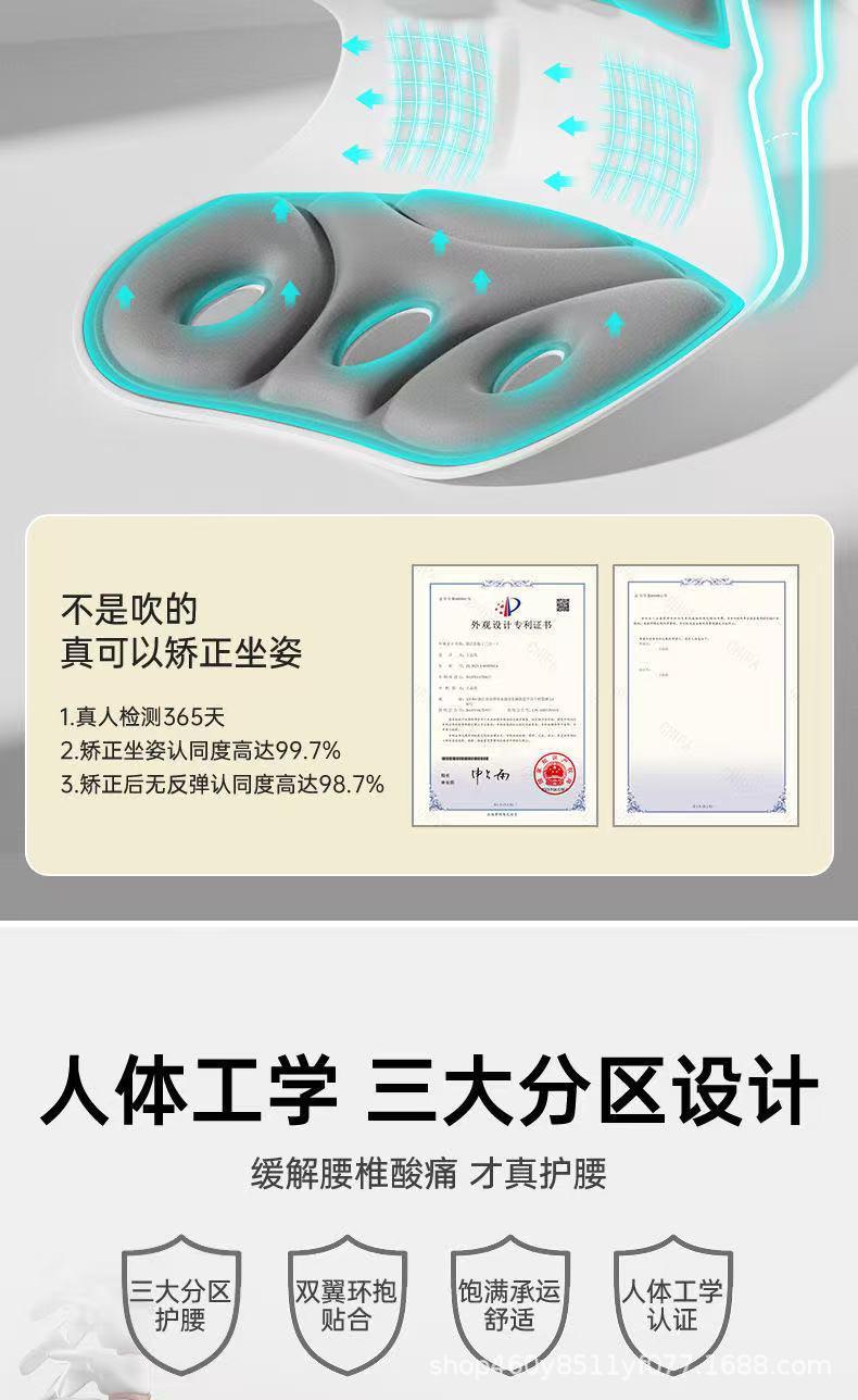 新款护腰坐垫椅人体工学办公室学生久坐不累神器美臀背垫坐姿矫正