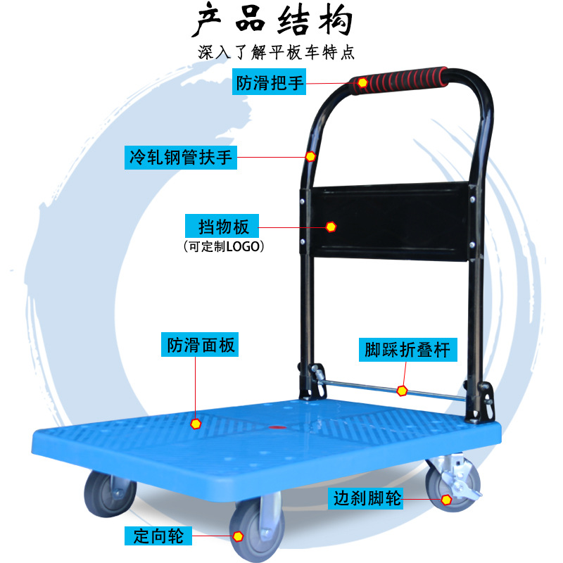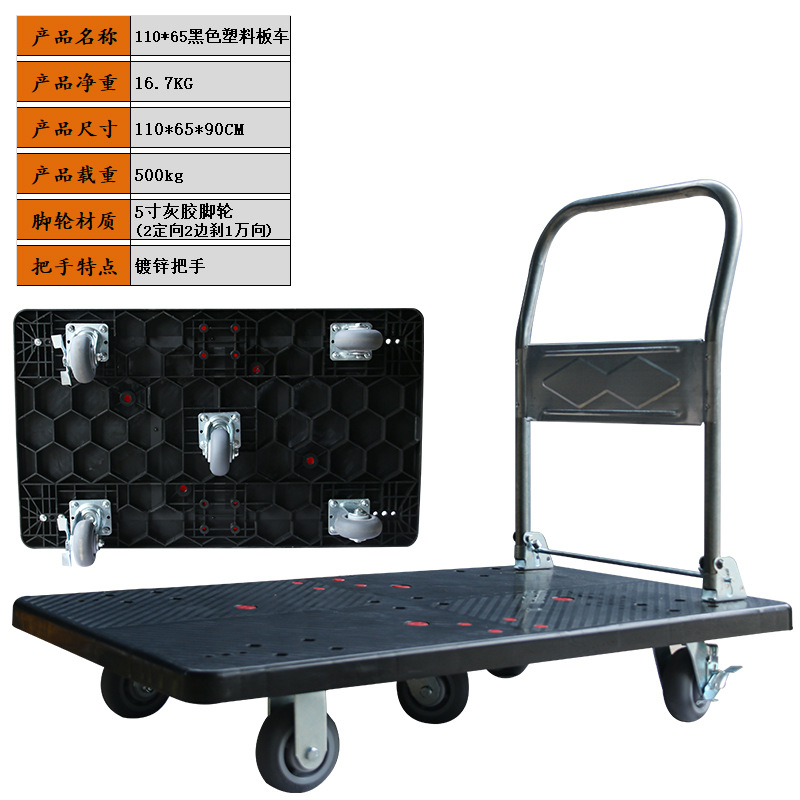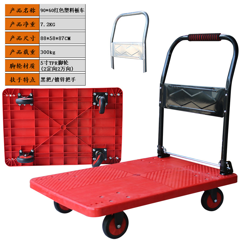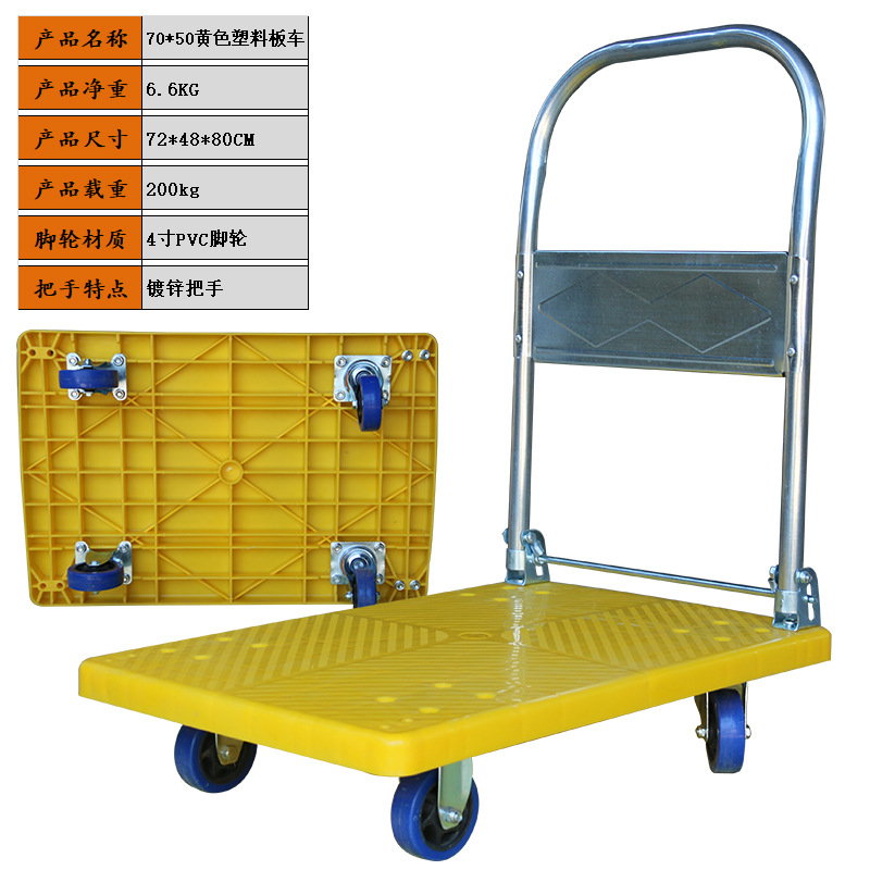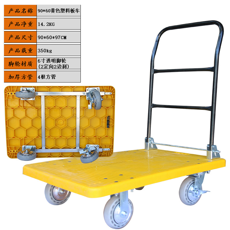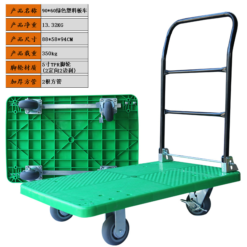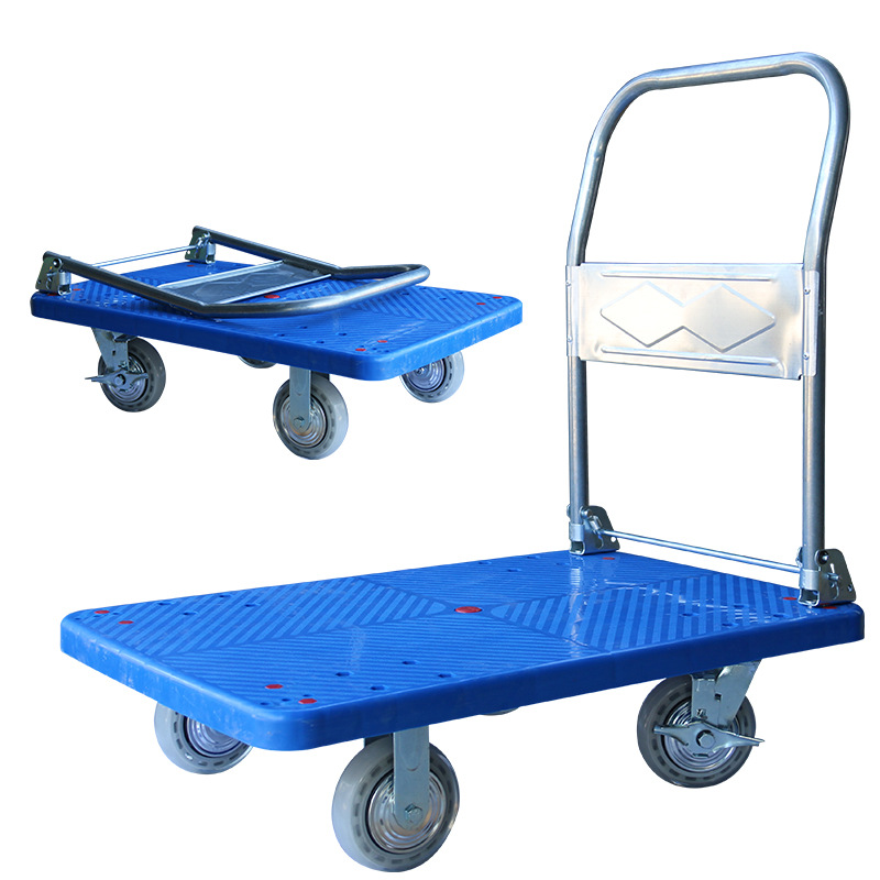 静音手推车物流搬运车拉货塑料加厚手拉车仓库小推车折叠平板车
