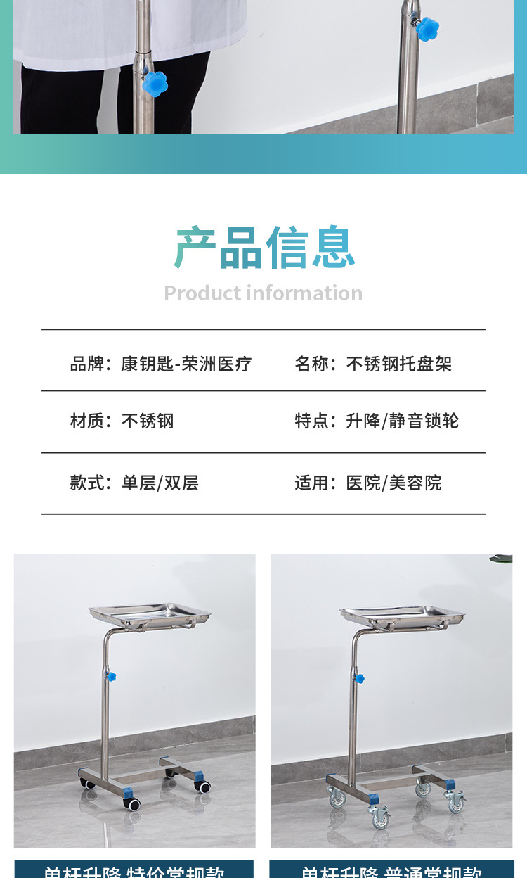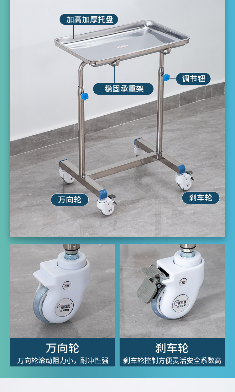 医院托盘架推车 牙科仪器置物可升降手术工具器械医院托盘架推车