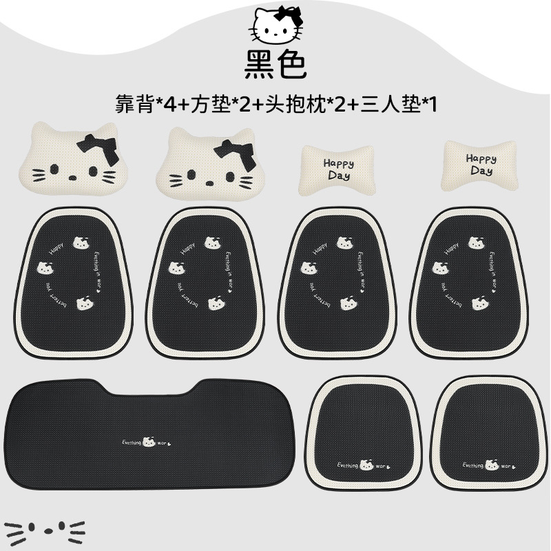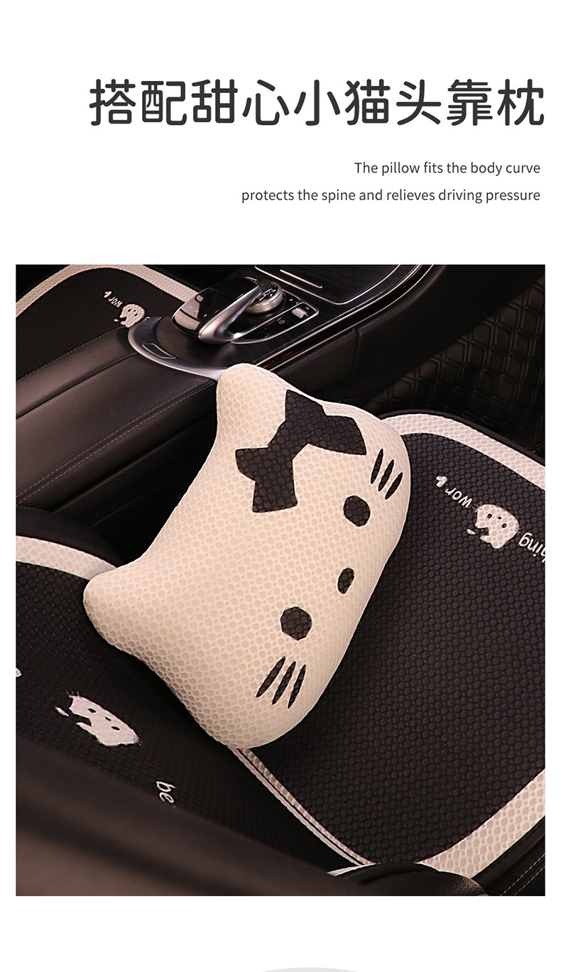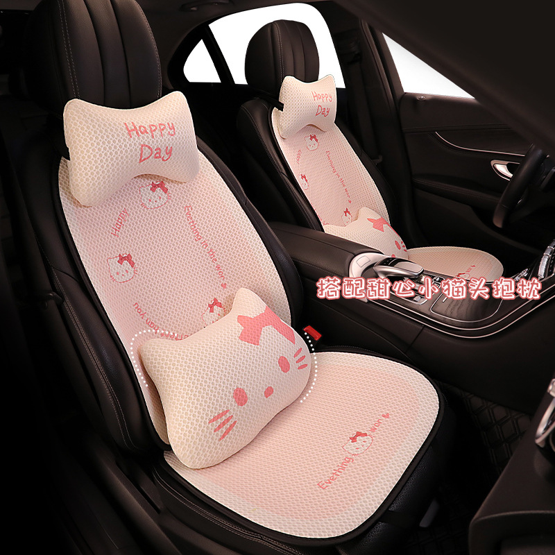 汽车坐垫四季通用夏季透气座垫可爱卡通冰丝单片垫子车座后排座垫