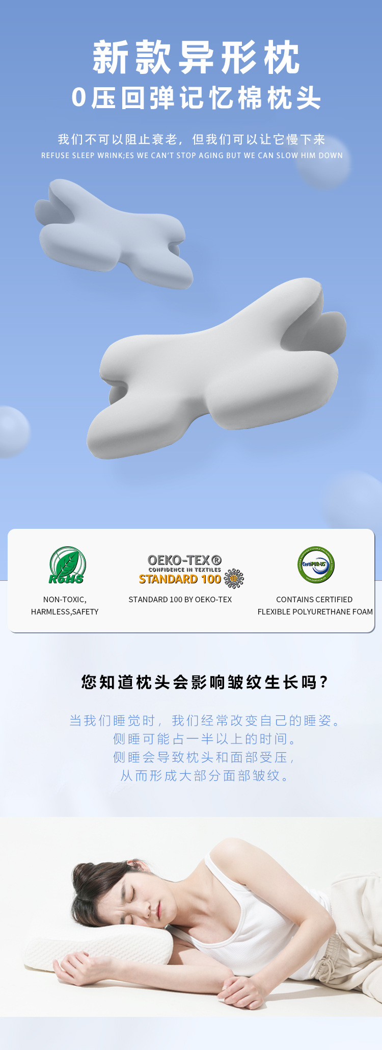 跨境爆款颈椎枕异形枕助睡眠护颈枕家用侧睡枕头慢回弹记忆棉枕头