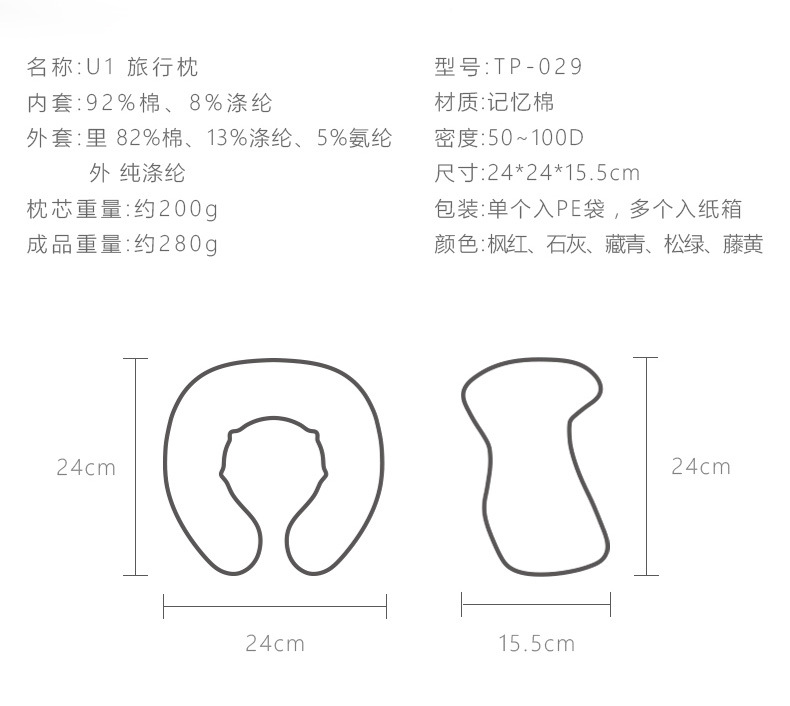 跨境u型枕轻便携带情侣旅行颈枕慢回弹透气承托护颈优质睡眠u形枕
