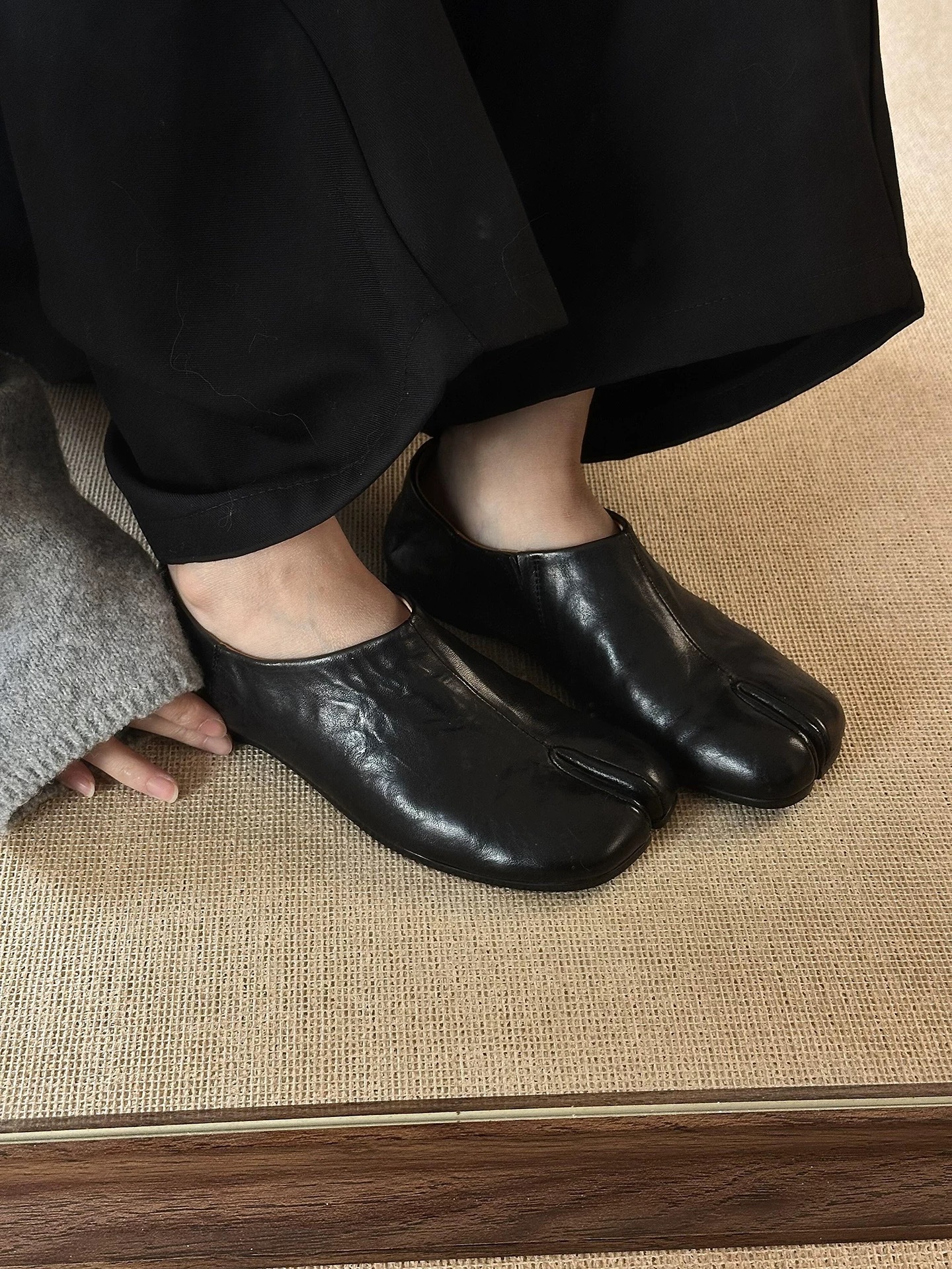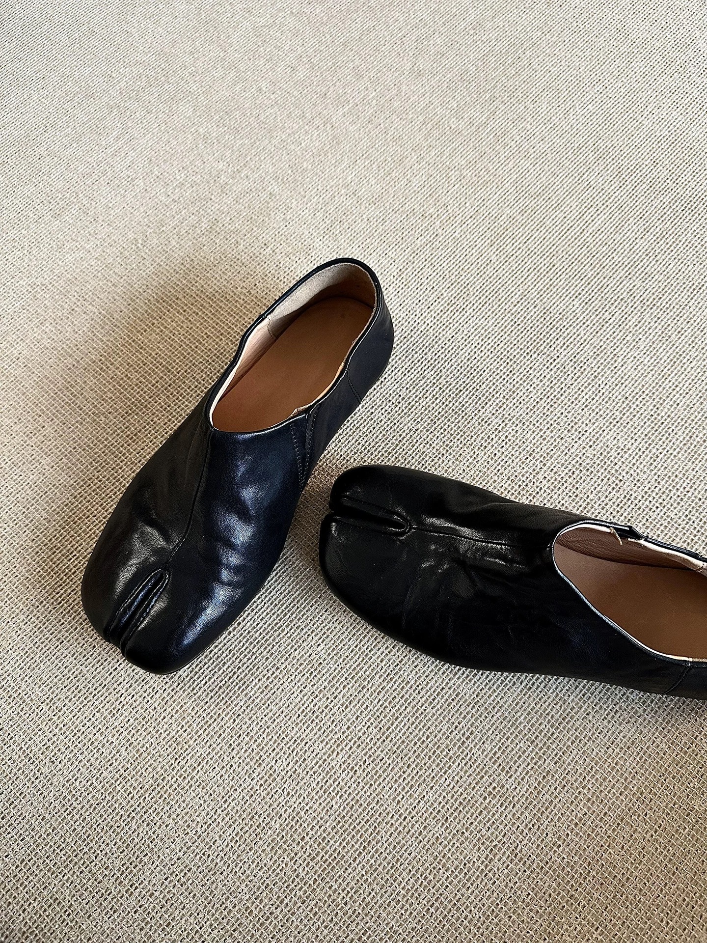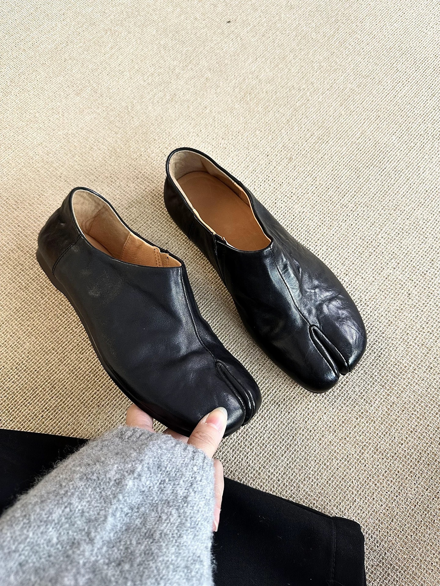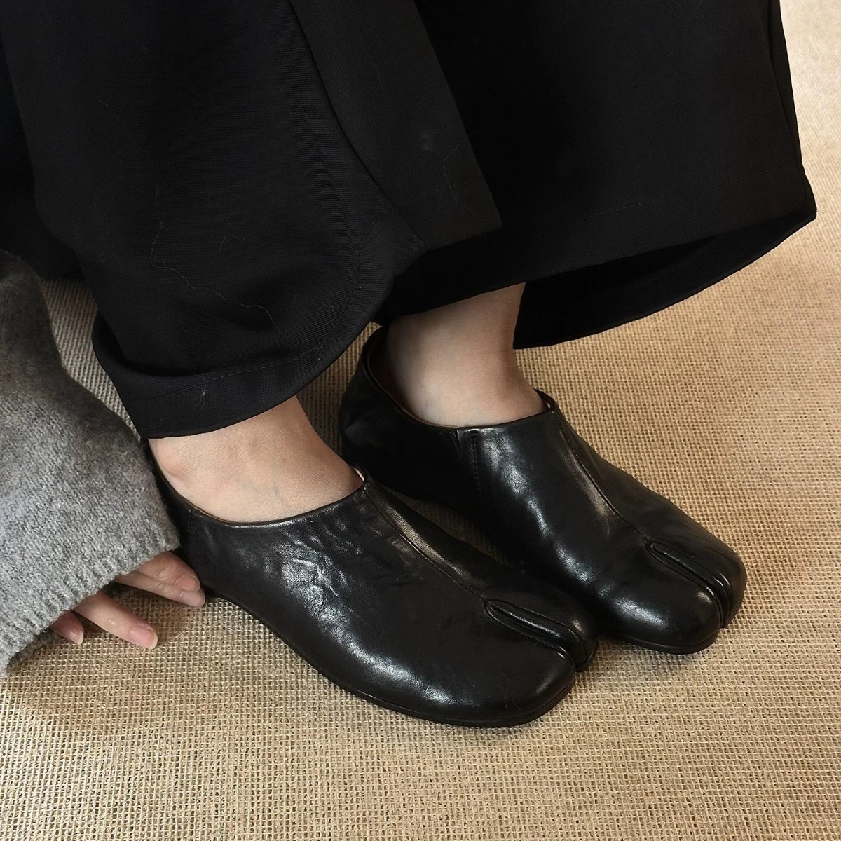 牛皮版~复古小众分趾猪蹄深口平底单鞋女2026春季百搭穆勒小皮鞋