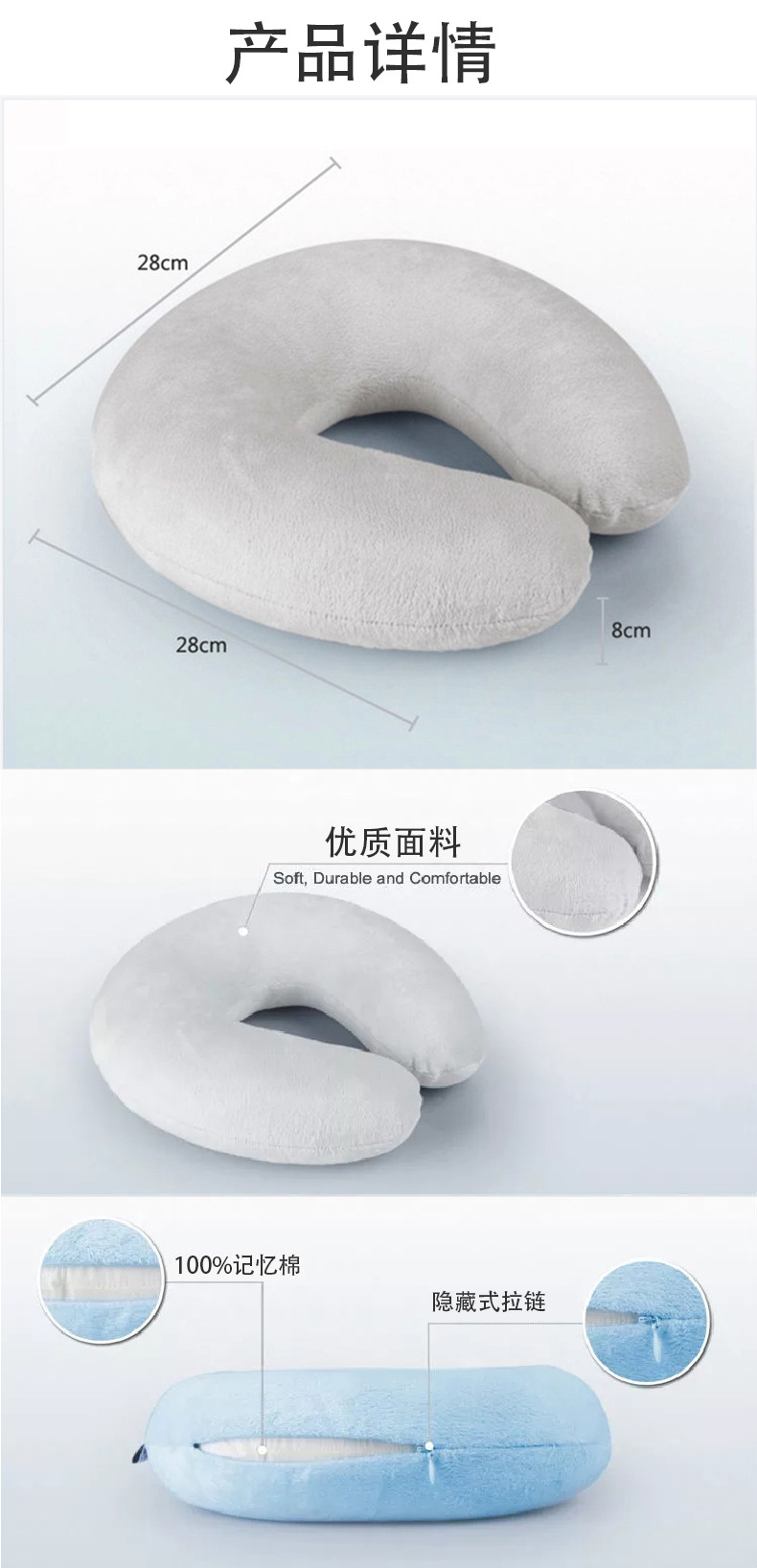 批发跨境亚马逊护颈u型枕 脖子颈椎枕头旅行飞机记忆棉便携u形枕