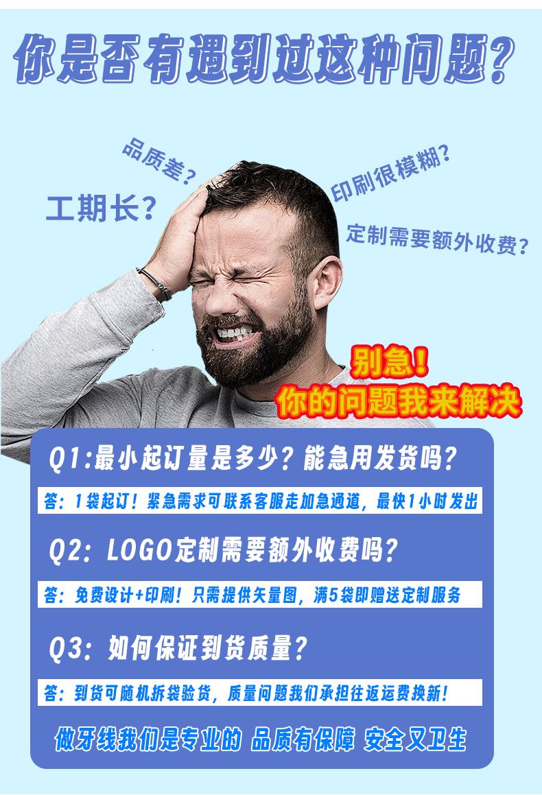 工厂直发500支装一次性牙线棒 代驾口腔诊所定制Logo独立包装牙线