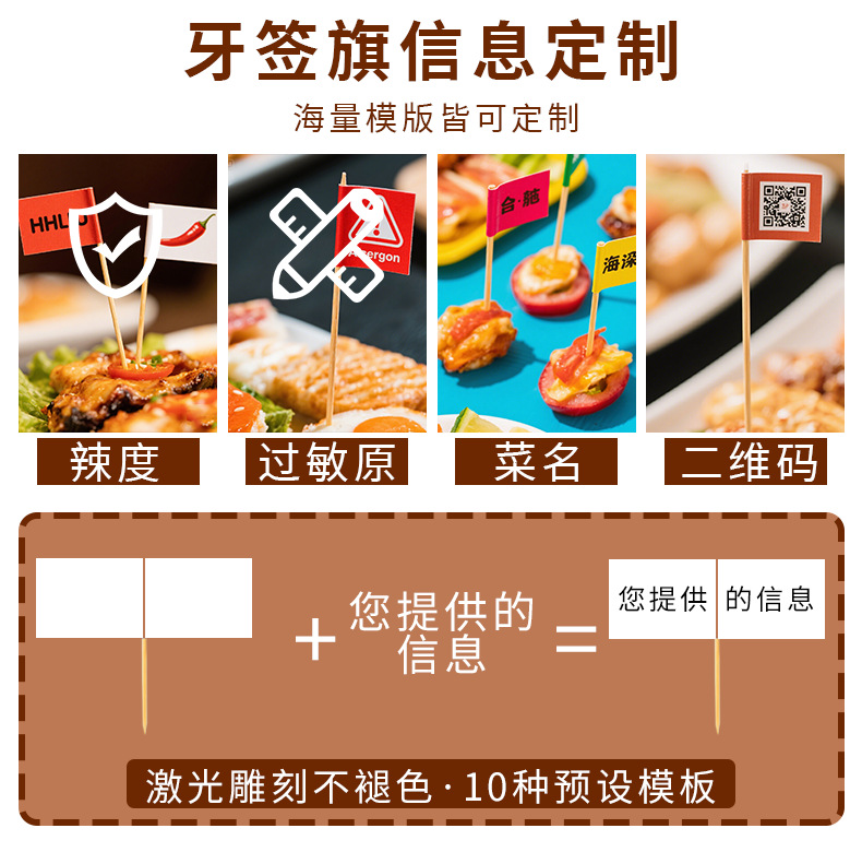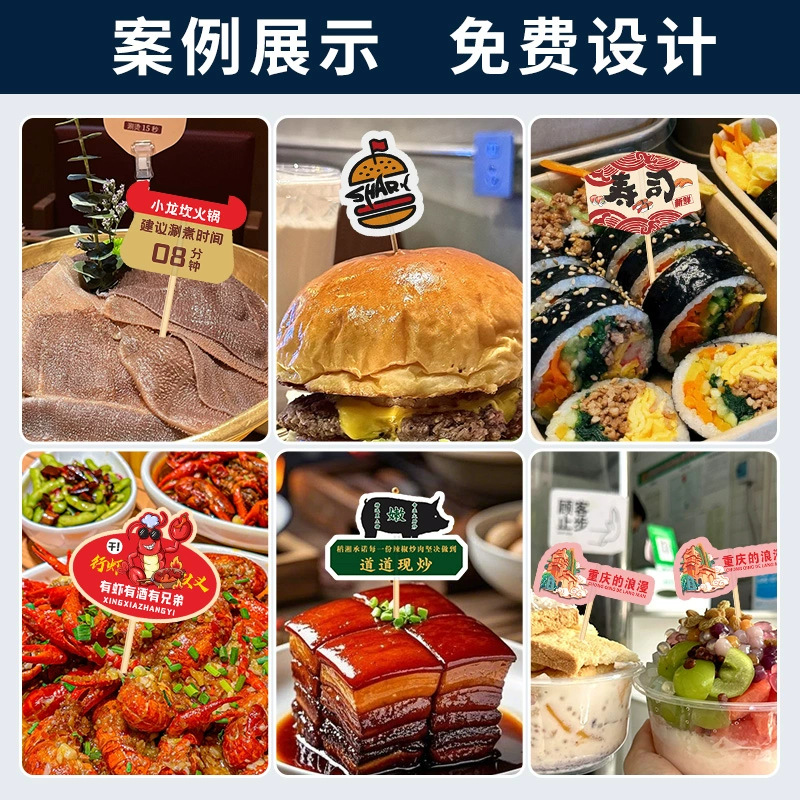 招牌菜牙签小插旗定制餐饮店logo装饰标签打印网红点菜品竹签旗子