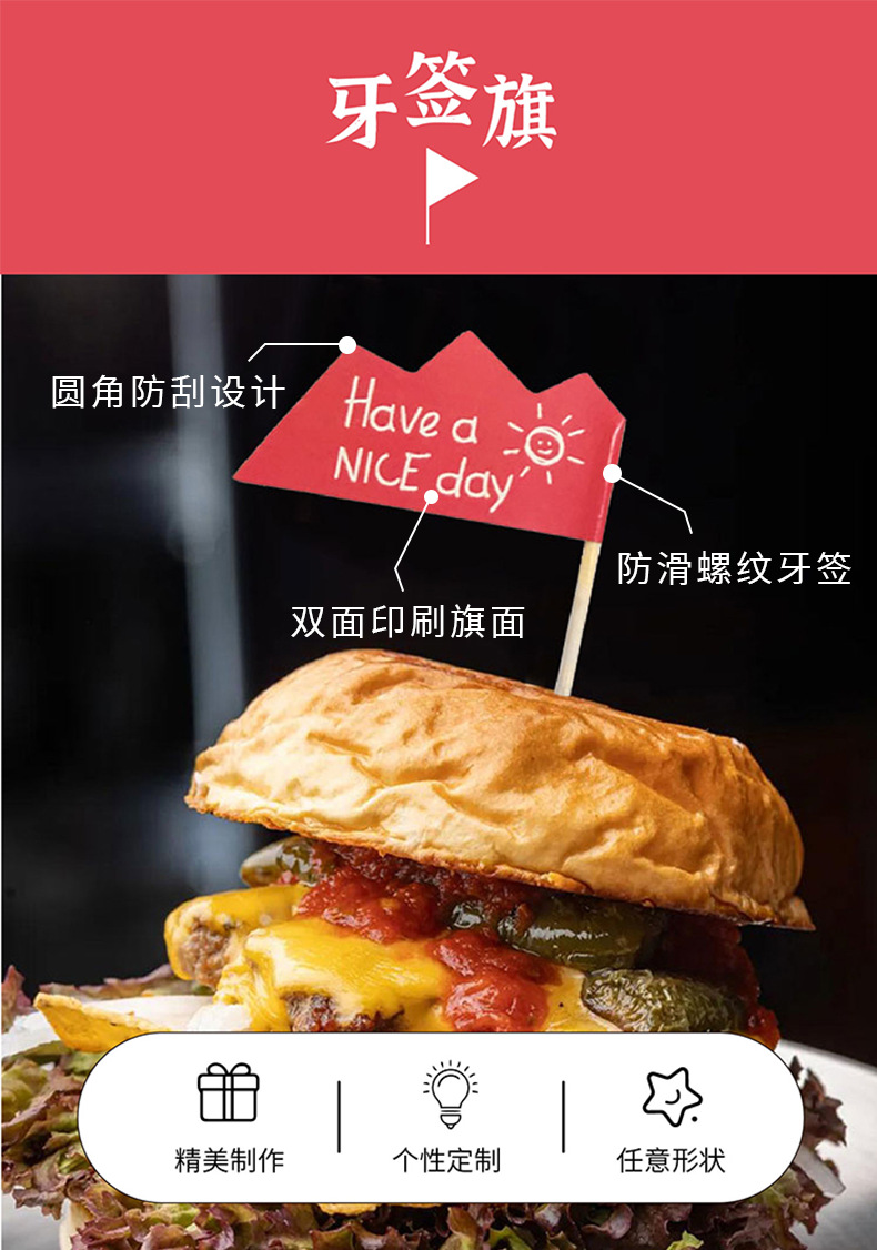 | 【汉堡牙签旗定制】 | USD $1.5 | 9999999 piece available |