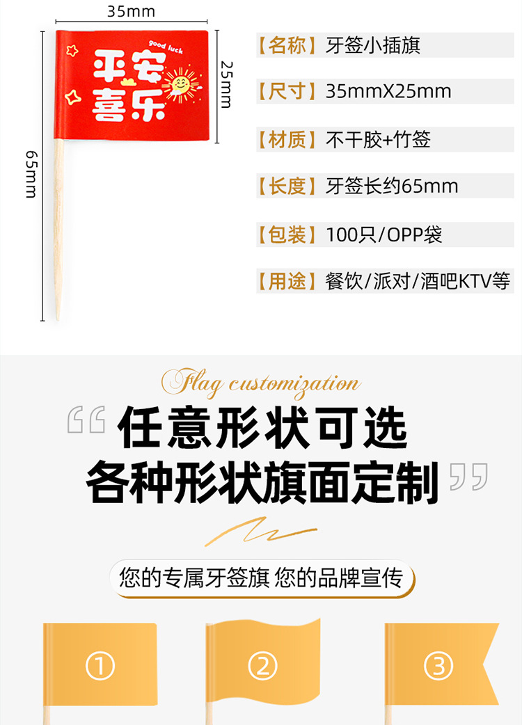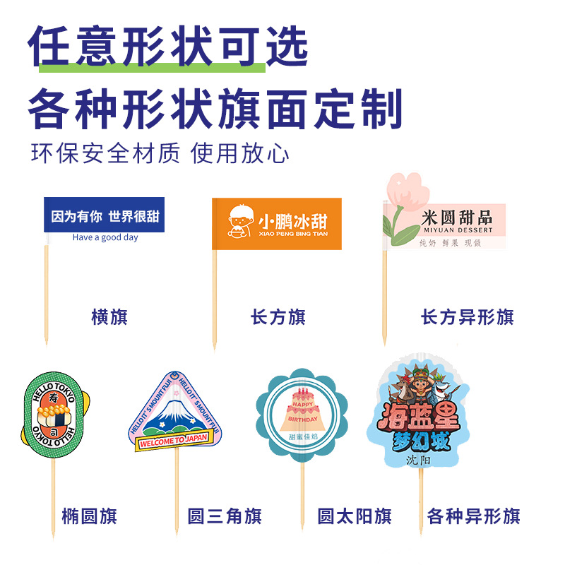 定制插旗专业厂家彩绘印刷logo小插旗一次性高端场所高质量牙签旗