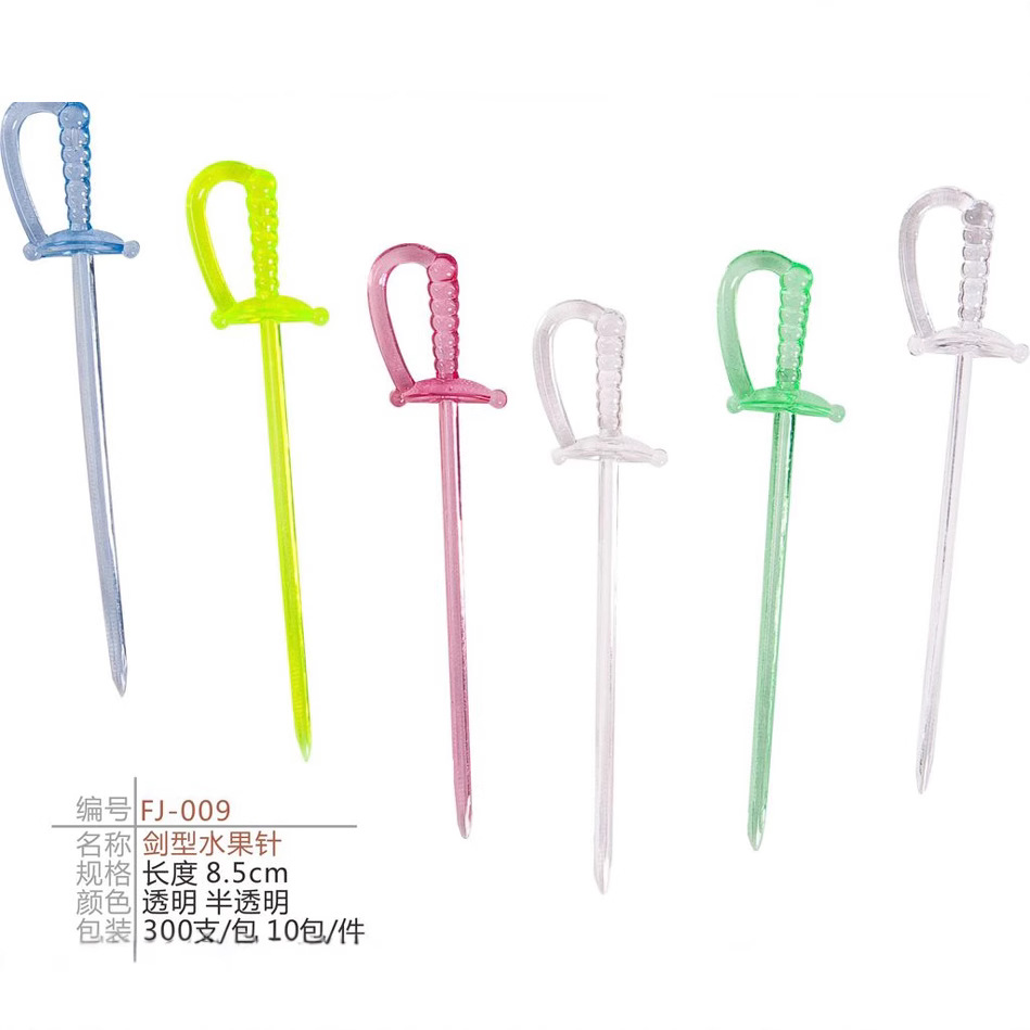工厂现货塑料透明彩色剑形水果针宝剑果签一次性水果叉蛋糕点心签