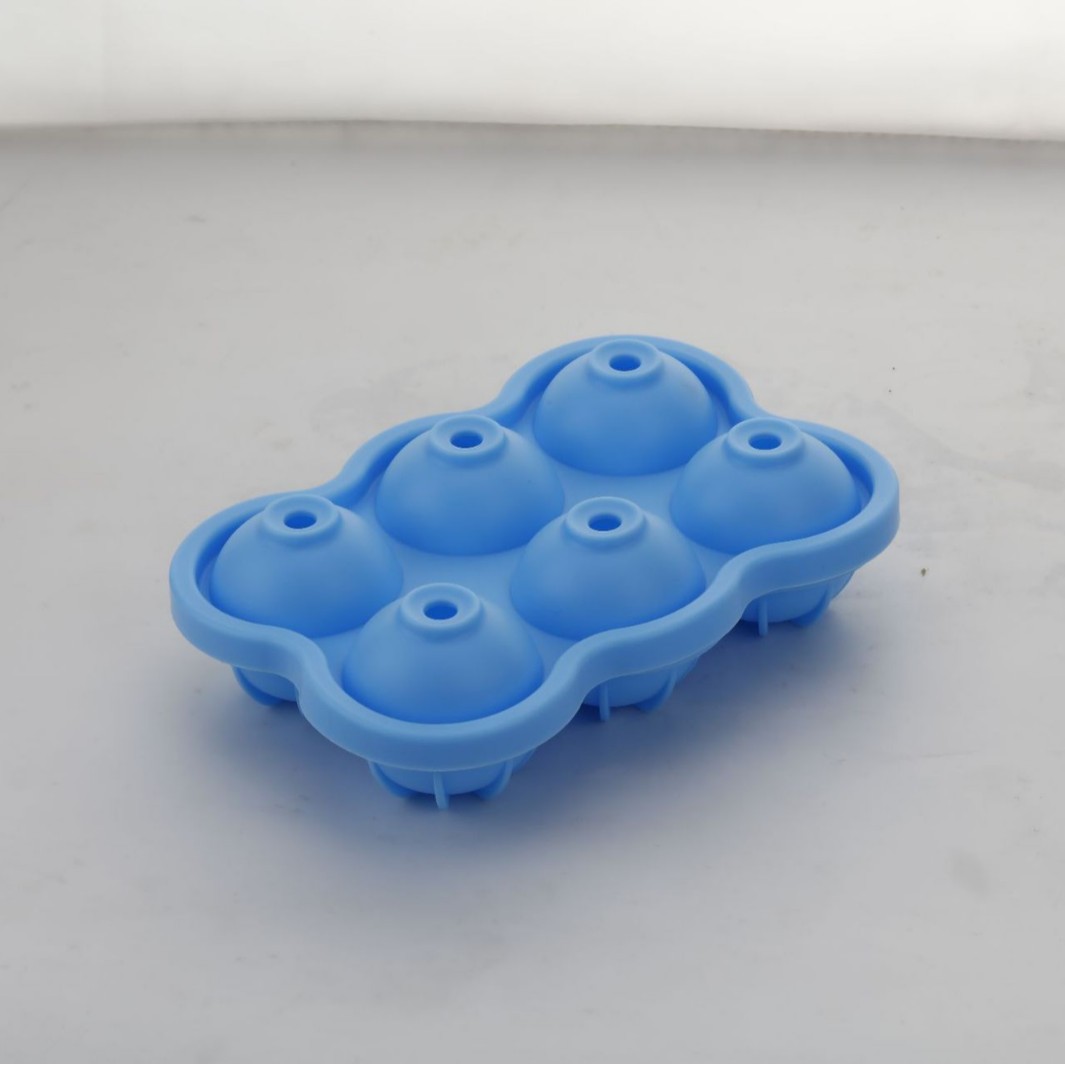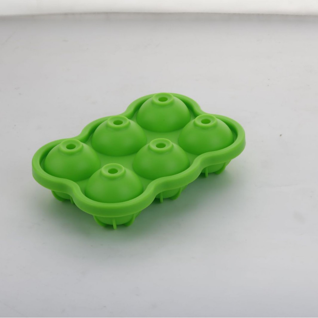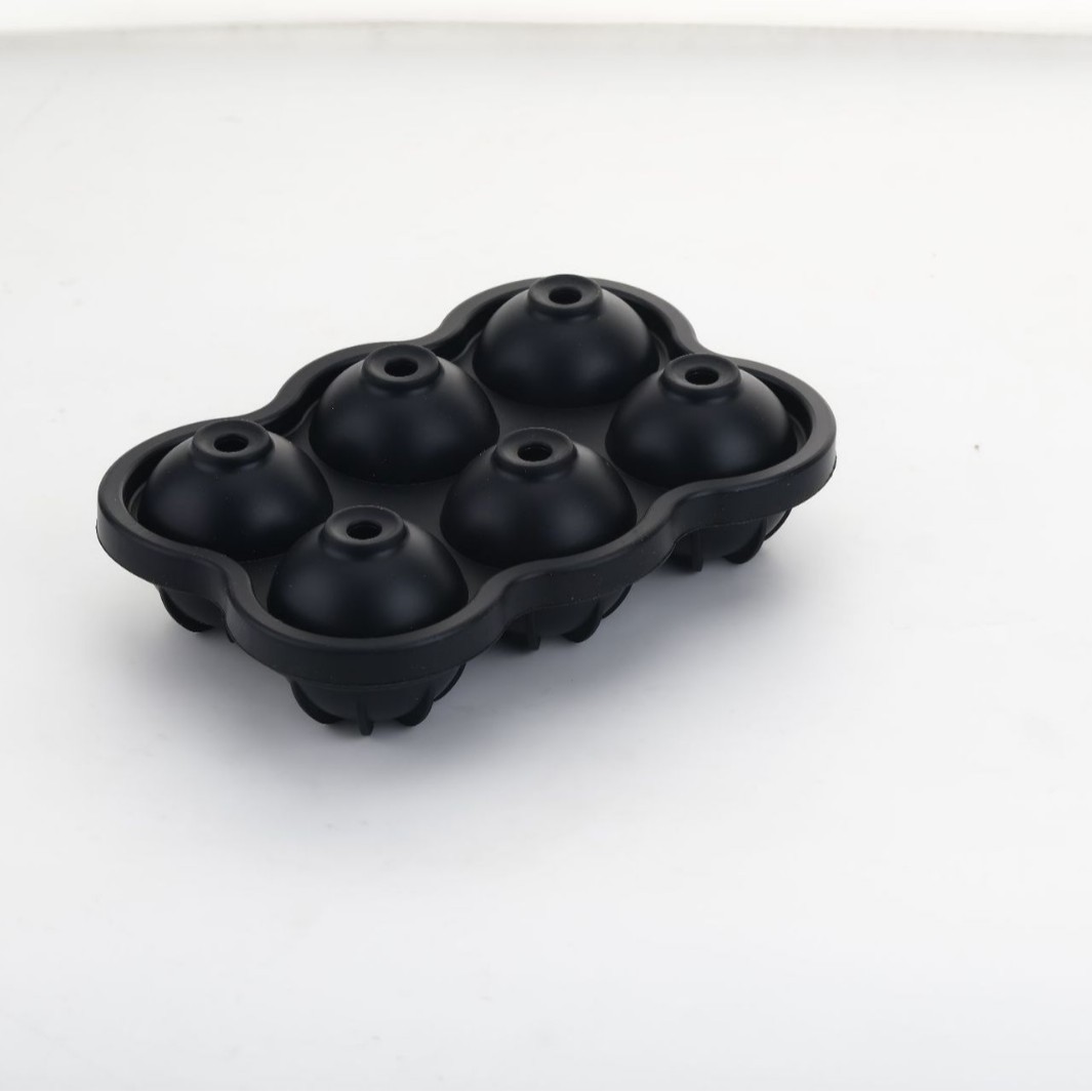 批发球形连体硅胶冰模 6孔硅胶冰球盒 家用DIY食品级圆形冰格模具