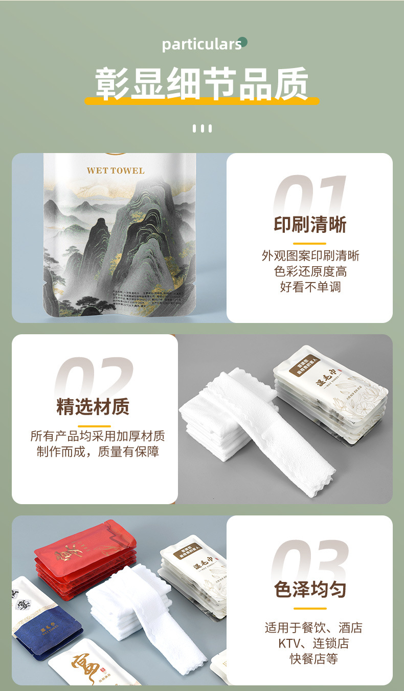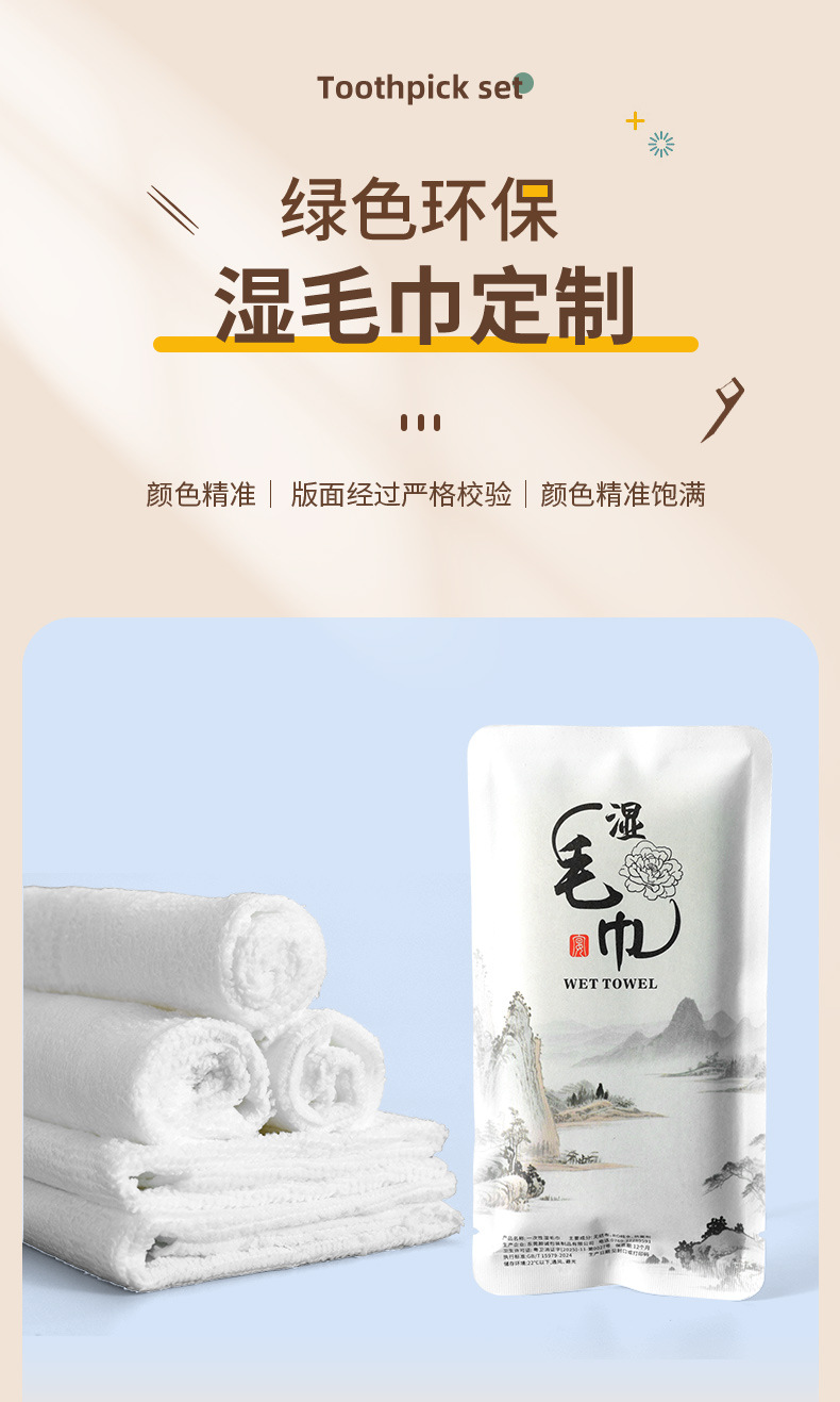星级酒店用一次性湿毛巾会所宴席通用饭店湿毛巾印刷高档湿毛巾
