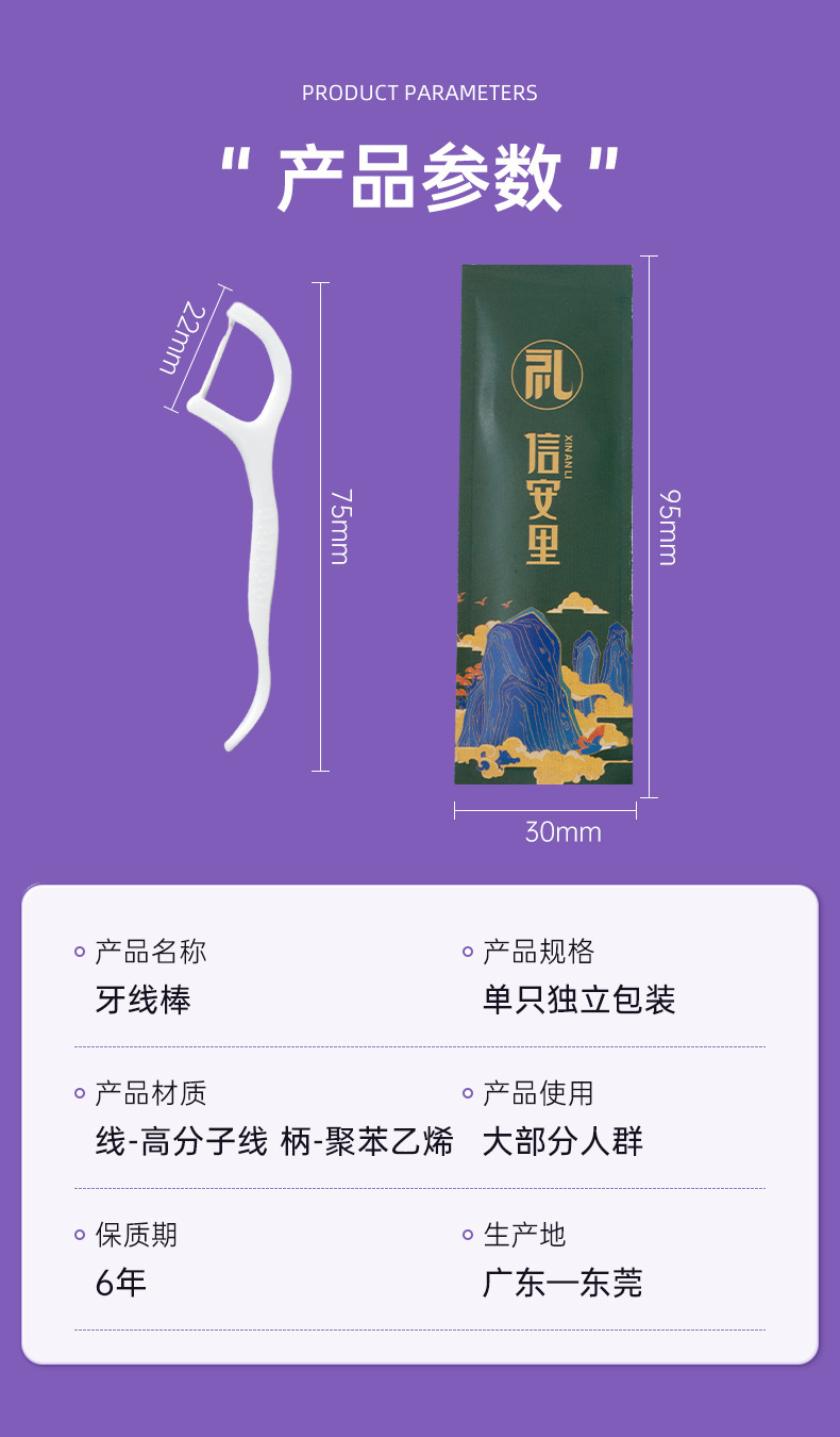 工厂批发单支牙线一次性独立包装四边封便携牙线棒餐饮酒店牙线