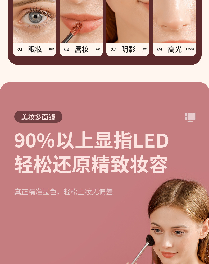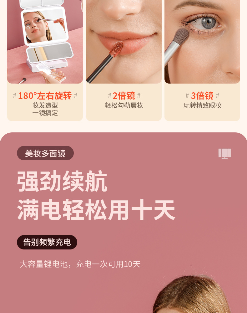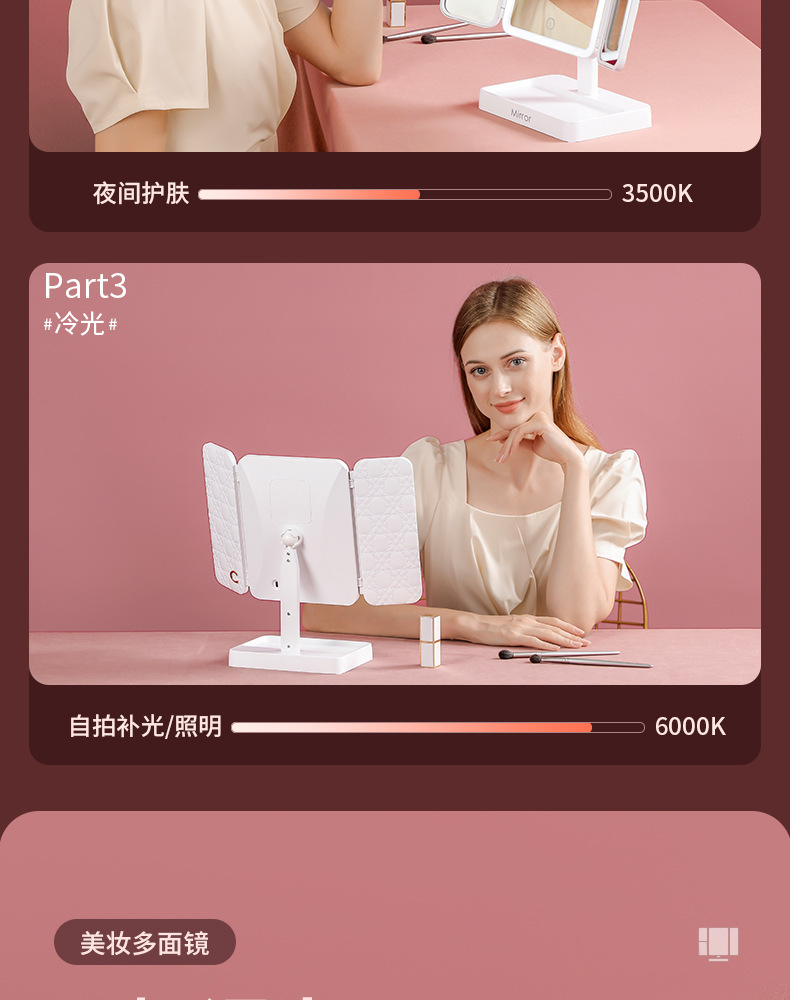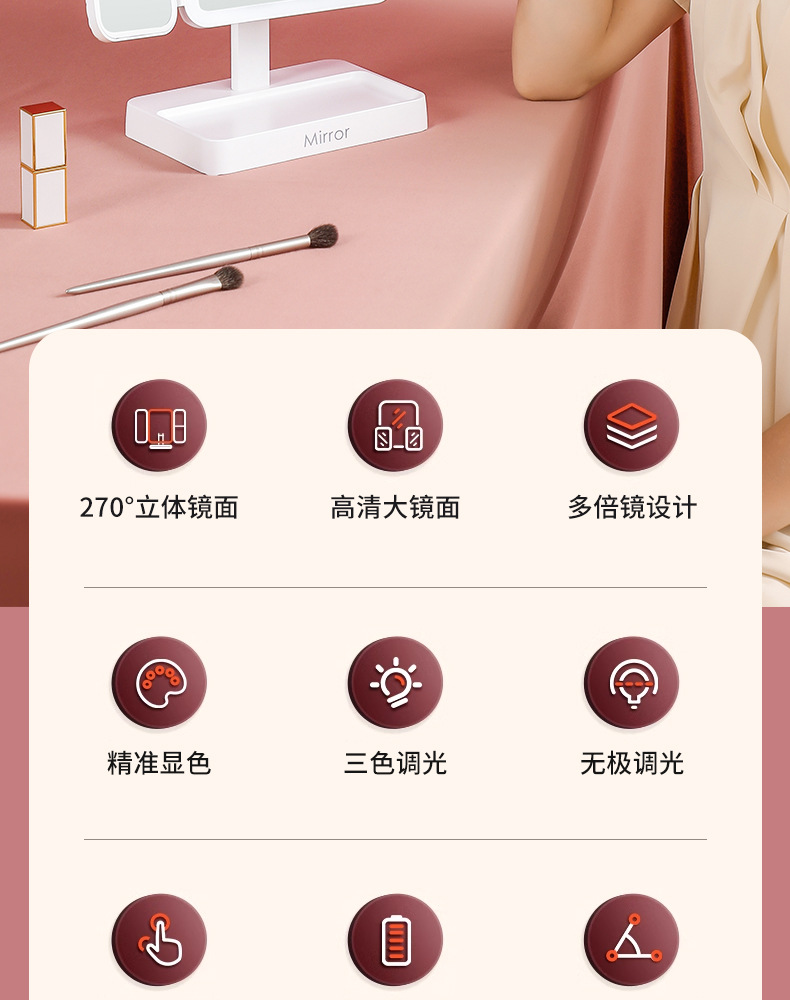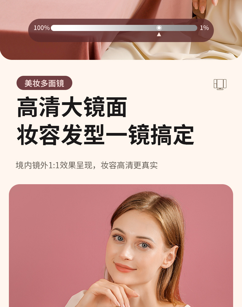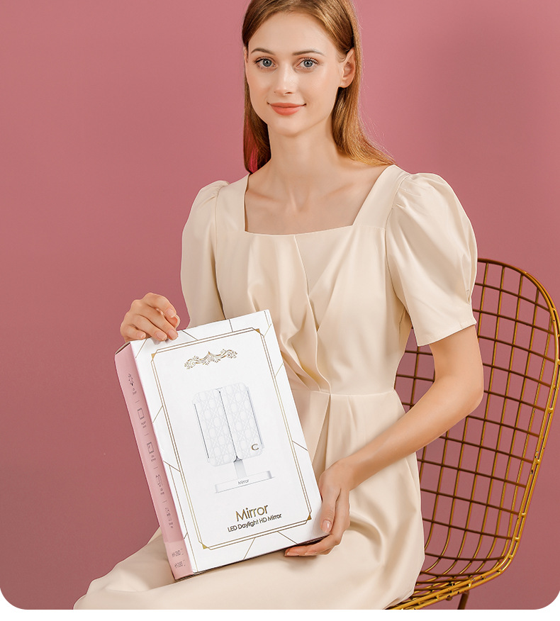 台式led化妆镜收纳盒二合一体贝壳三面折叠梳妆镜可调节镜子跨境