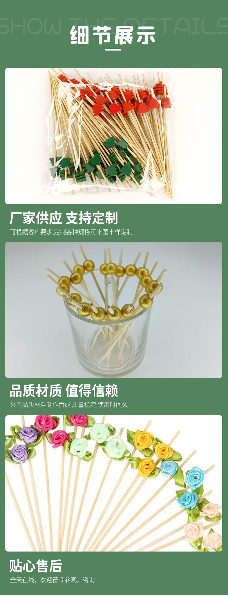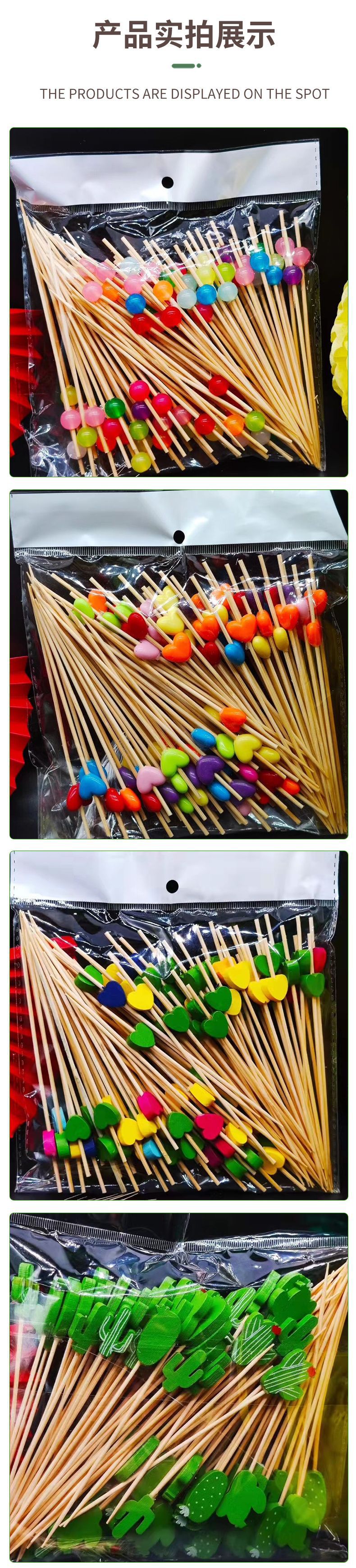 一次性竹签水果签鸡尾酒签 彩色创意竹签红黄蛋糕插子串签批发
