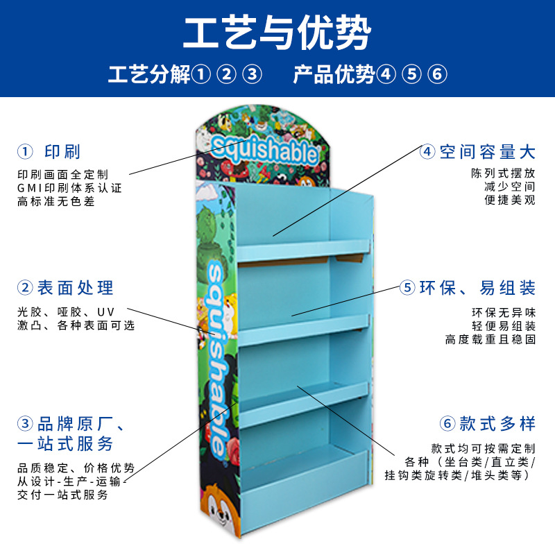 squishable外贸品牌定制展示架 多层储物三面广告展示瓦楞纸道具