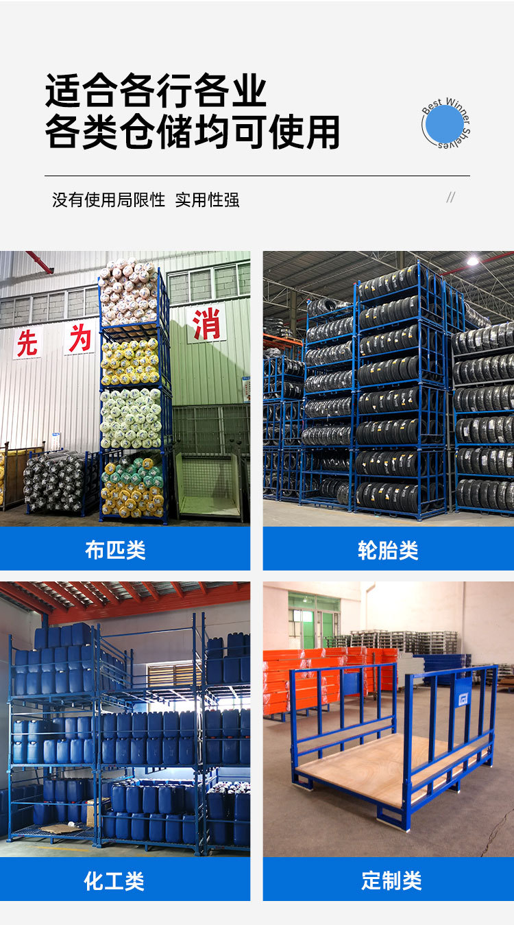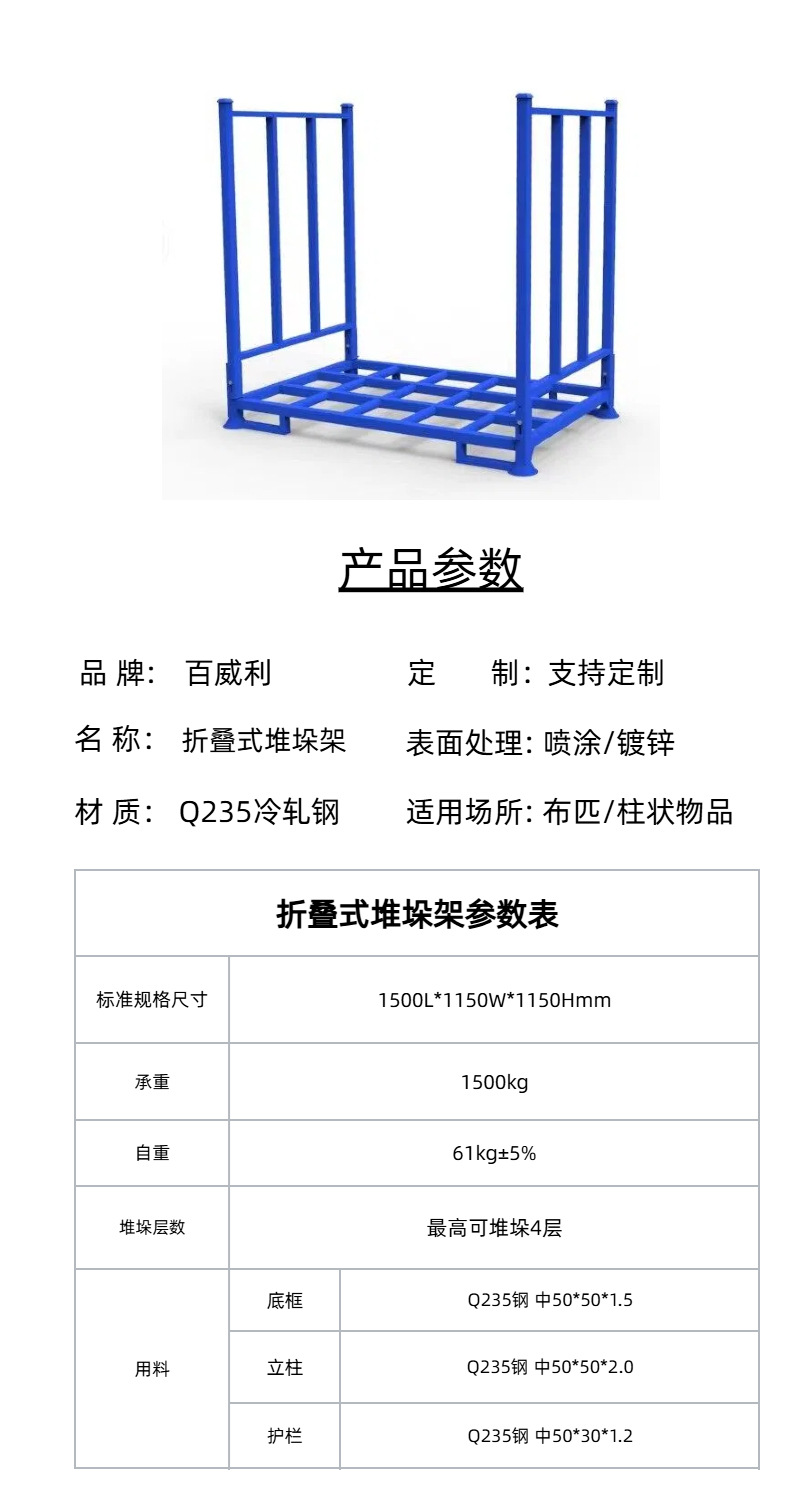 工厂非标折叠堆垛架布匹面料管材建材专用仓库多层堆高立柱货架