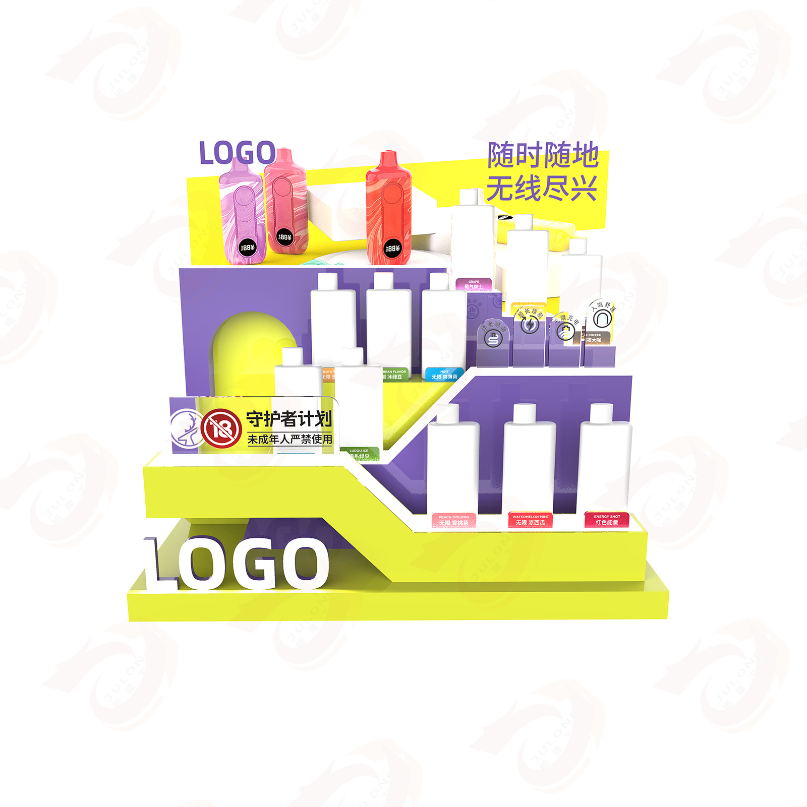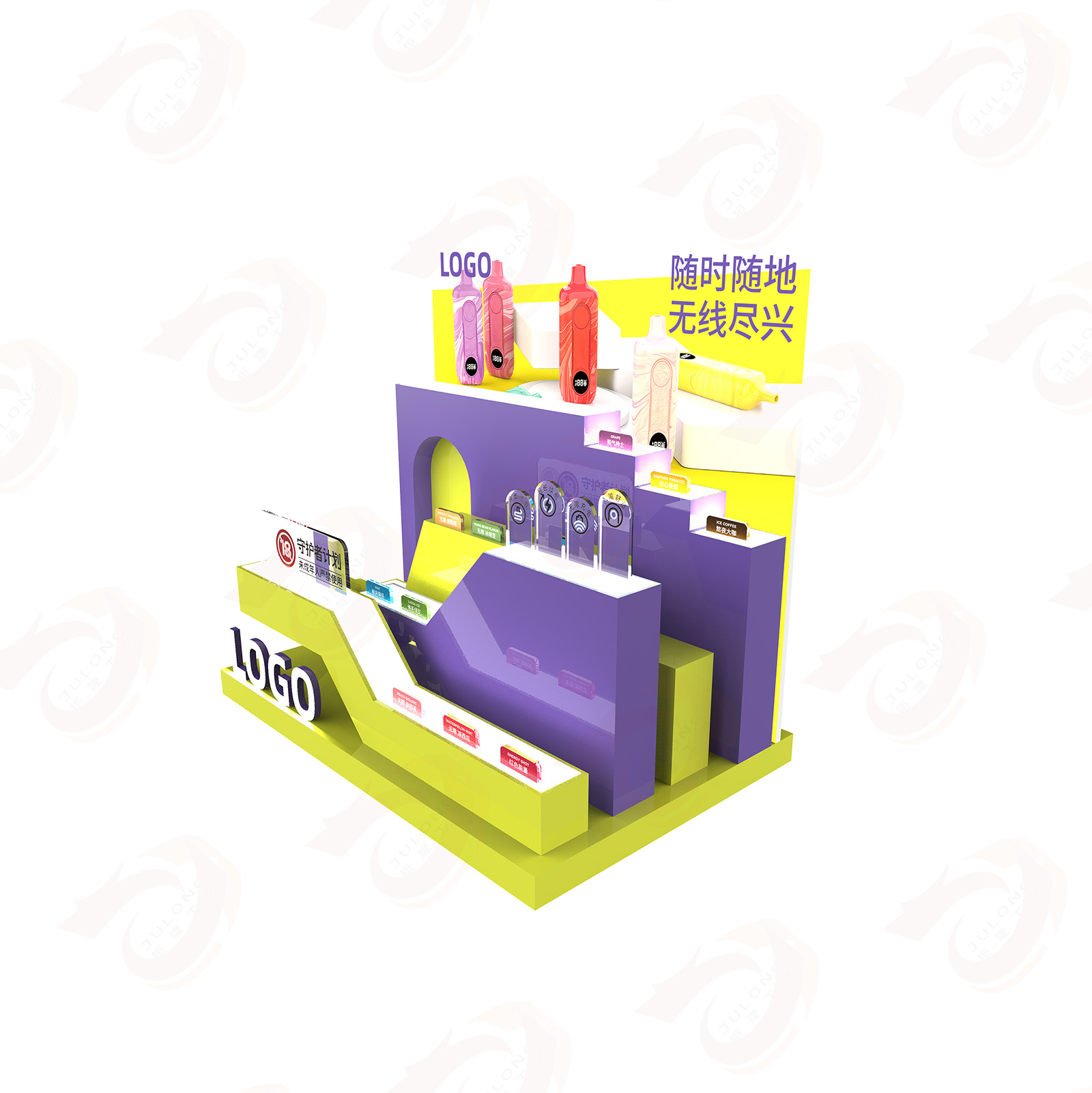 跨境定制亚克力展示架雾化器发光雪弗板台上架商超促销纸质陈列架