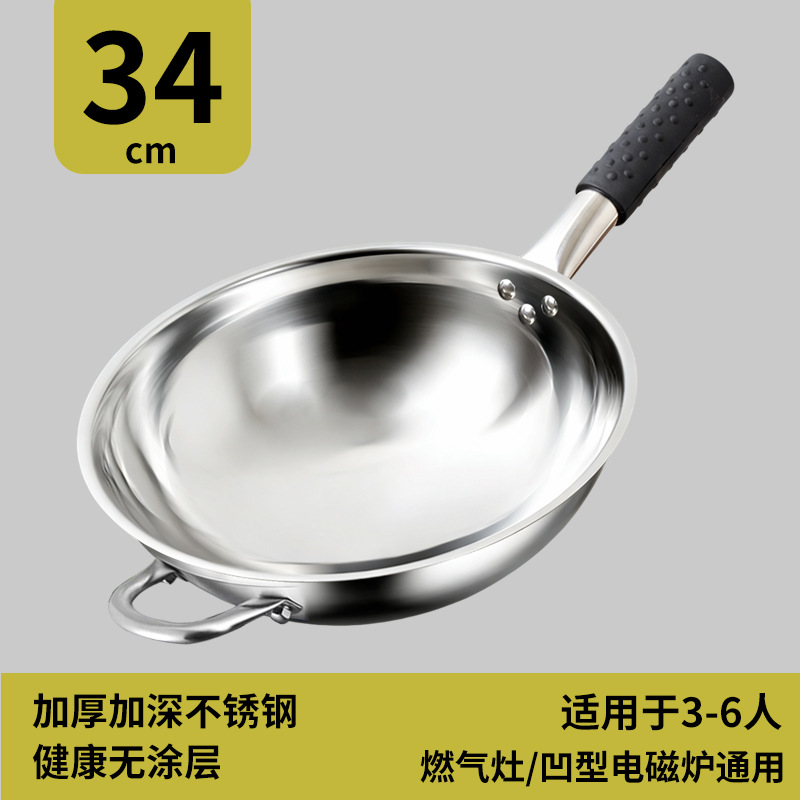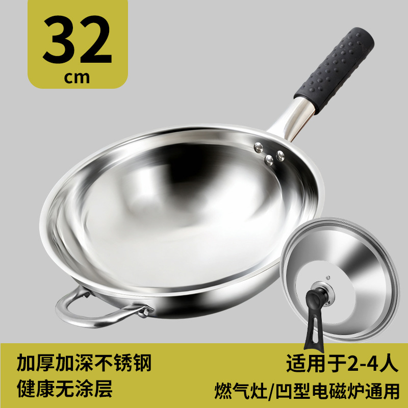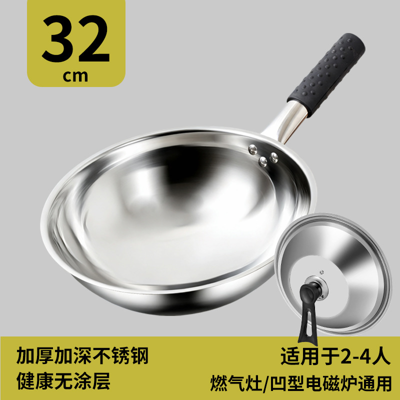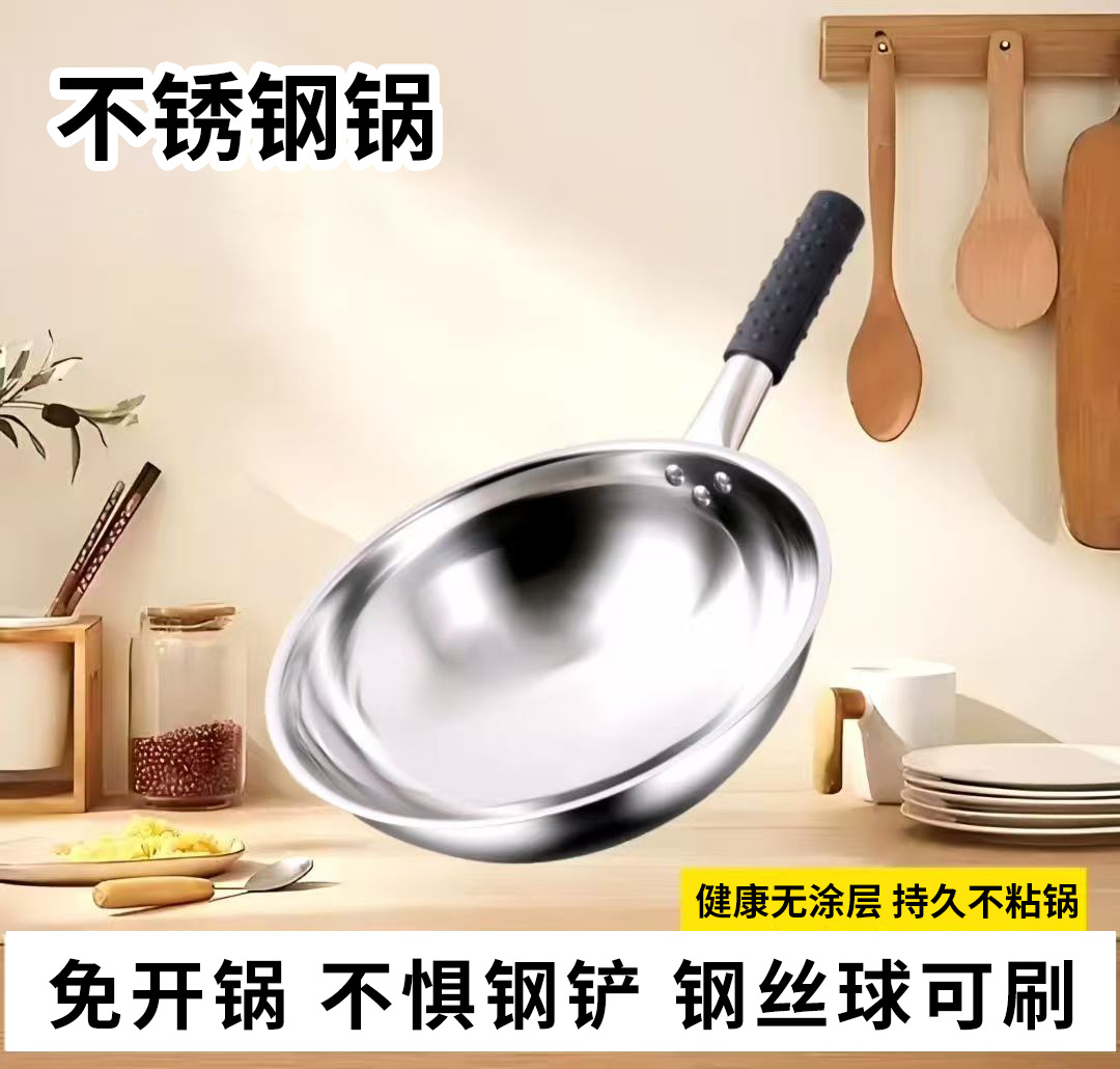 瑞安传家锅同款不锈钢炒锅不粘锅家用燃气灶凹面电磁炉专用炒菜锅