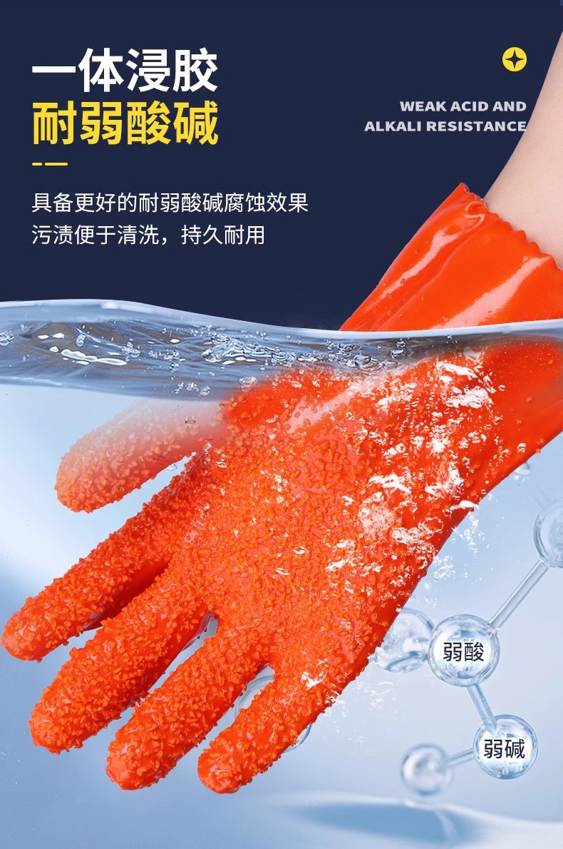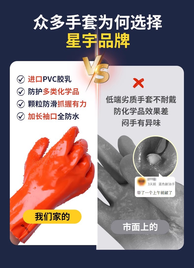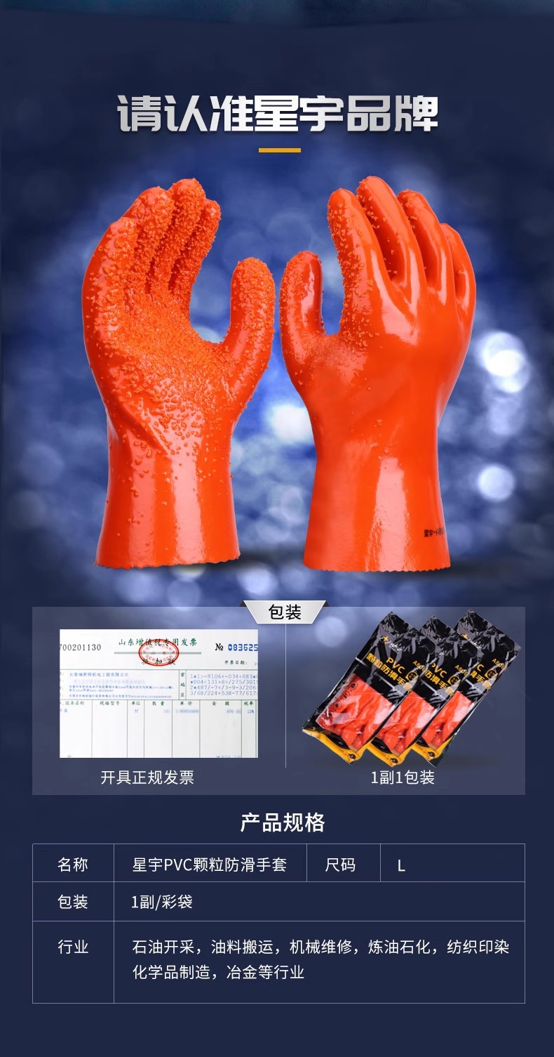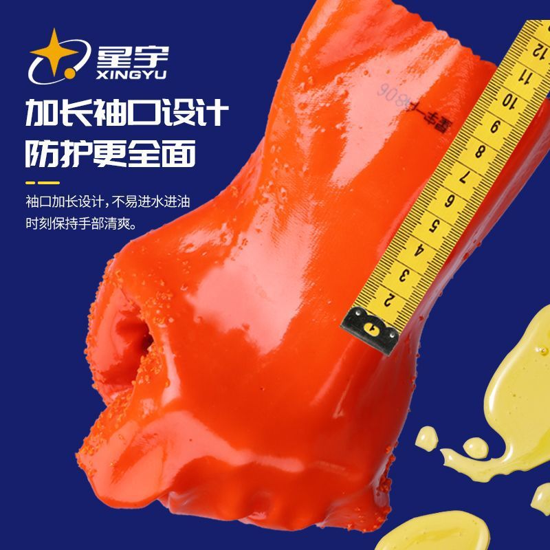星宇PVC手套全浸颗粒耐酸碱耐油耐磨防腐蚀防滑抓鱼劳保工作手套