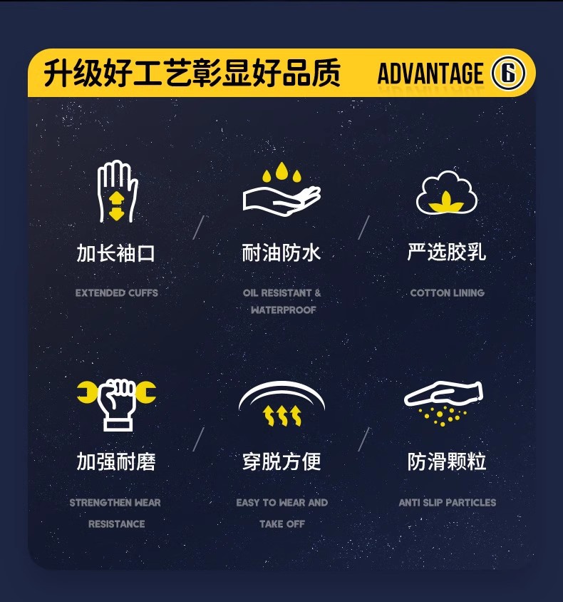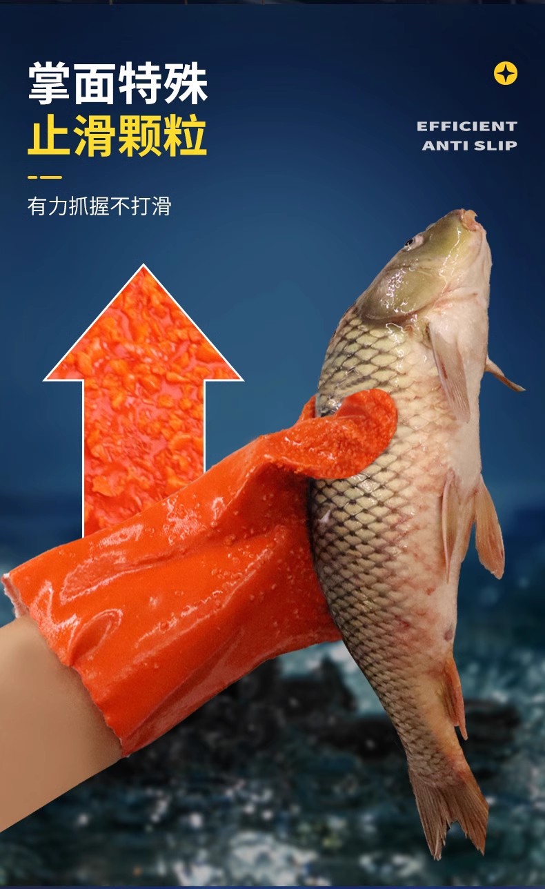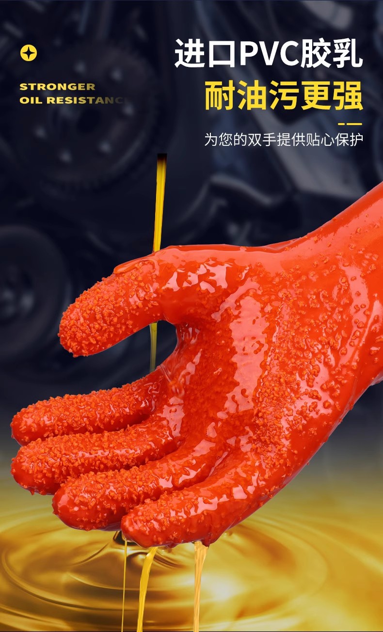 星宇PVC手套全浸颗粒耐酸碱耐油耐磨防腐蚀防滑抓鱼劳保工作手套