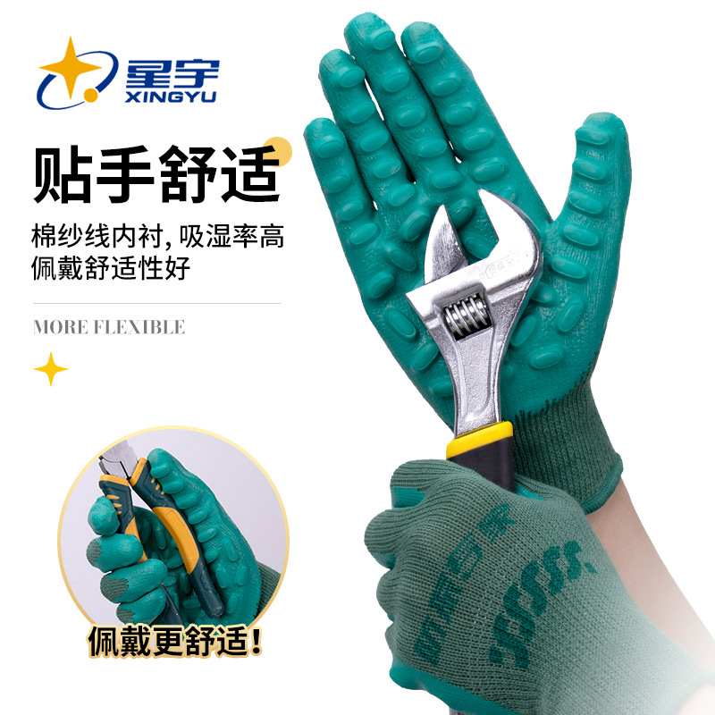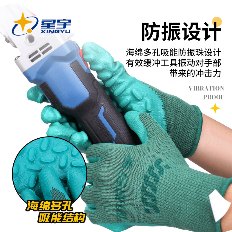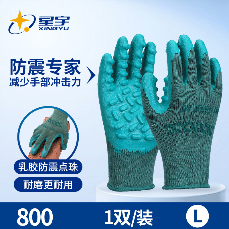 星宇劳保手套乳胶涂层#800防震专家手套防滑耐磨透气工作防护手套