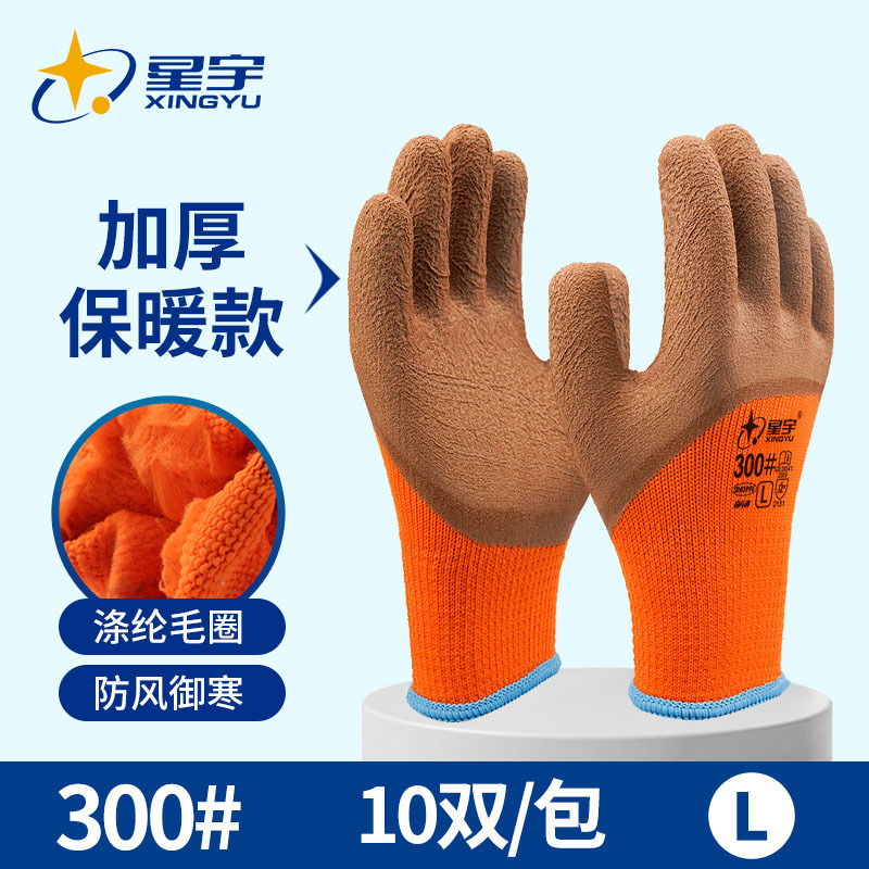 星宇劳保手套奋斗者300桔毛圈咖啡发泡半浸保暖防寒舒适耐磨防护
