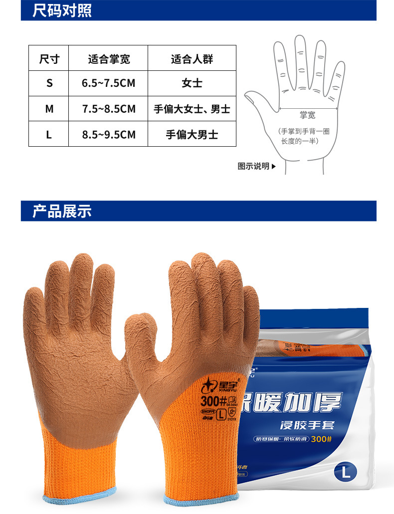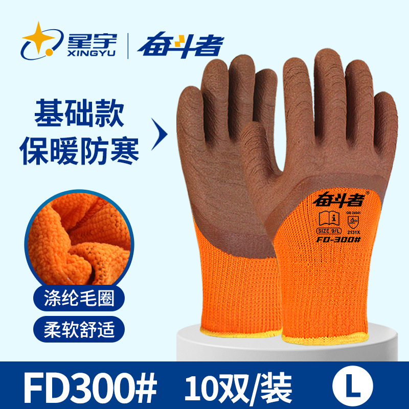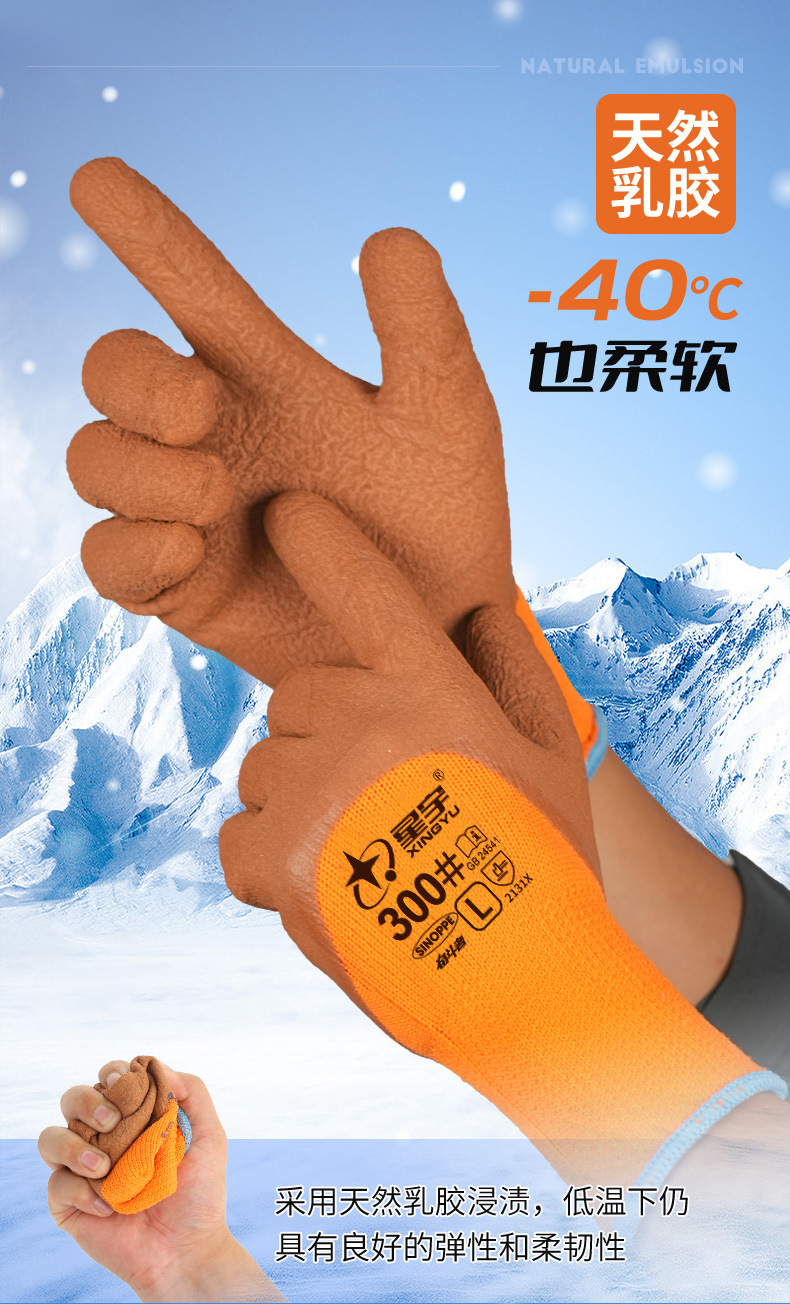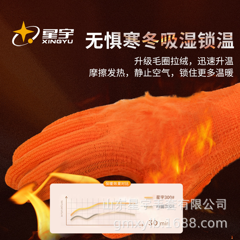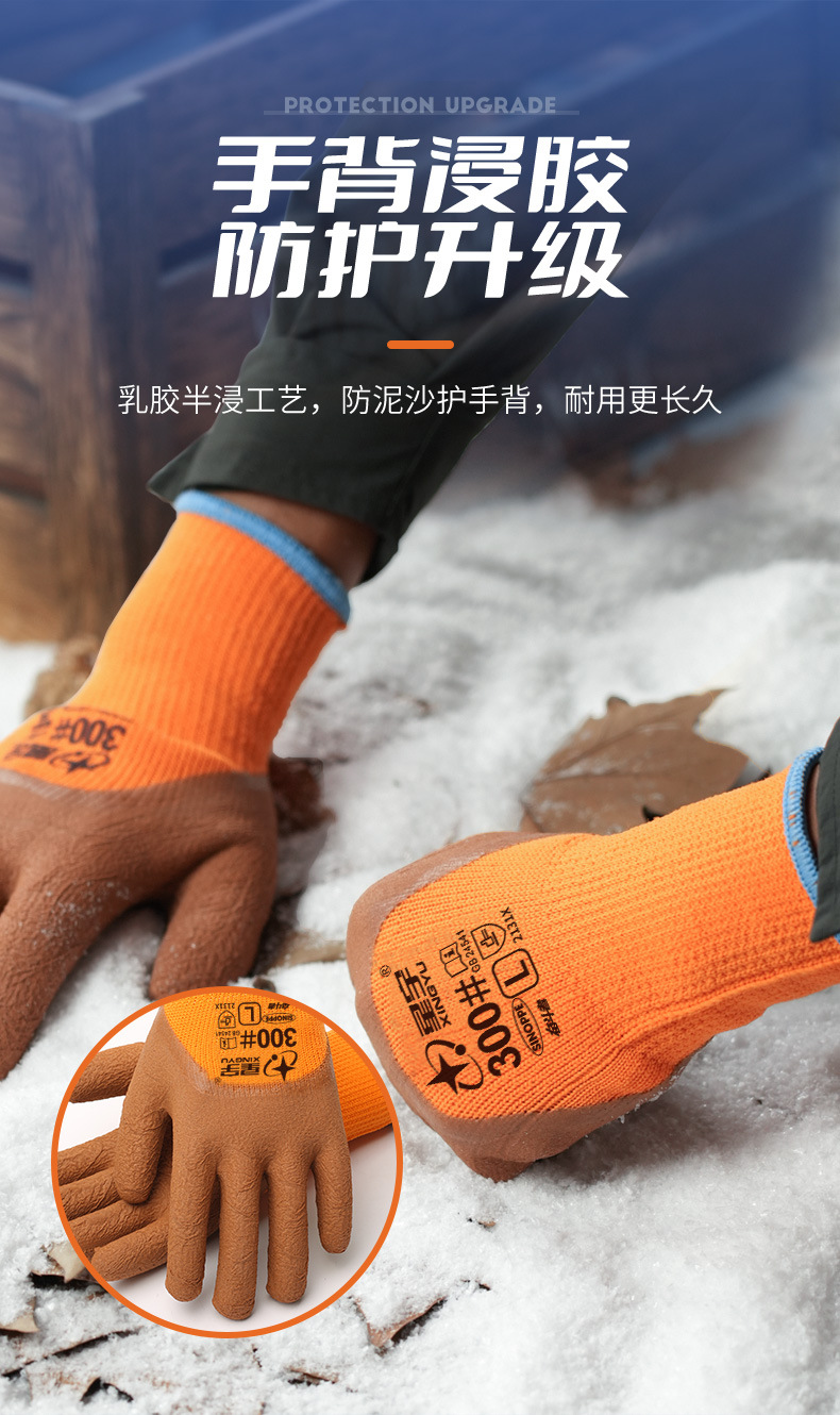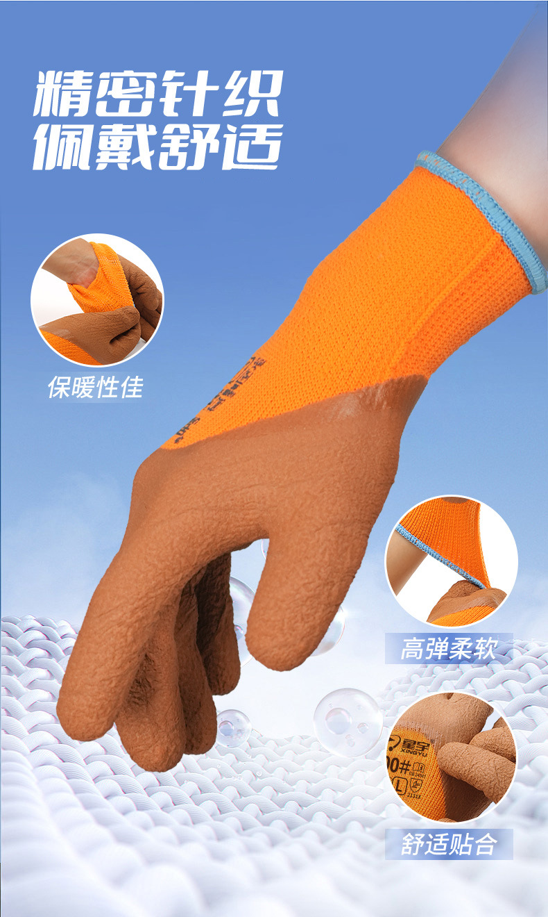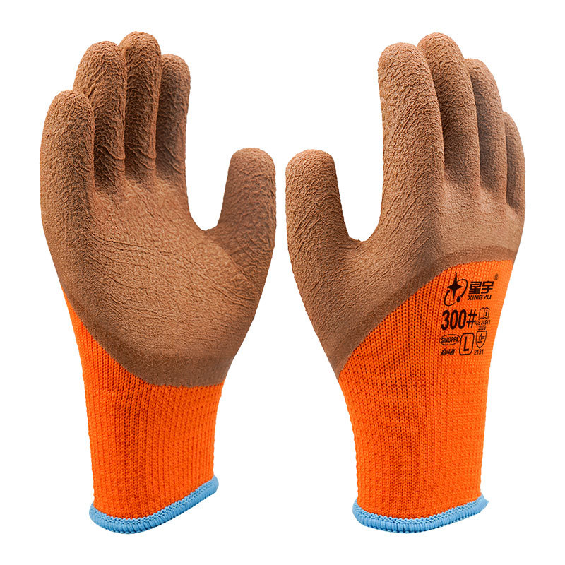 xingyu labor protection gloves striver 300 orange terry coffee foam half-immersed warm-keeping and cold-proof comfortable wear-resistant protective glove