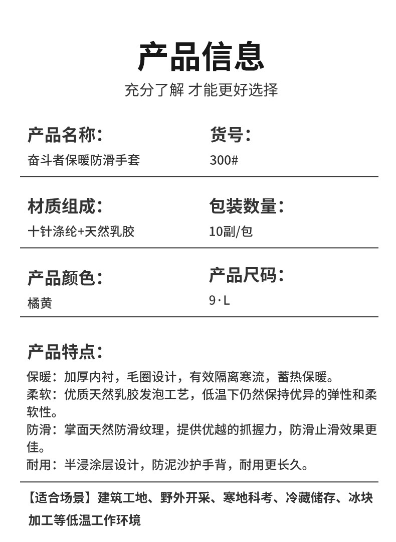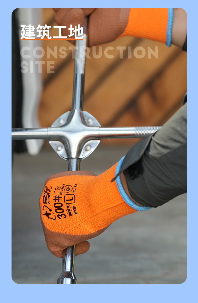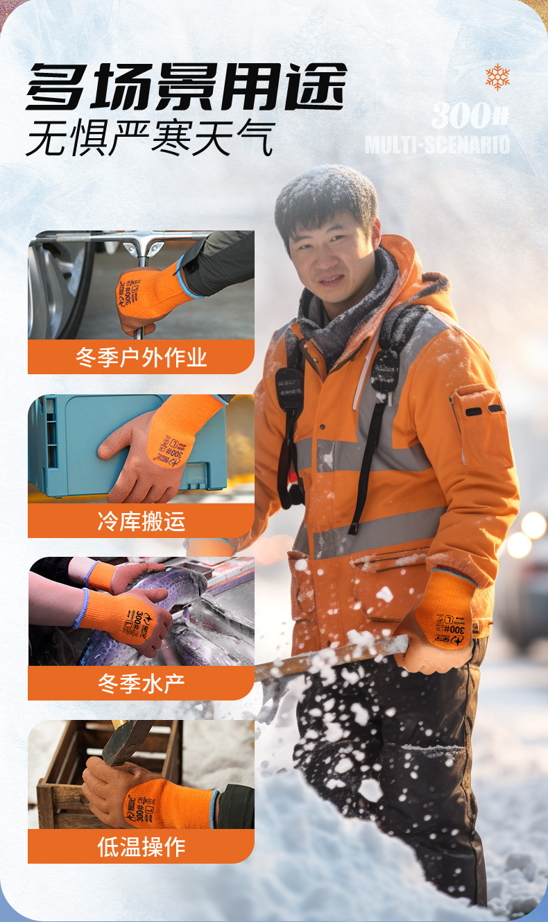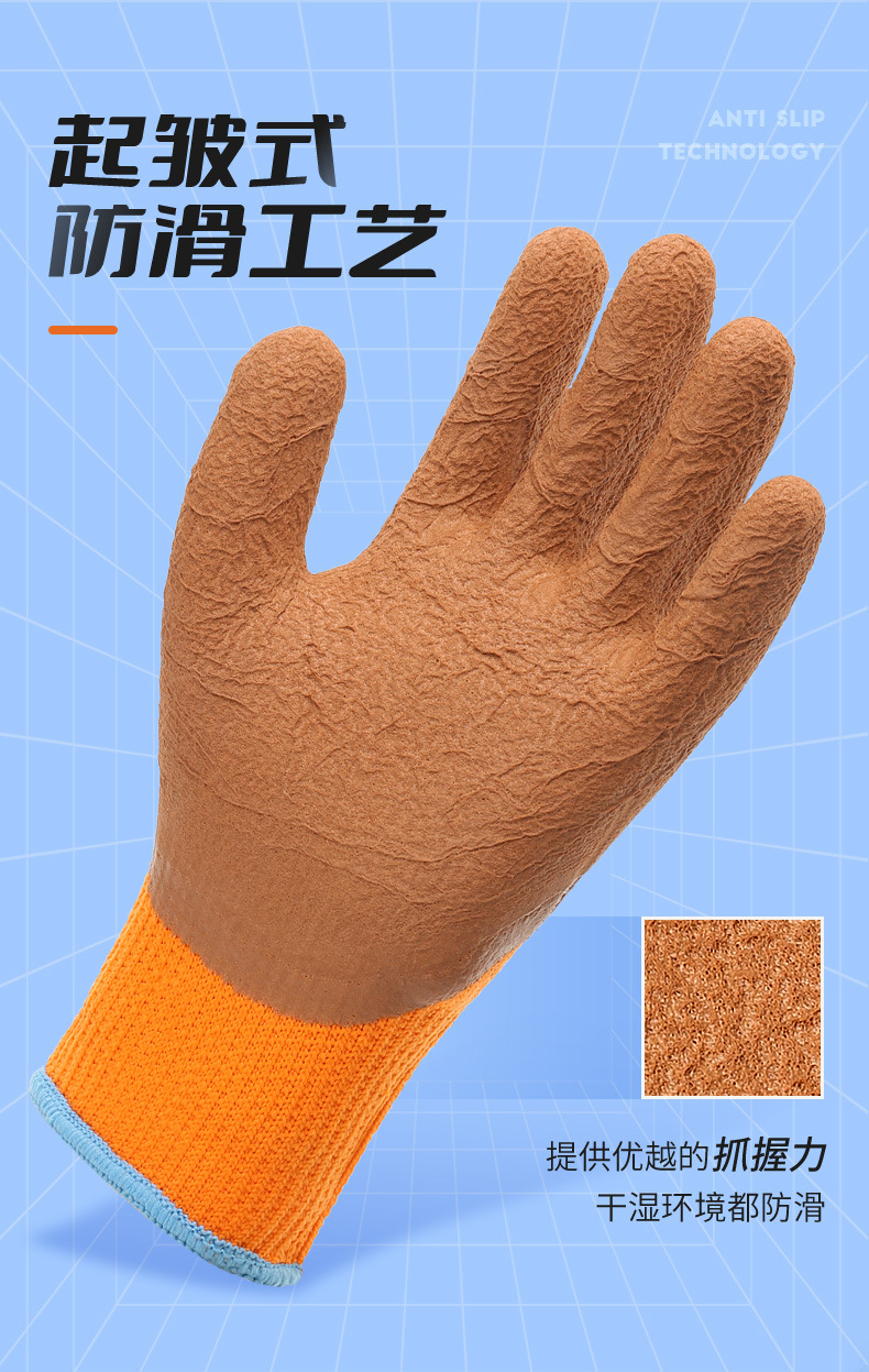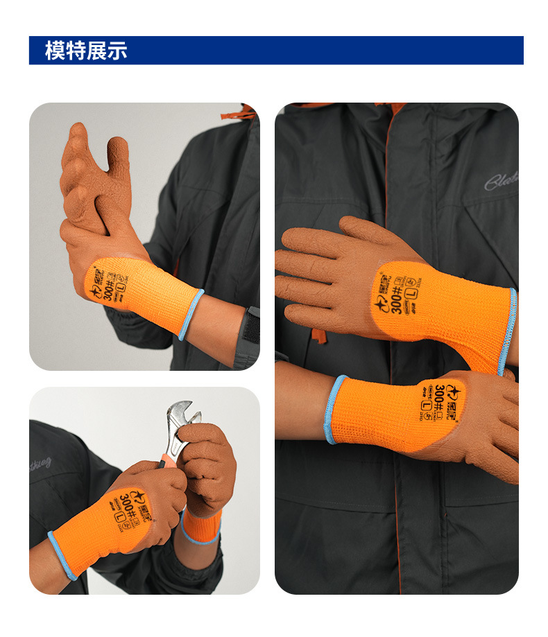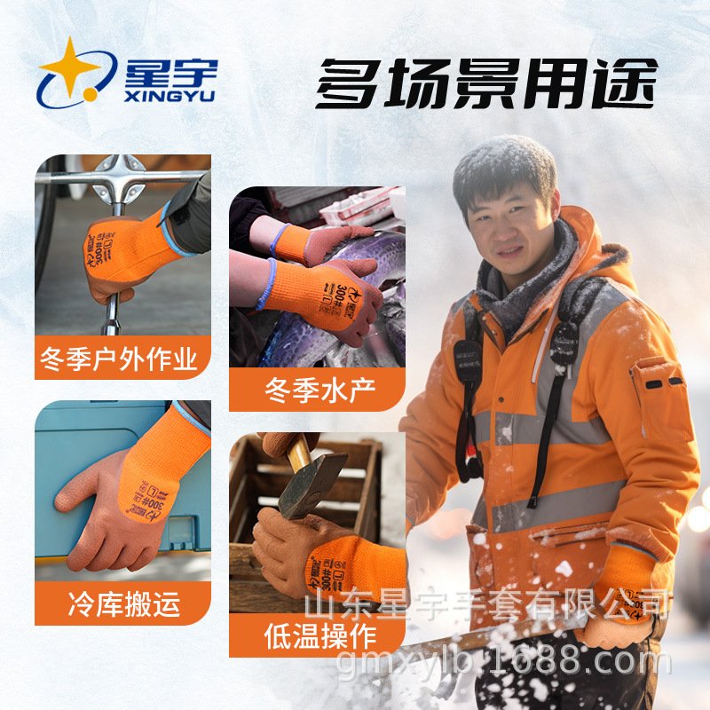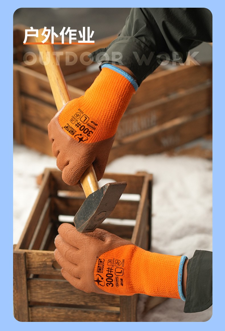 xingyu labor protection gloves striver 300 orange terry coffee foam half-immersed warm-keeping and cold-proof comfortable wear-resistant protective glove