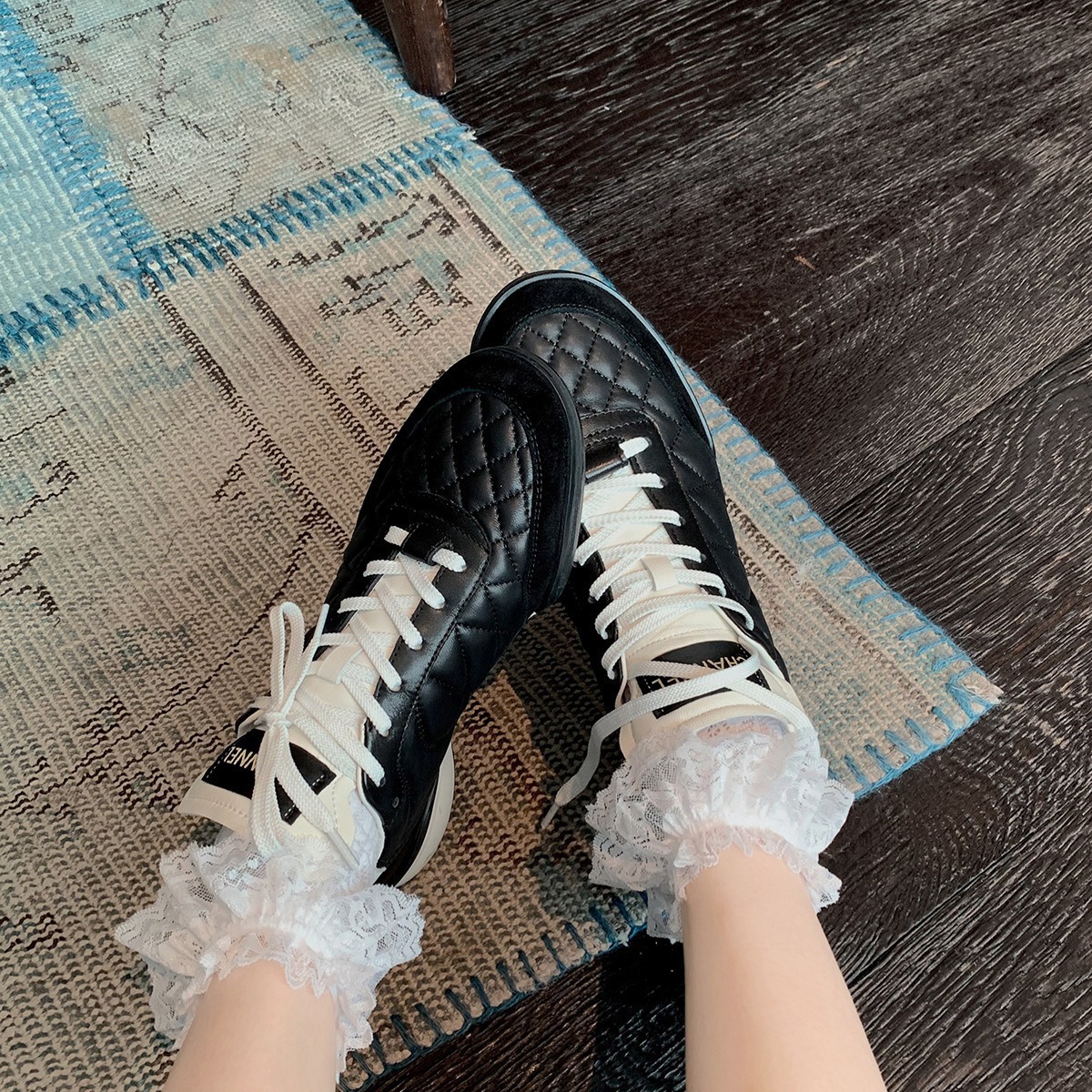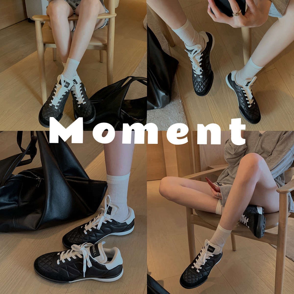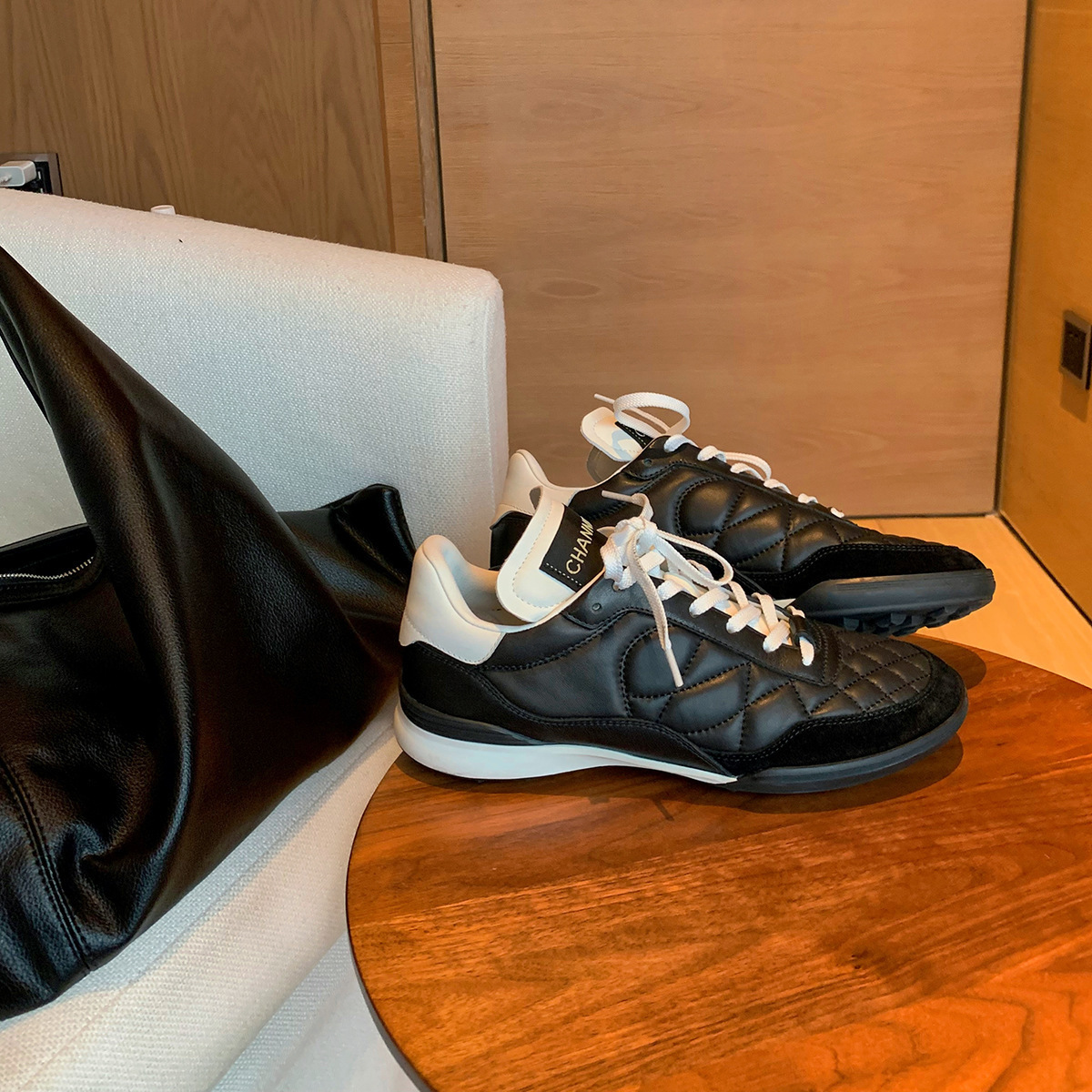 葡萄妈studiolee~时尚气质菱格小香风胎牛皮系带休闲老爹运动鞋女