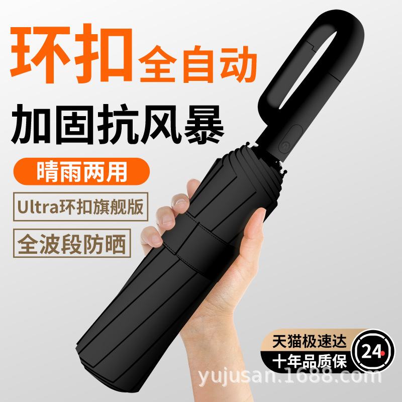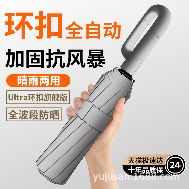 环扣全自动雨伞男女士折叠防晒遮太阳伞防晒晴雨两用定印刷制logo